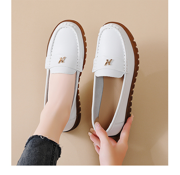 2024 가을과 겨울 새로운 여성 싱글 신발 화이트 간호사 신발 캐주얼 여성 신발 라운드 발가락 플랫 비 슬립 빈 신발 어머니 신발스토어 가기