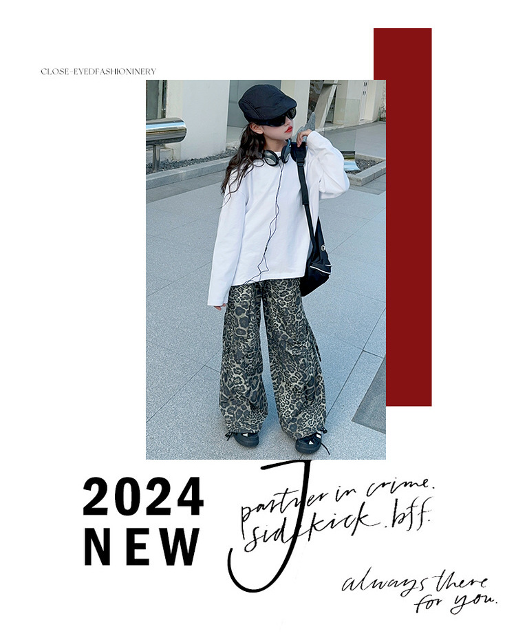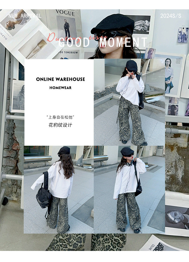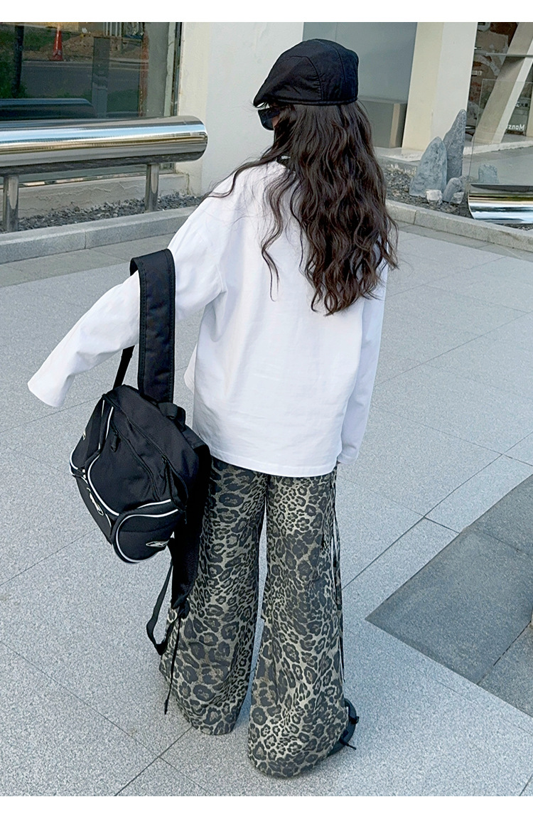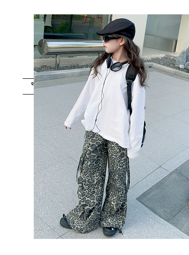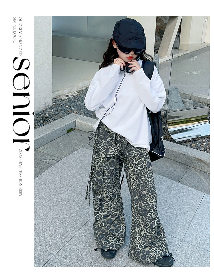 레오파드 무늬 소녀의화물 바지 가을 새로운 어린이 바지 2024 봄과 가을 큰 어린이 패션 스트레이트 캐주얼 바지