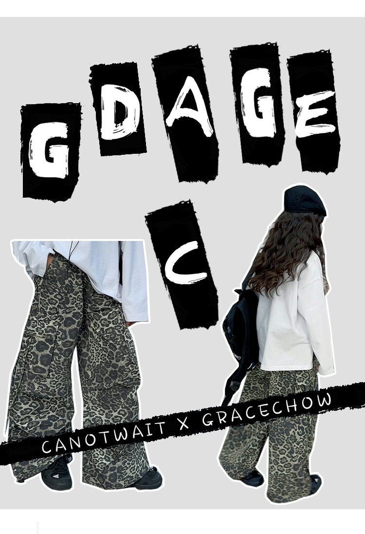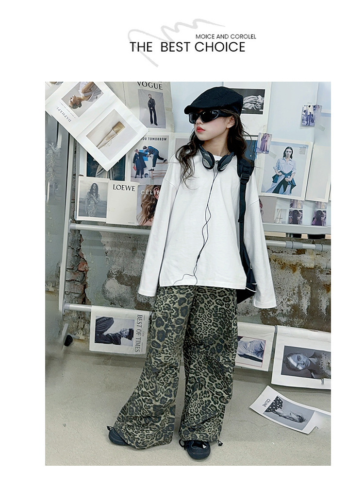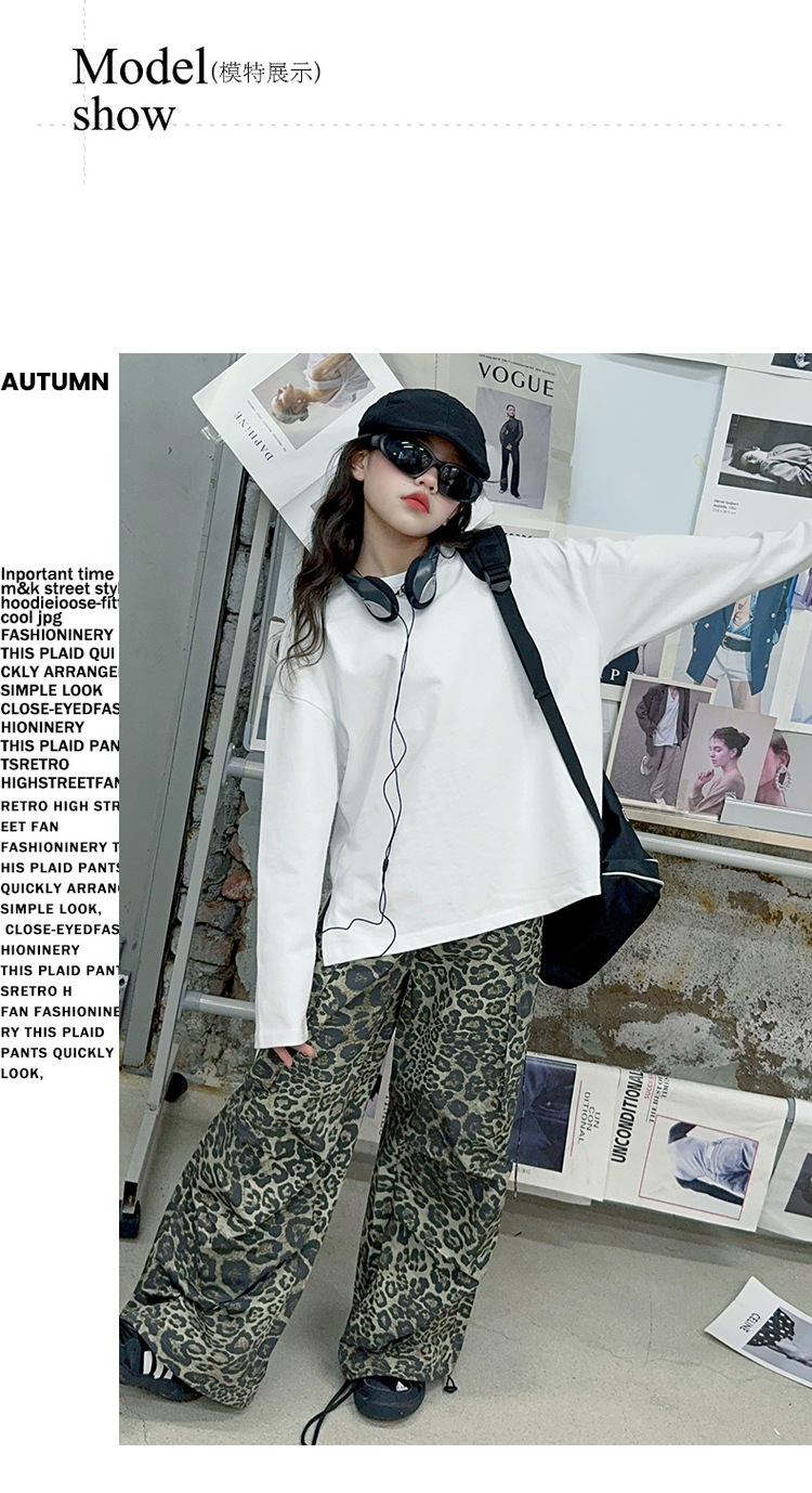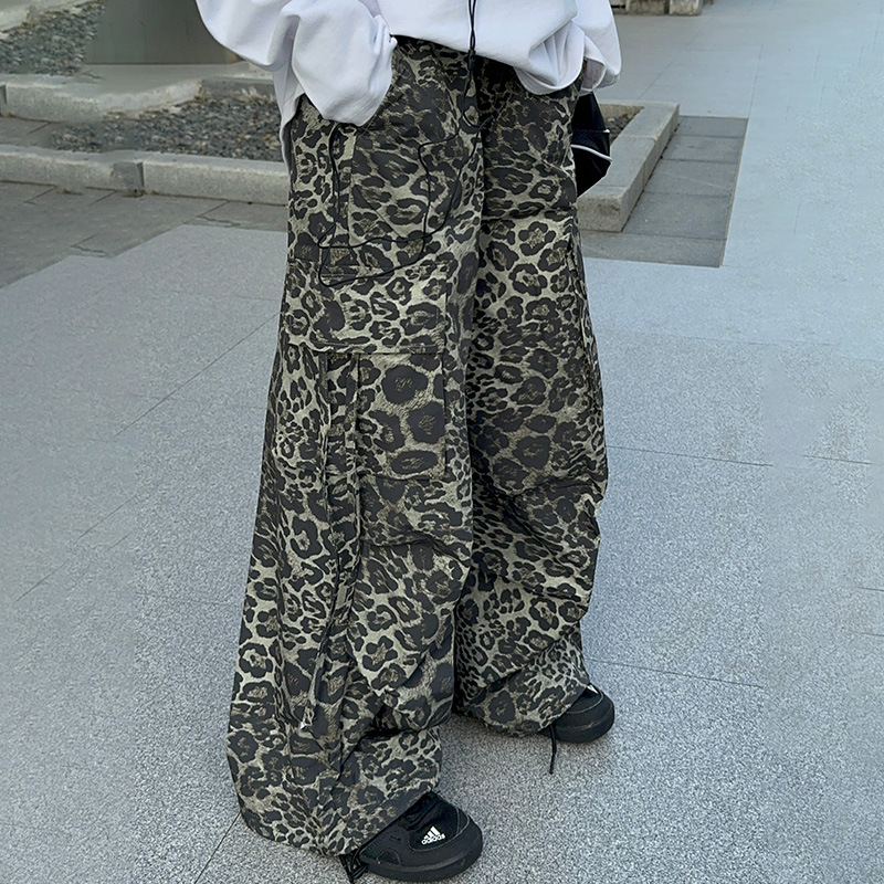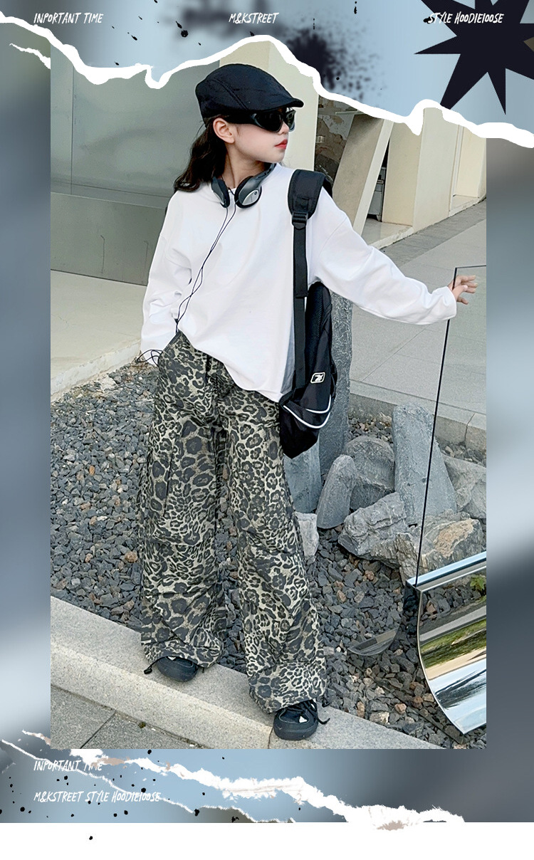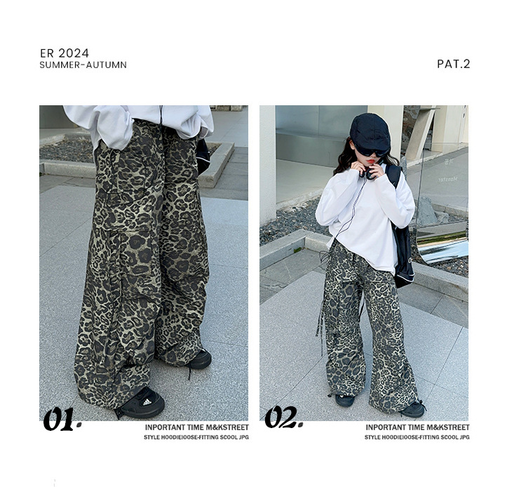 레오파드 무늬 소녀의화물 바지 가을 새로운 어린이 바지 2024 봄과 가을 큰 어린이 패션 스트레이트 캐주얼 바지스토어 가기