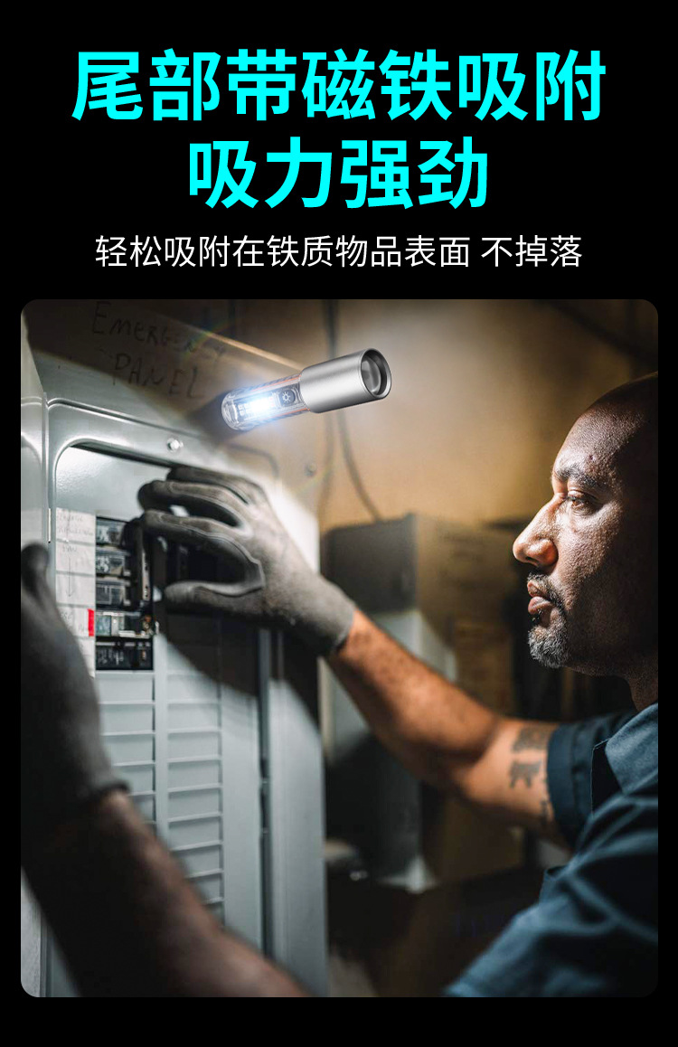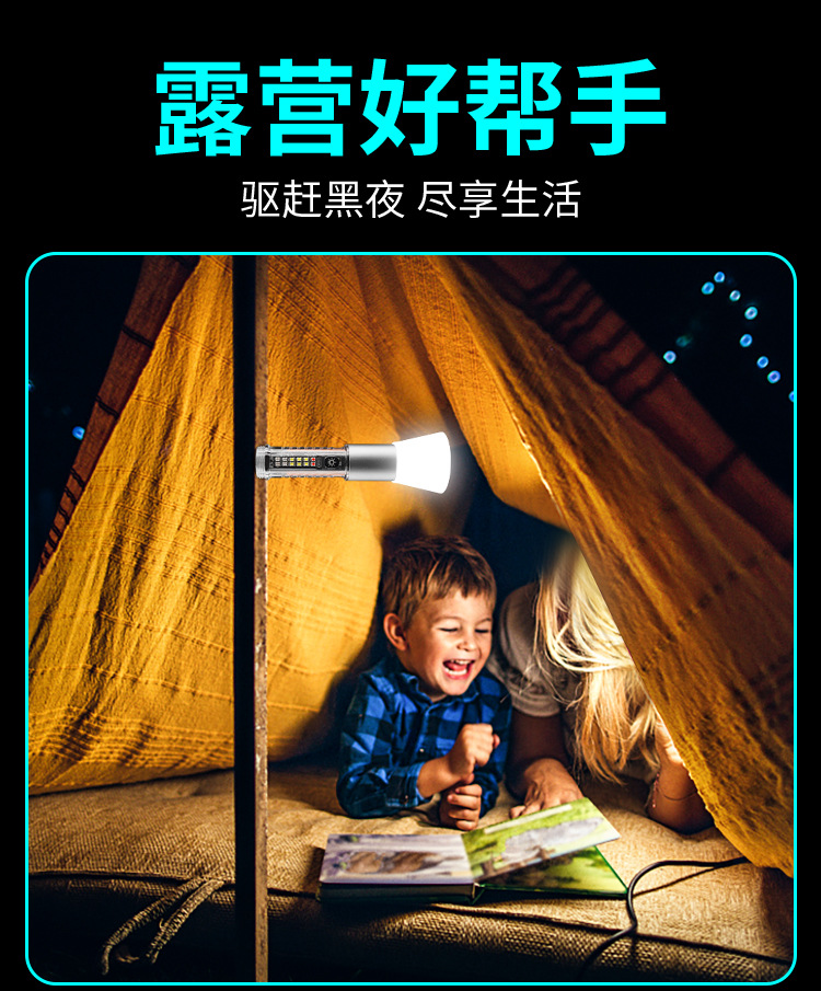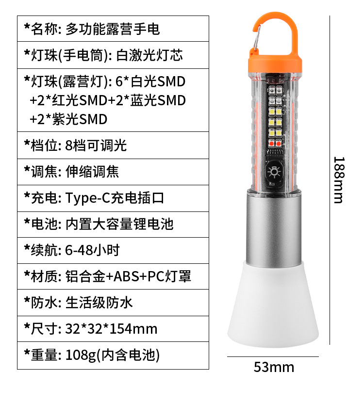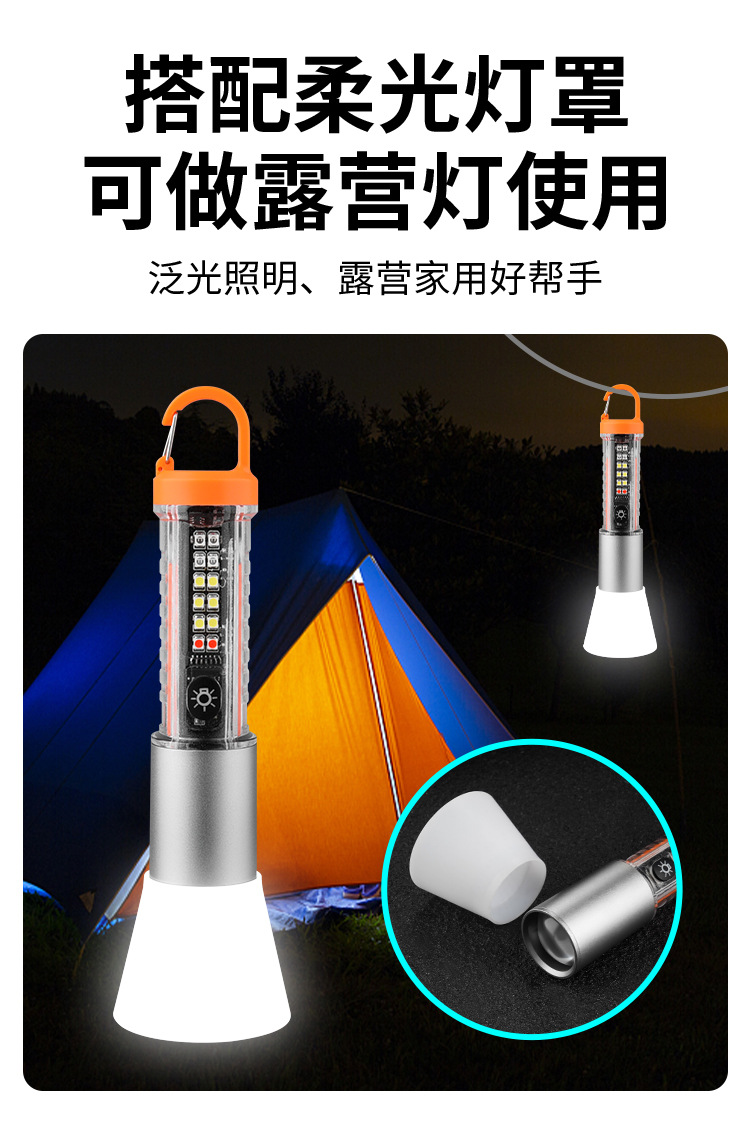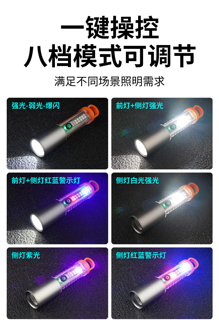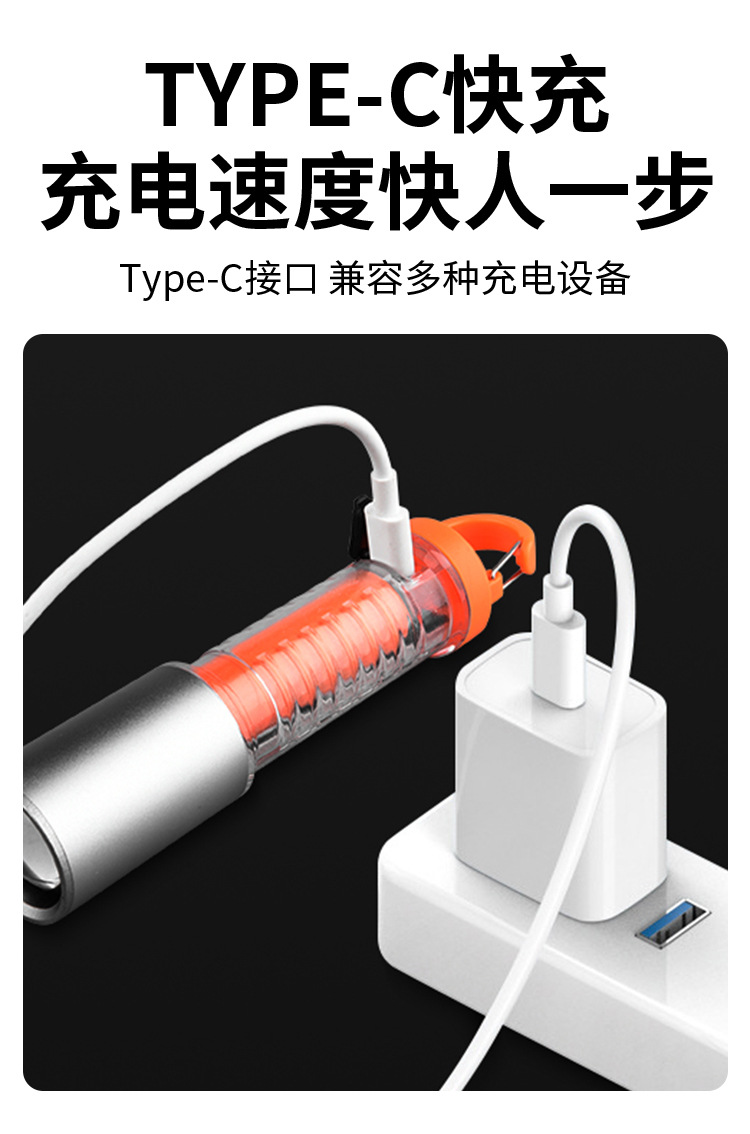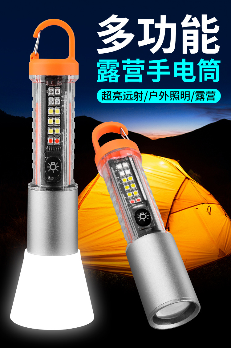 국경 간 새로운 강력한 조명 다기능 망원경 줌 Type-c 충전 빨간색과 흰색 보라색 빛 자기 등산 버클 손전등스토어 가기