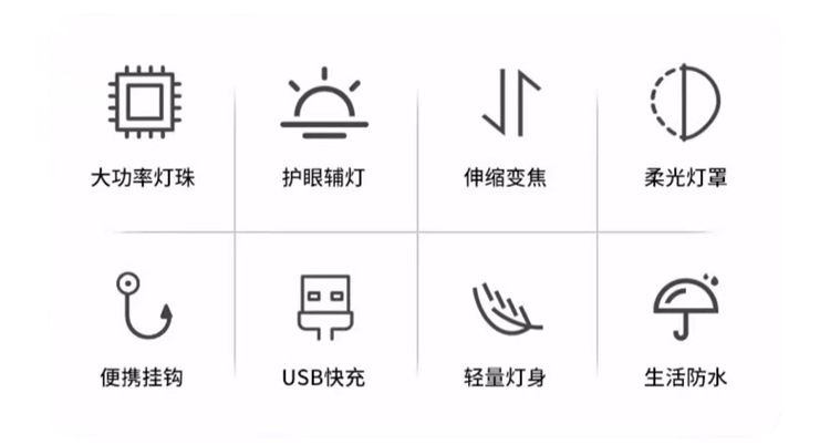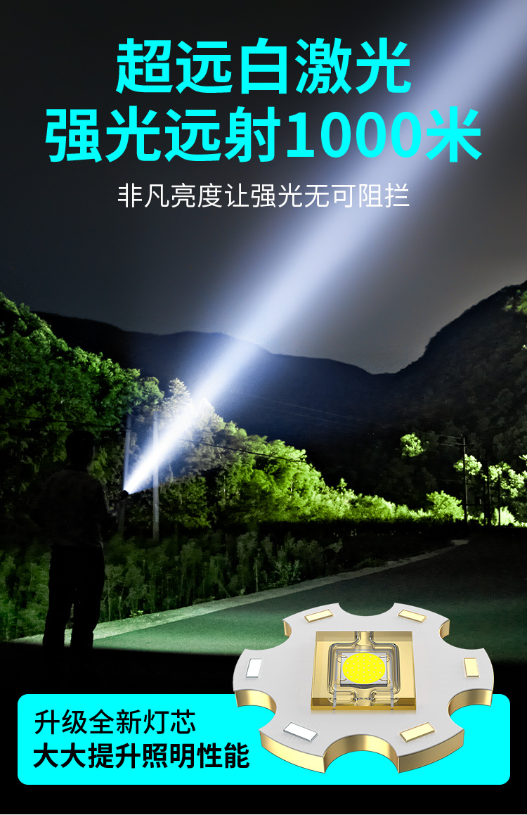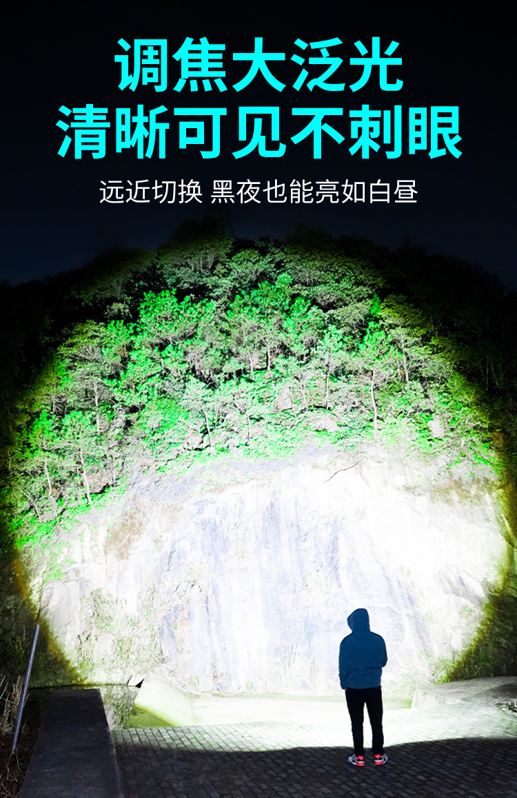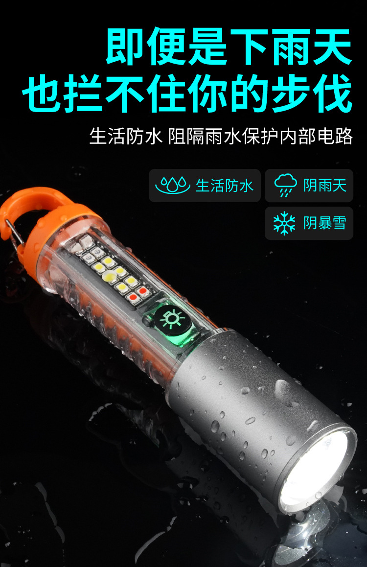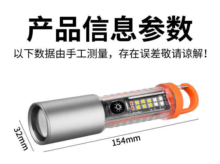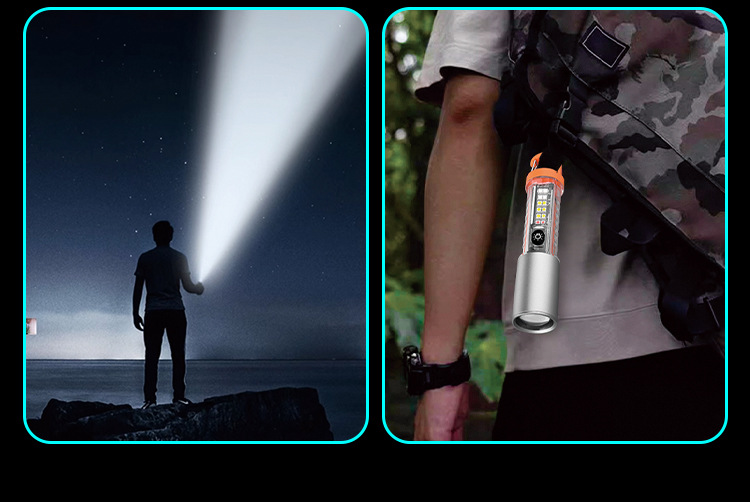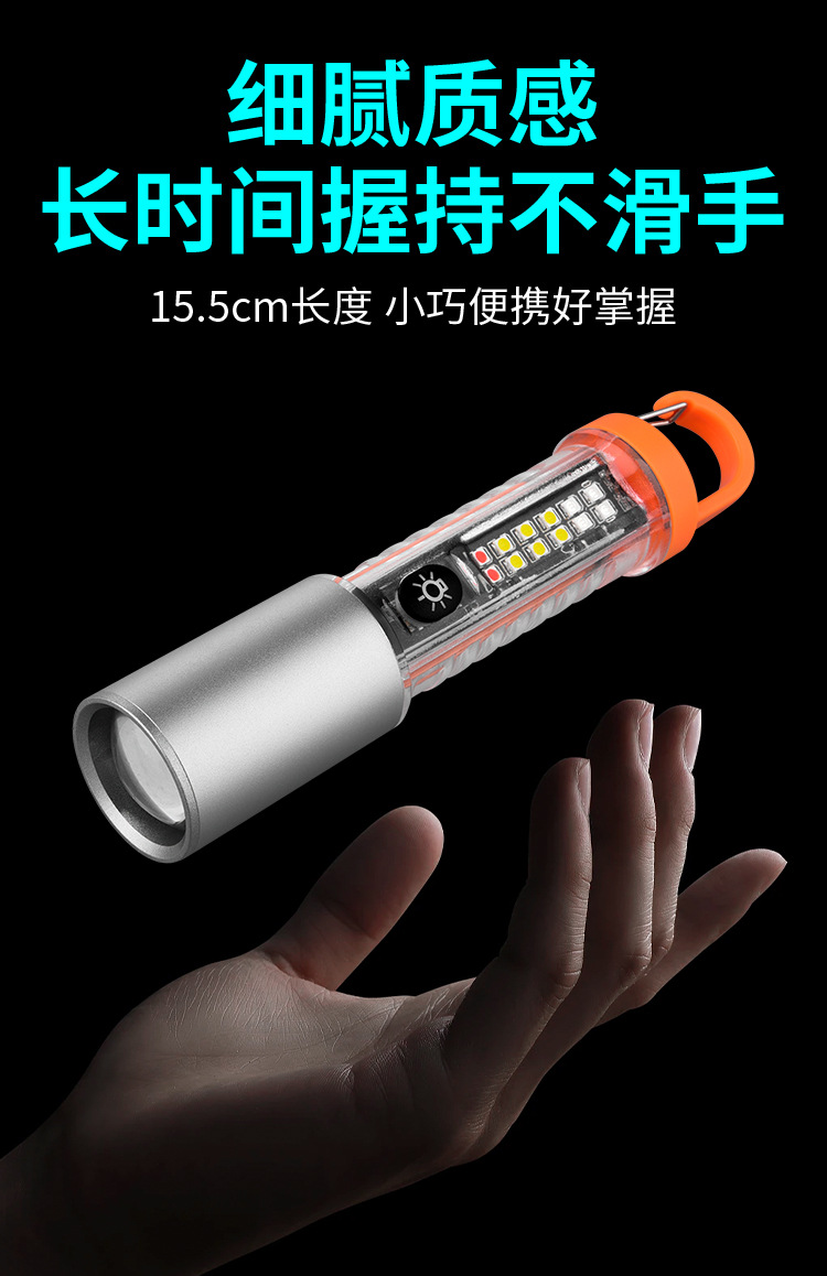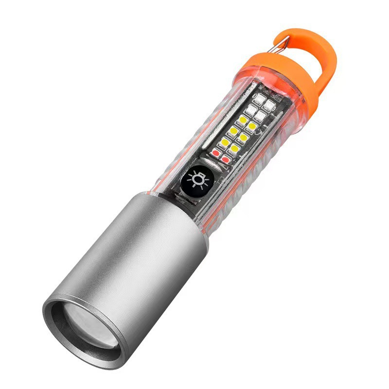 국경 간 새로운 강력한 조명 다기능 망원경 줌 Type-c 충전 빨간색과 흰색 보라색 빛 자기 등산 버클 손전등