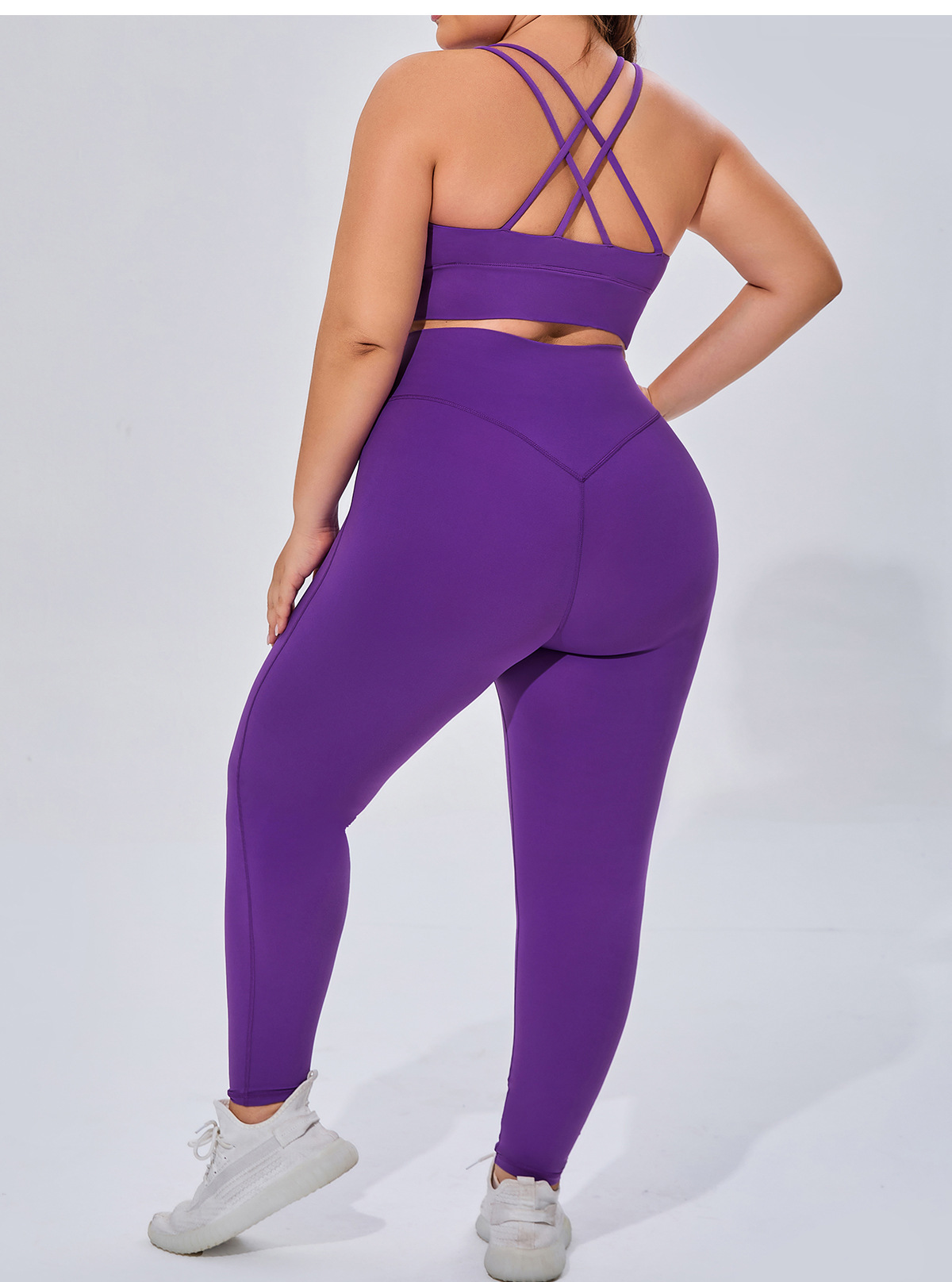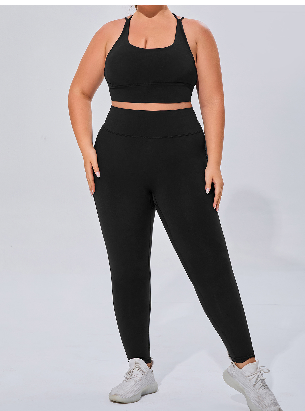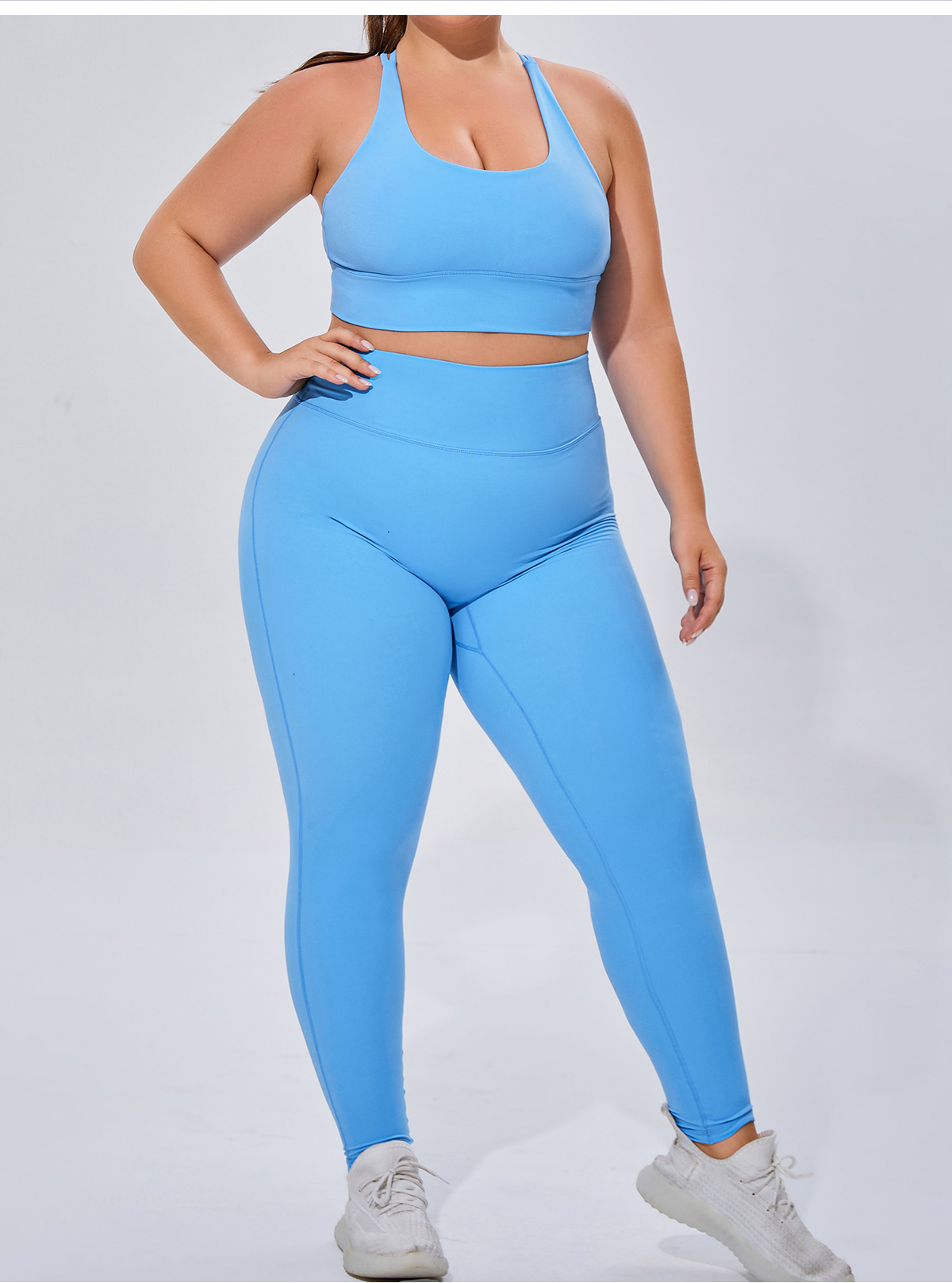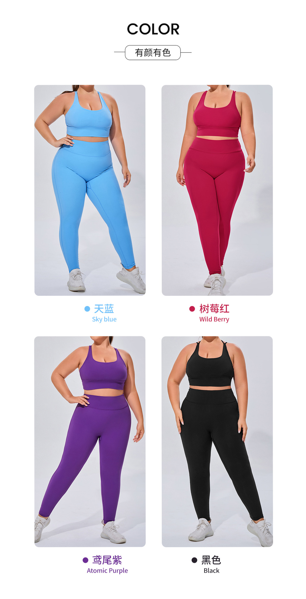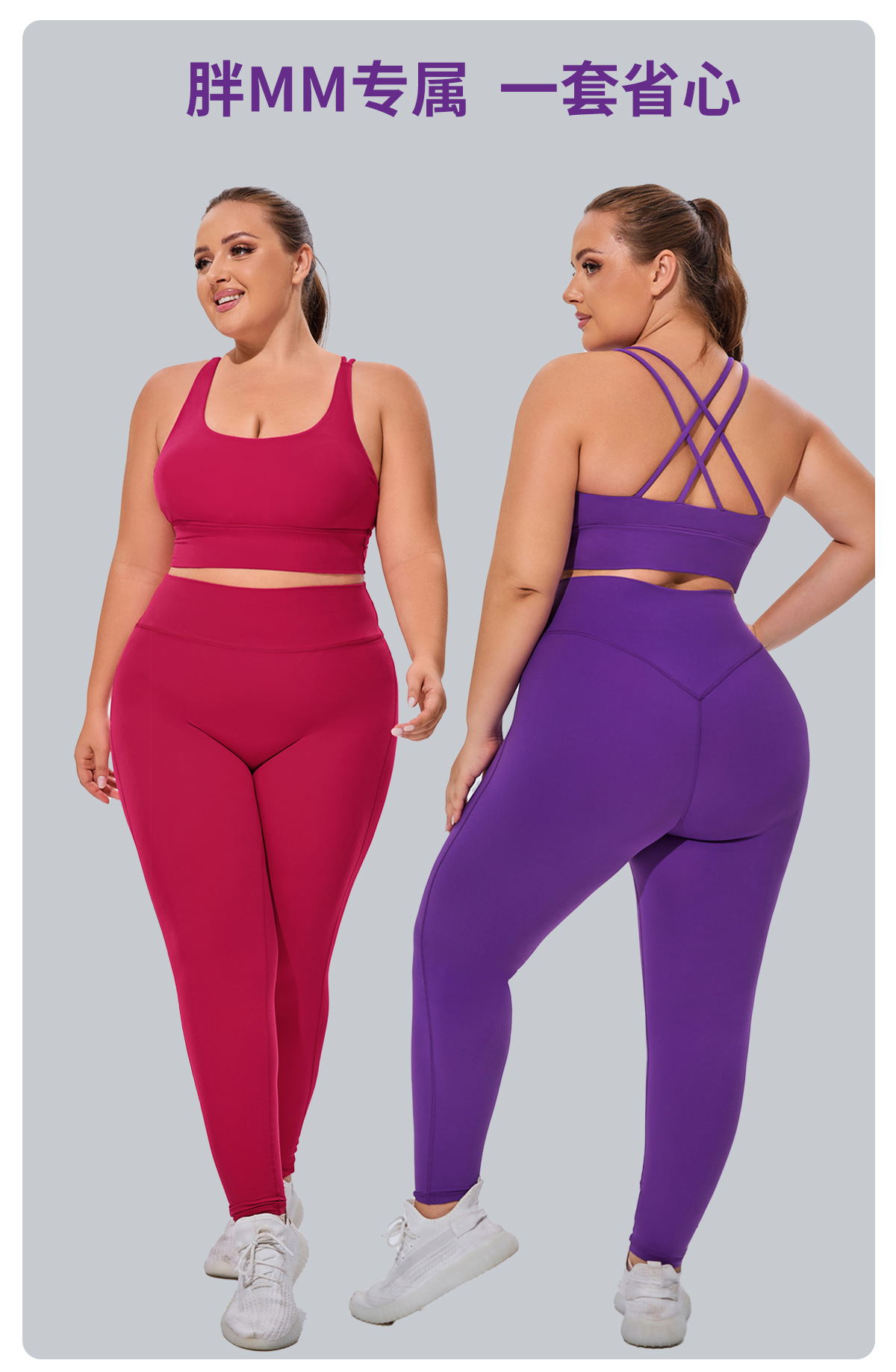 유럽과 미국의 플러스 사이즈 여성 스포츠웨어 세트 벌거 벗은 높은 탄성 통기성 요가 세트 투피스 국경 피트니스 세트 세트