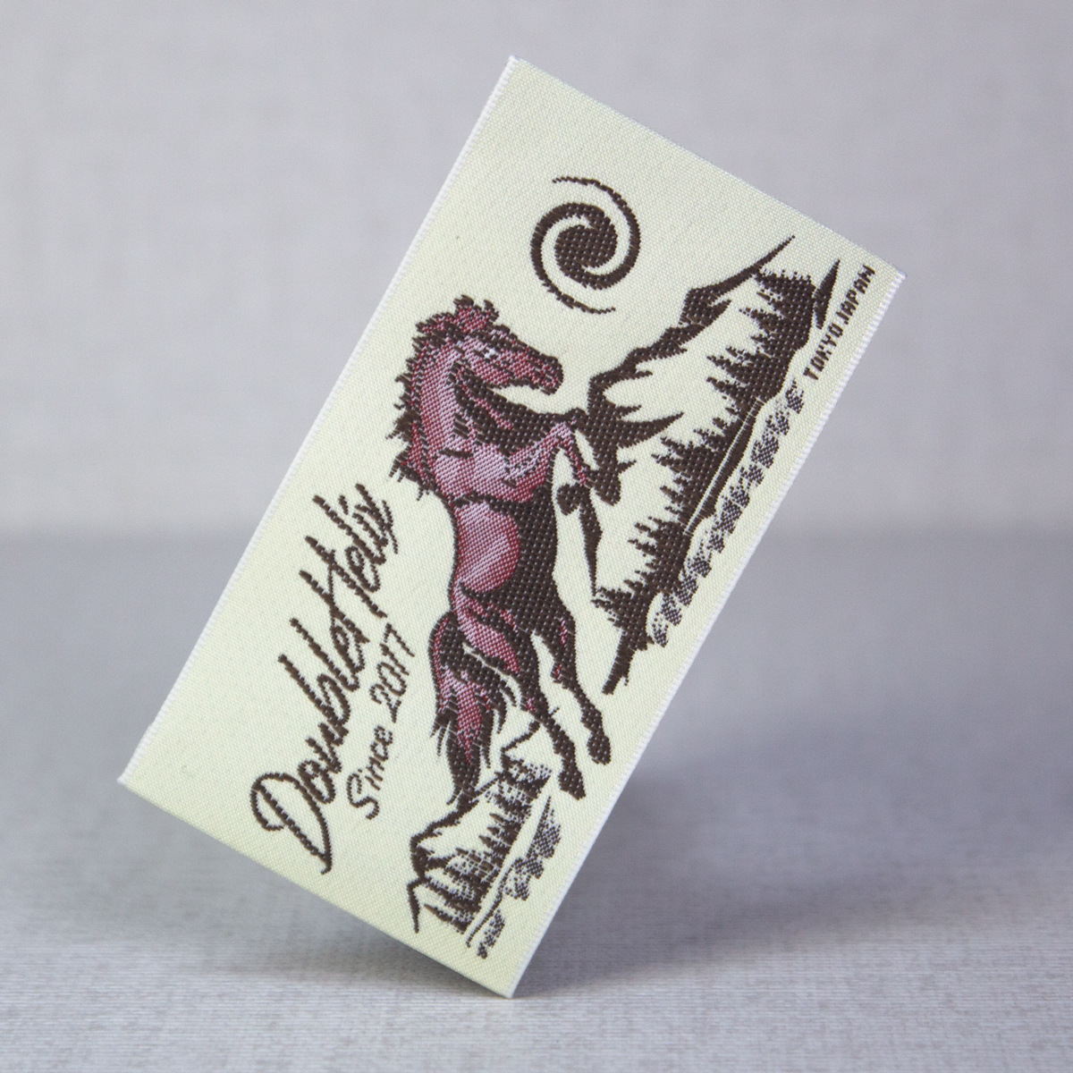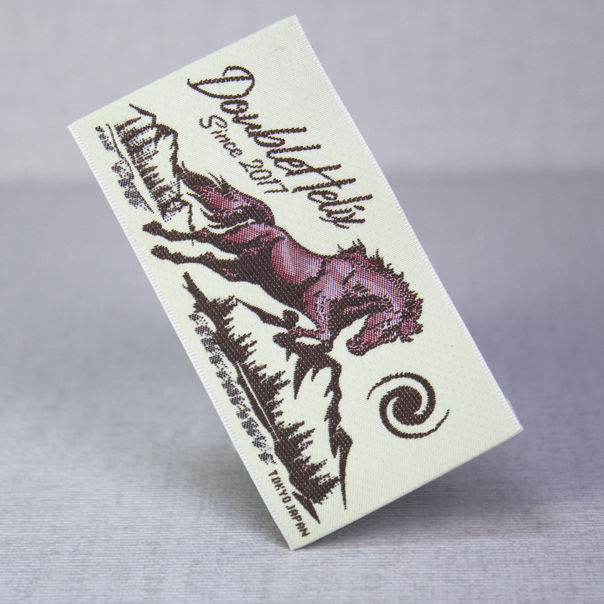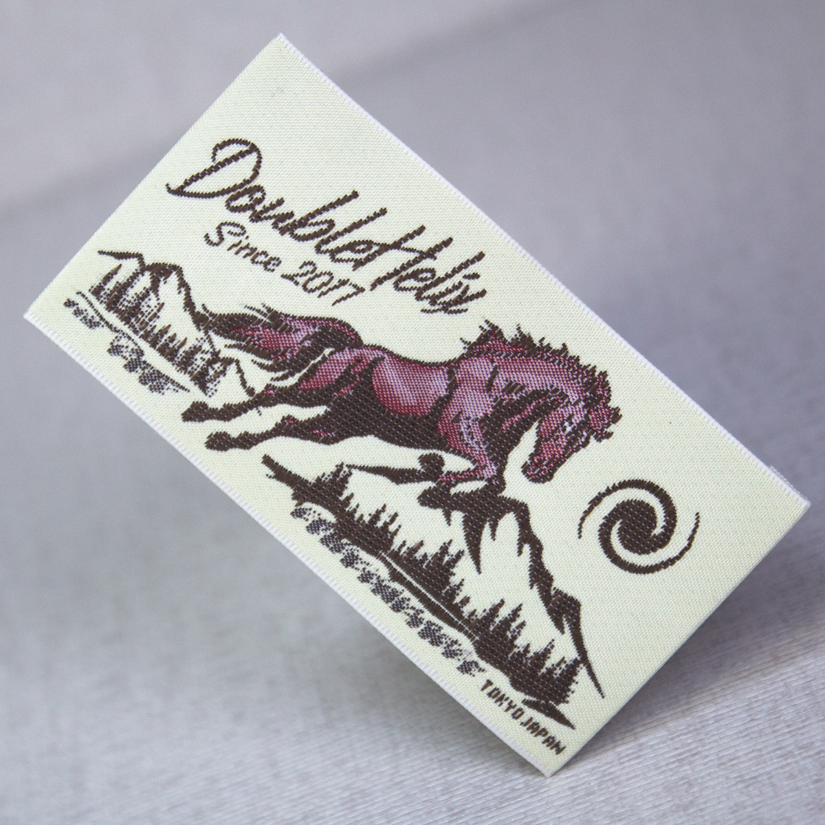 고급 목재 셔틀 직조 마크 맞춤형 재고 직조 마크 맞춤형 의류 액세서리 장식 마크 칼라 마크 사이드 마크