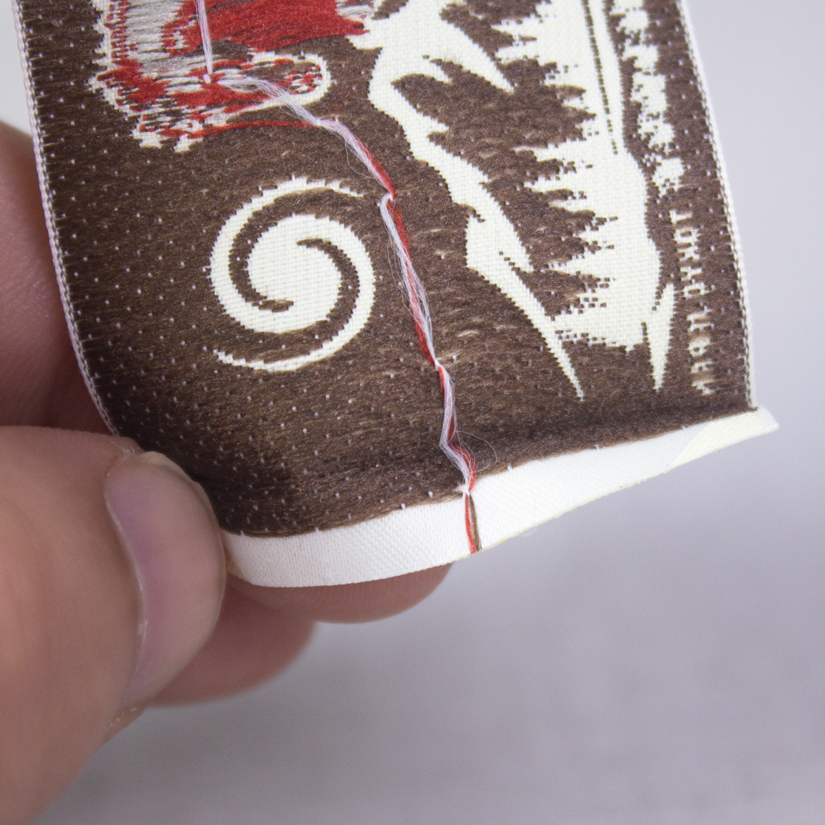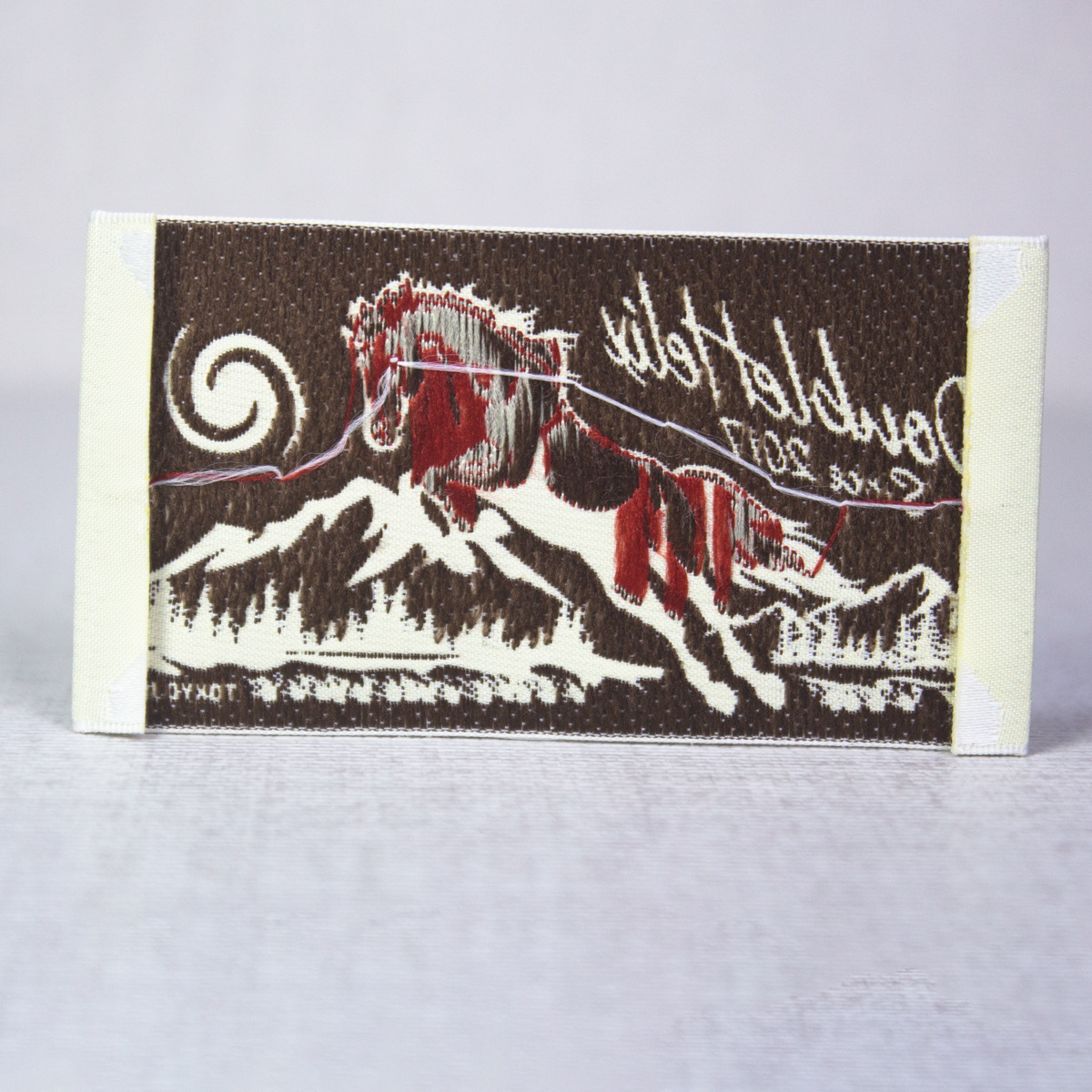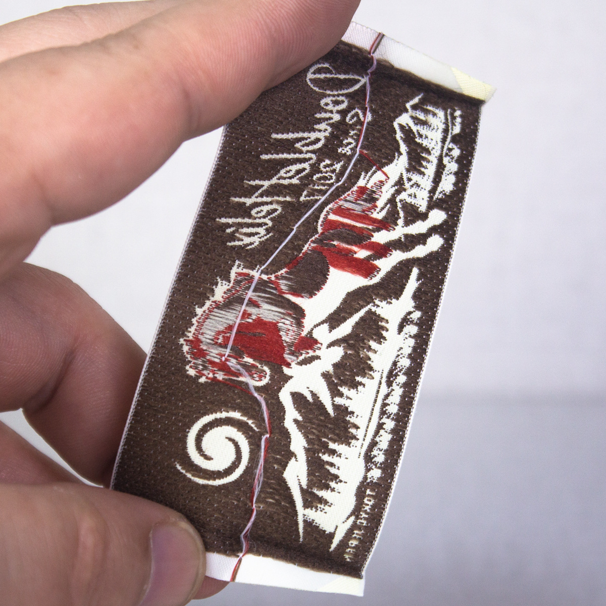 고급 목재 셔틀 직조 마크 맞춤형 재고 직조 마크 맞춤형 의류 액세서리 장식 마크 칼라 마크 사이드 마크