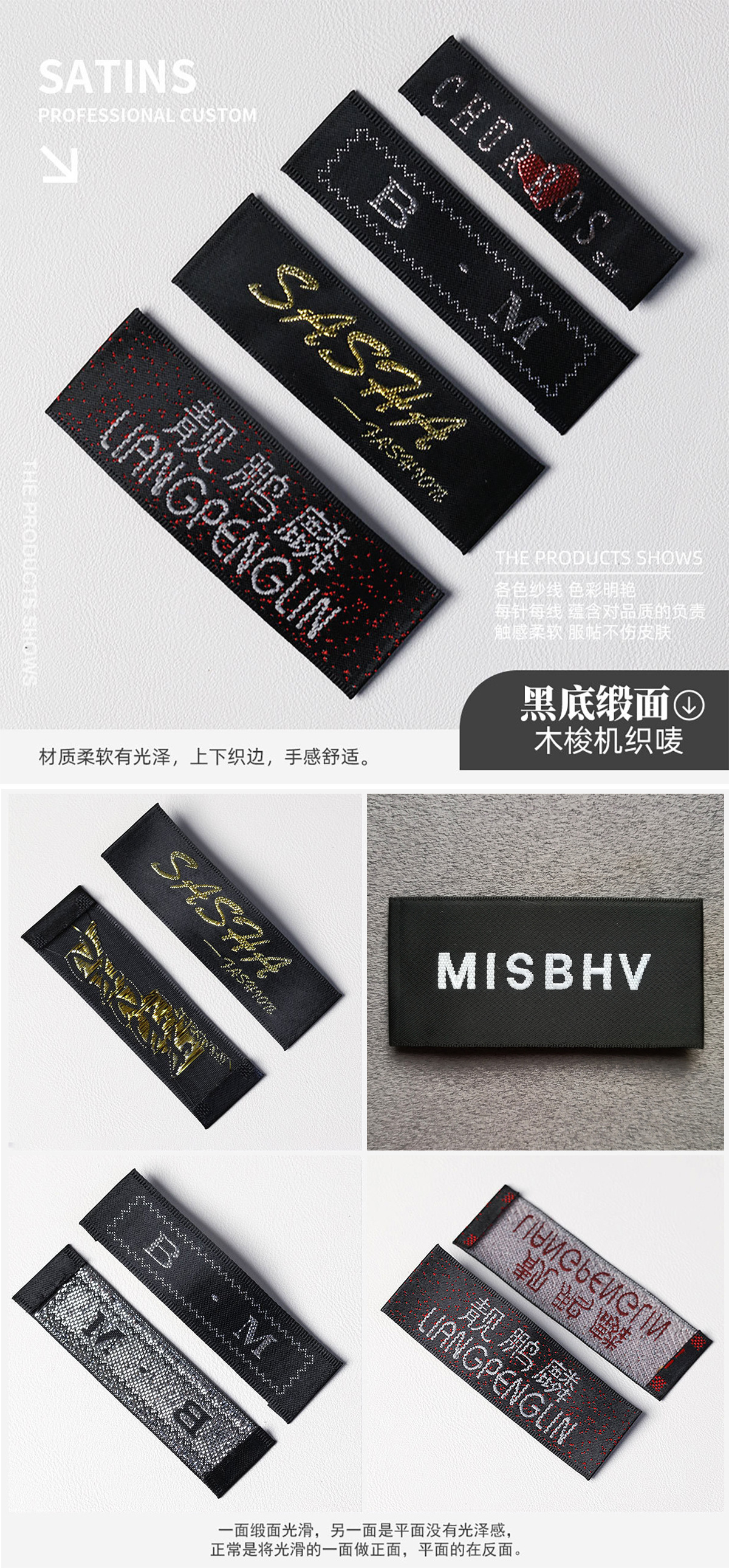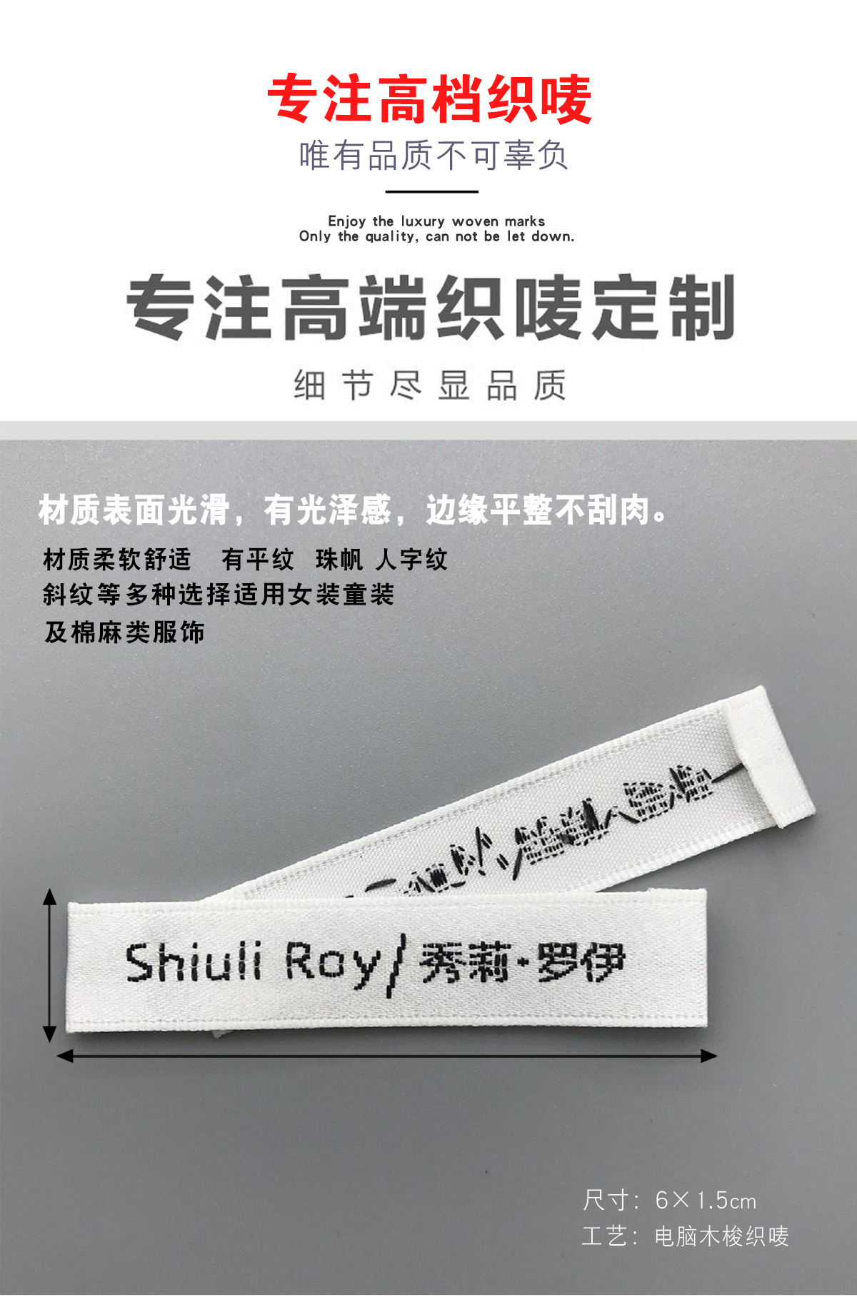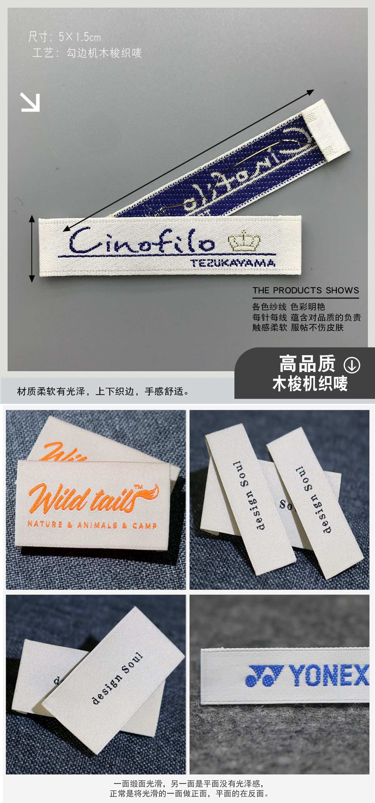 고급 목재 셔틀 직조 마크 맞춤형 재고 직조 마크 맞춤형 의류 액세서리 장식 마크 칼라 마크 사이드 마크스토어 가기