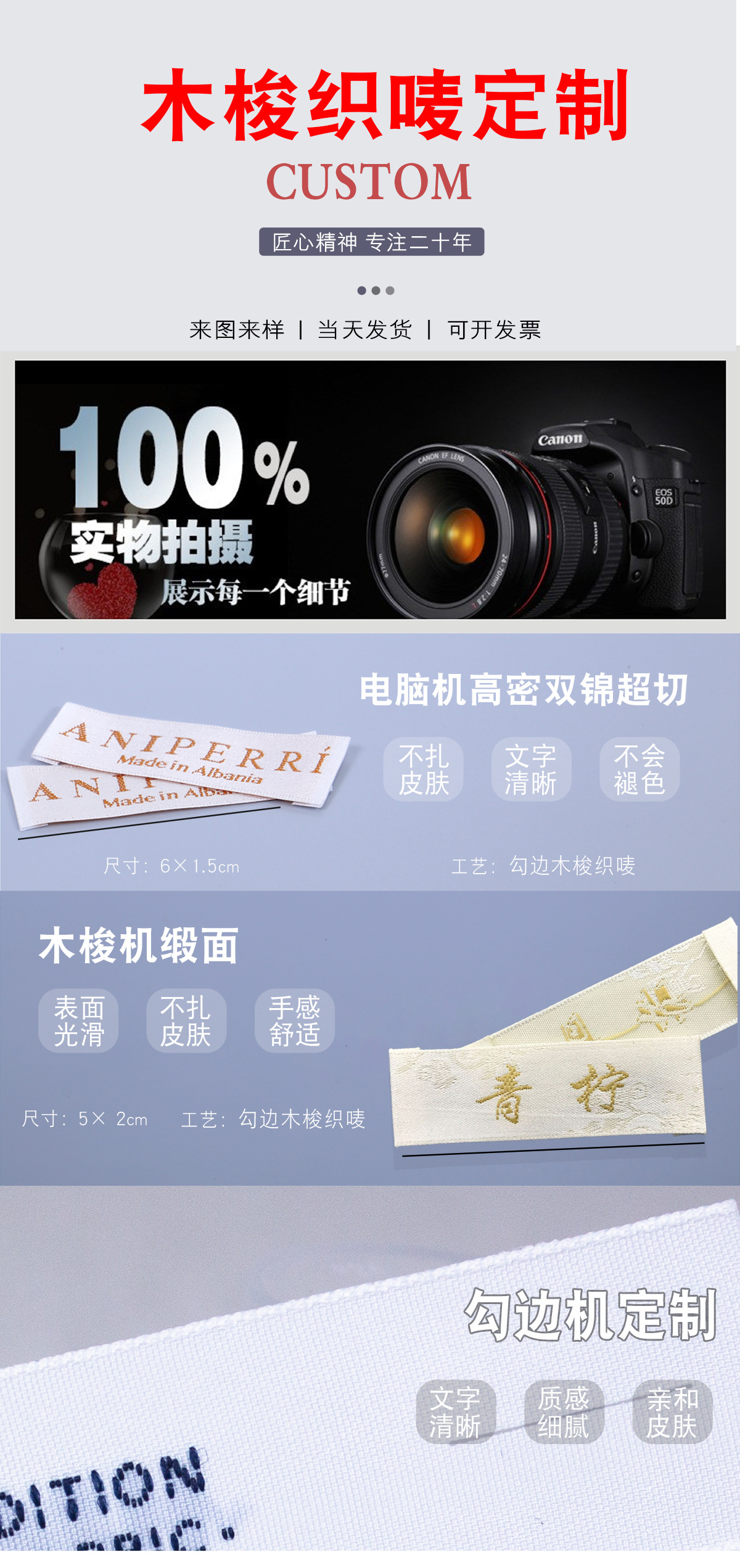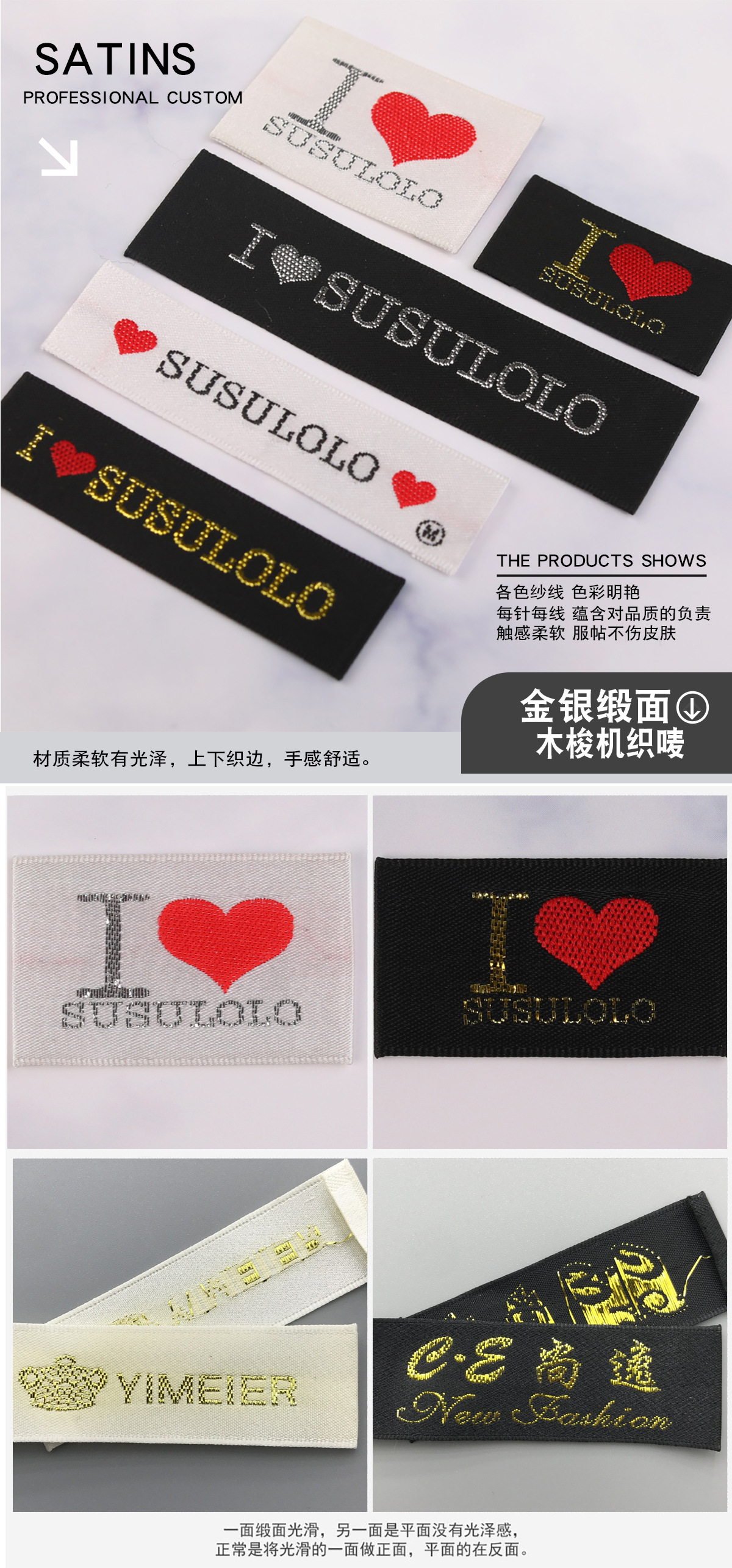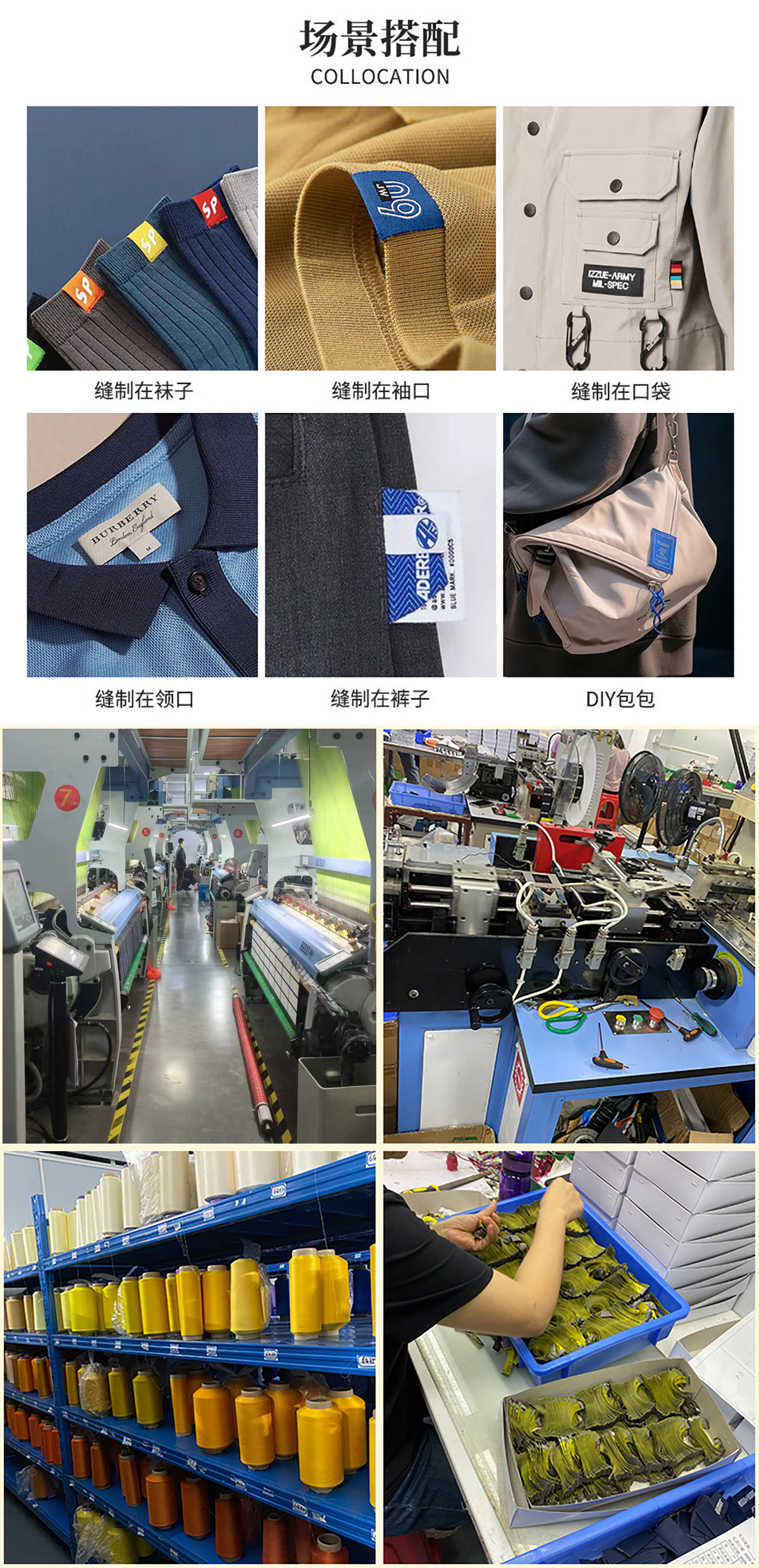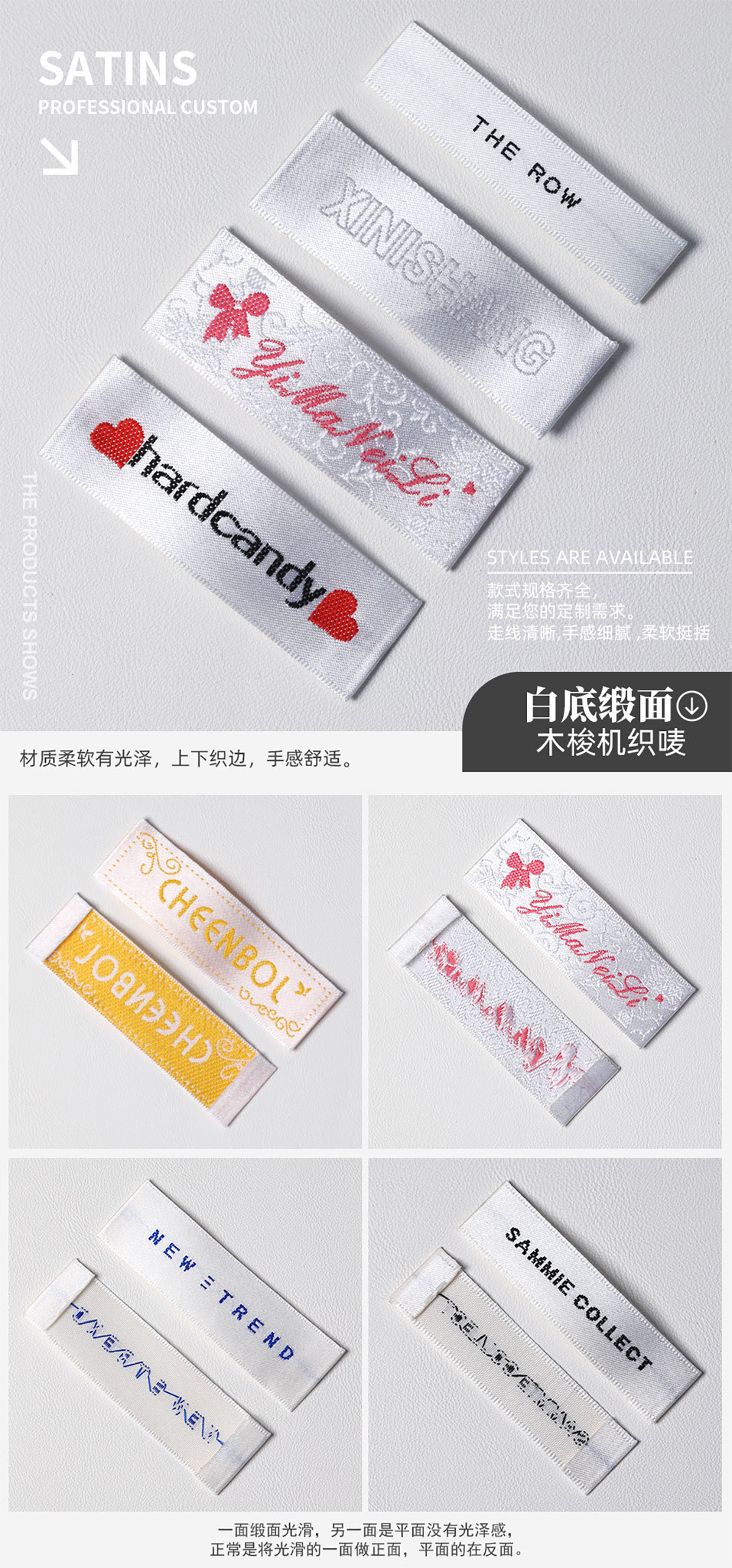 고급 목재 셔틀 직조 마크 맞춤형 재고 직조 마크 맞춤형 의류 액세서리 장식 마크 칼라 마크 사이드 마크스토어 가기