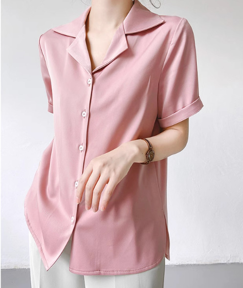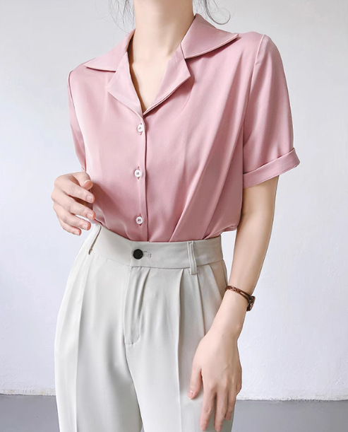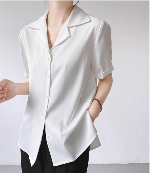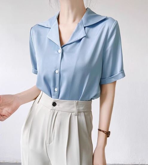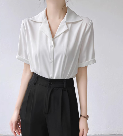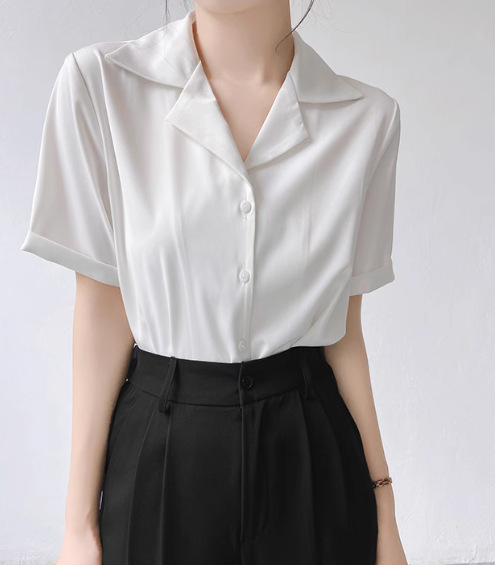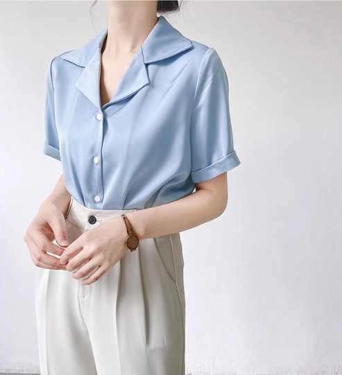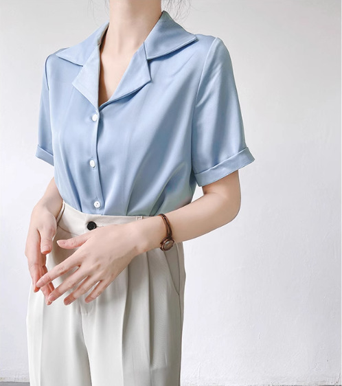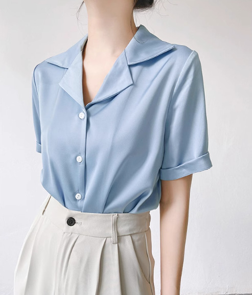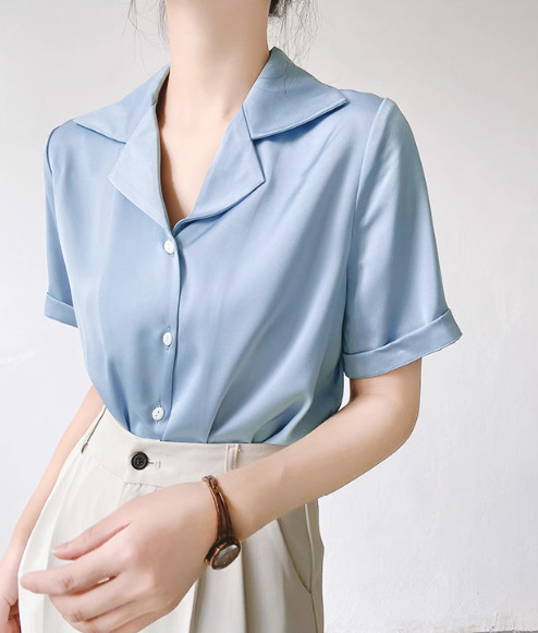 프랑스 옷깃 셔츠 여성의 2024 여름 얇은 반팔 셔츠 디자인 틈새 전문 탑스토어 가기