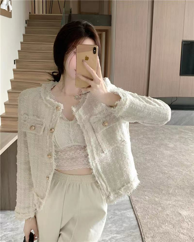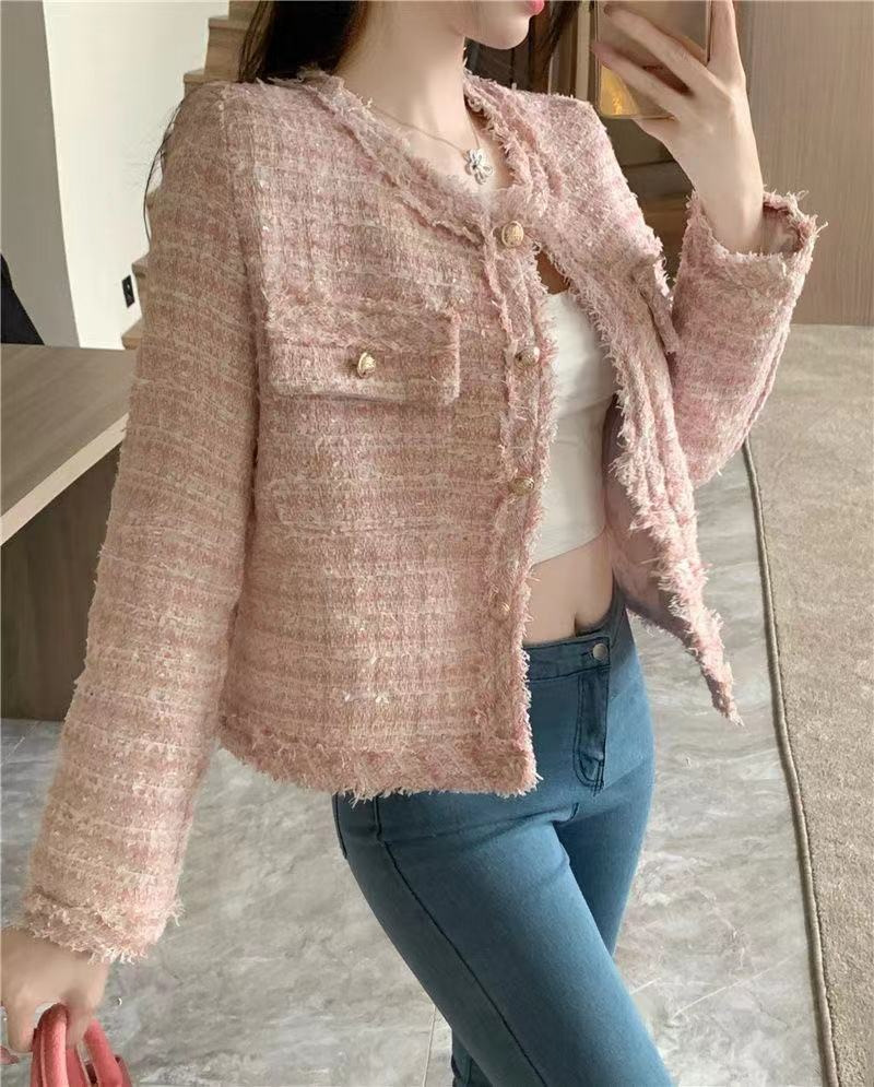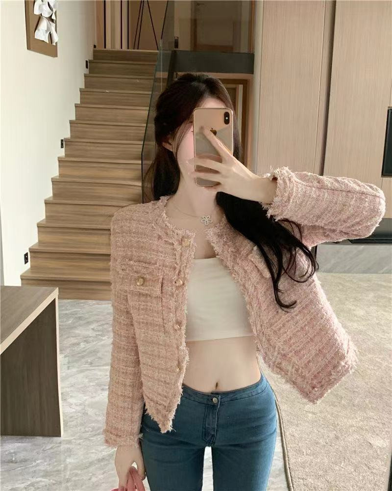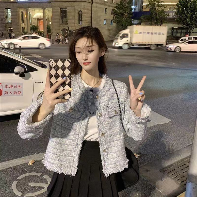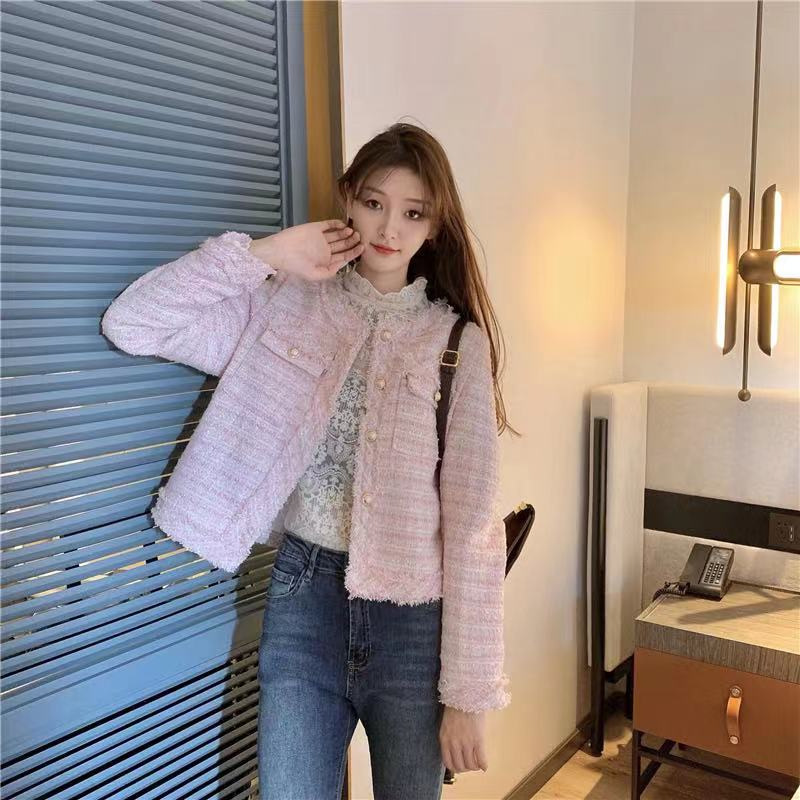 사교계 샤넬 스타일 트위드 쇼트 코트 여성의 봄과 가을 한국 스타일 프린지 싱글 브레스트 재킷 유행 니치 탑스토어 가기