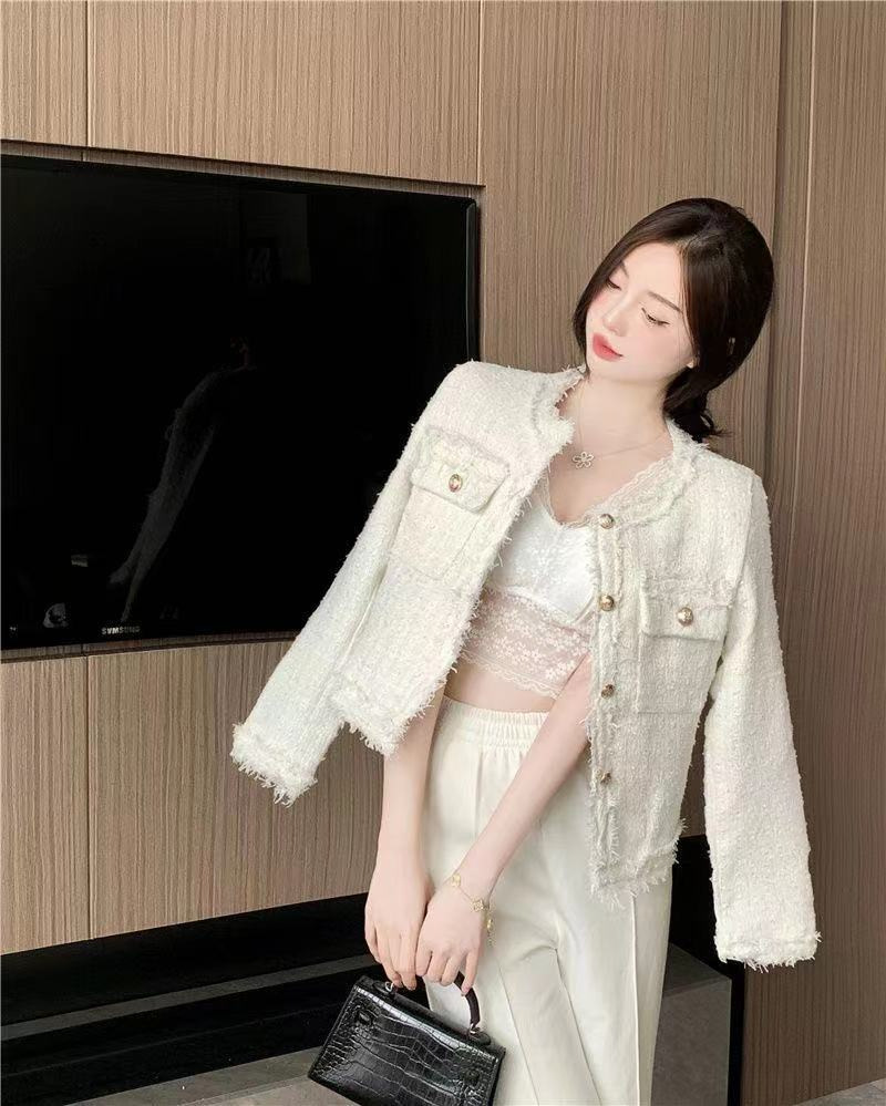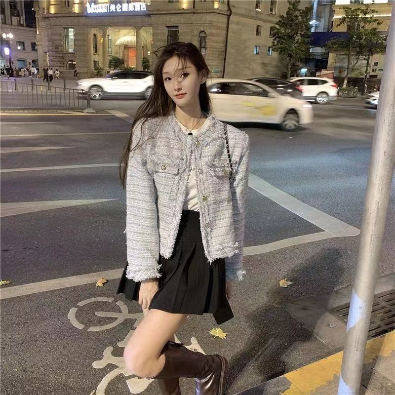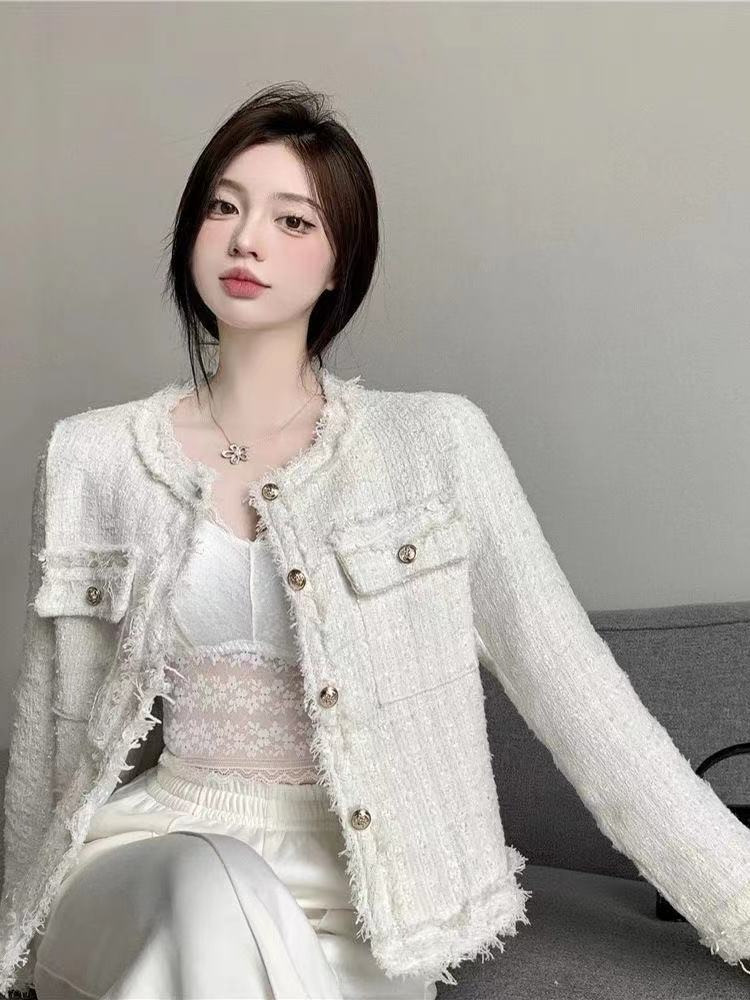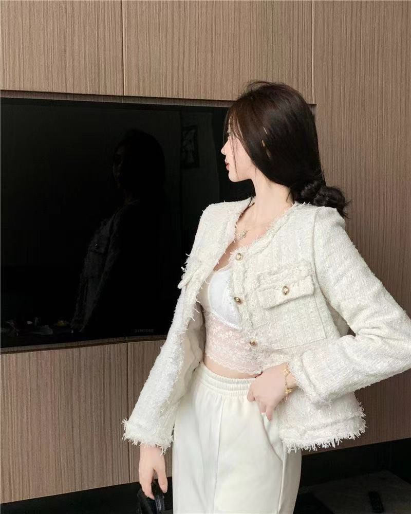 사교계 샤넬 스타일 트위드 쇼트 코트 여성의 봄과 가을 한국 스타일 프린지 싱글 브레스트 재킷 유행 니치 탑스토어 가기