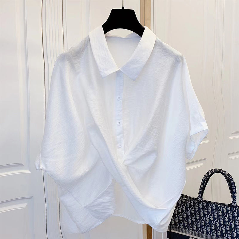 반팔 셔츠 여성의 여름 세련된 작은 셔츠 mm 디자인 틈새 프랑스 얇은 최고 셔츠