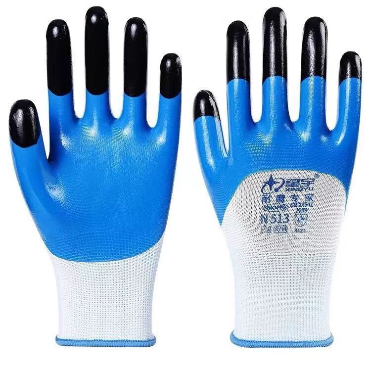 Xingyu N513 내마모성 강화 손가락 노동 보호 장갑 내유성 및 알칼리 저항성 부드러운 통기성 처리 공사 손스토어 가기