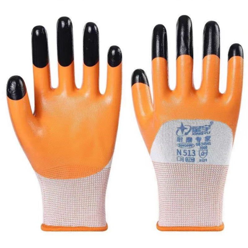 Xingyu N513 내마모성 강화 손가락 노동 보호 장갑 내유성 및 알칼리 저항성 부드러운 통기성 처리 공사 손