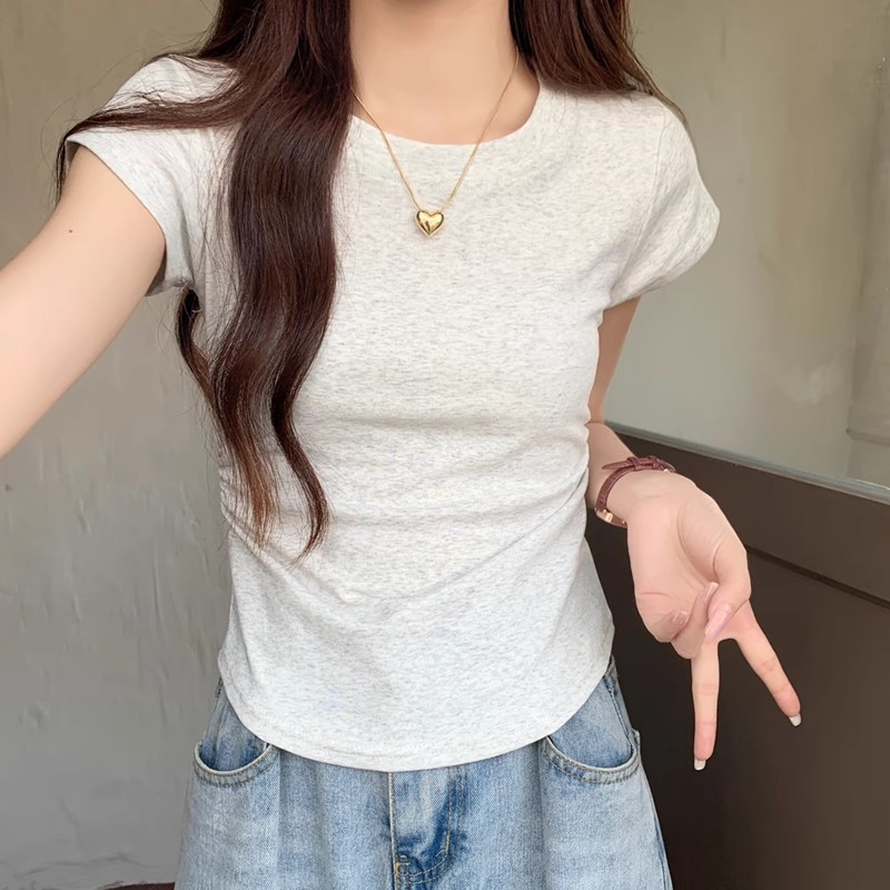 여름 라운드 넥 솔리드 컬러 코튼 40 슬림 짧은 소매 티셔츠 여성용 슬림 시크한 탑베이스 셔츠스토어 가기