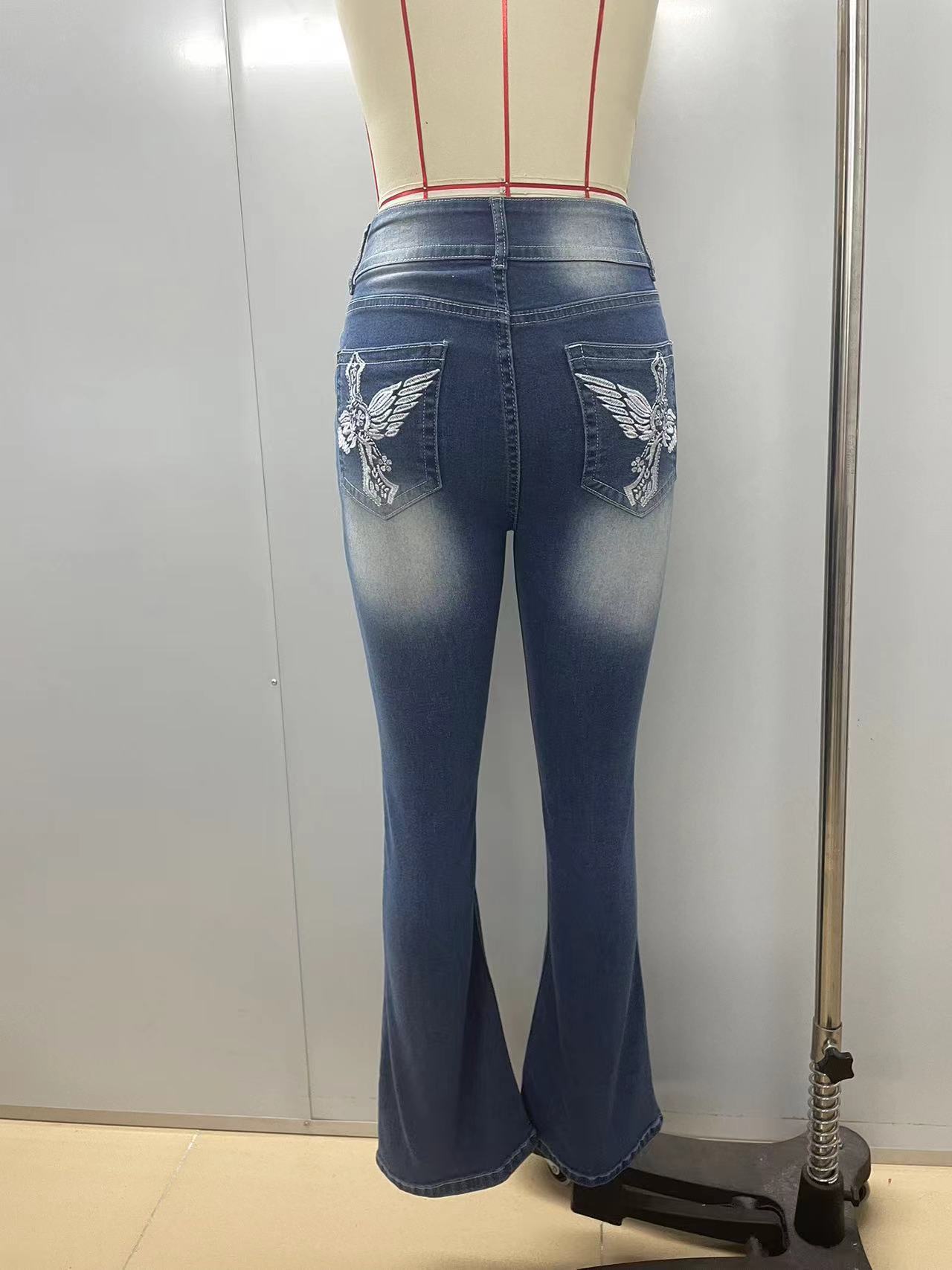 Amazon 독립 스테이션을 위한 국경 간 독점 공급 새로운 패션 다목적 스트레치 슬리밍 자수 부츠컷 청바지 여성용스토어 가기