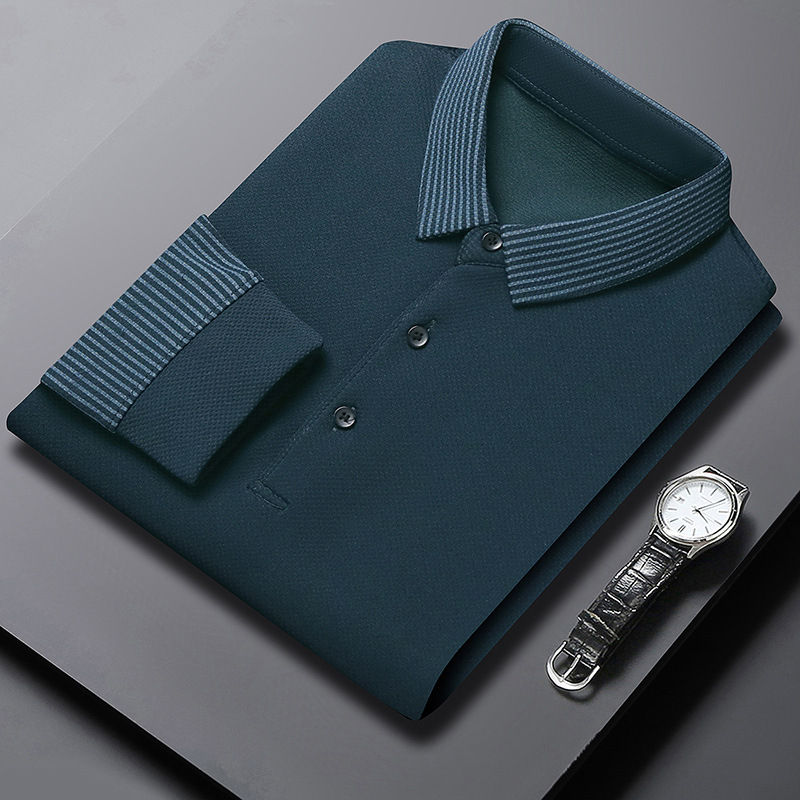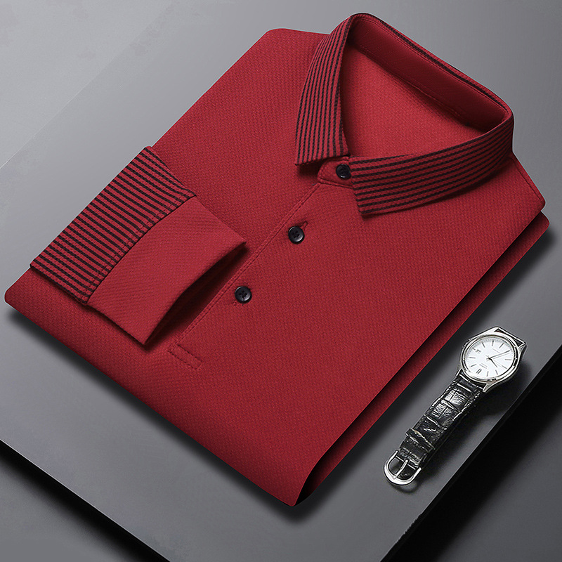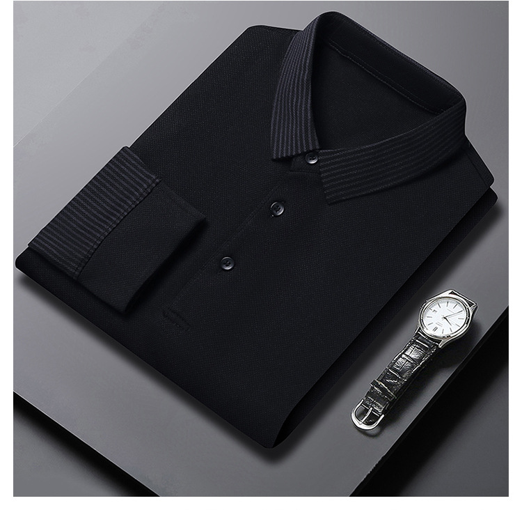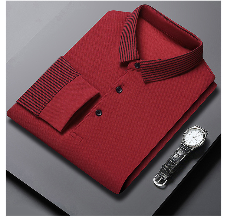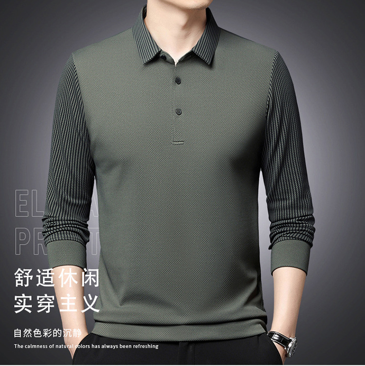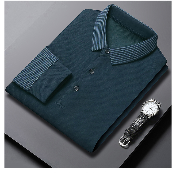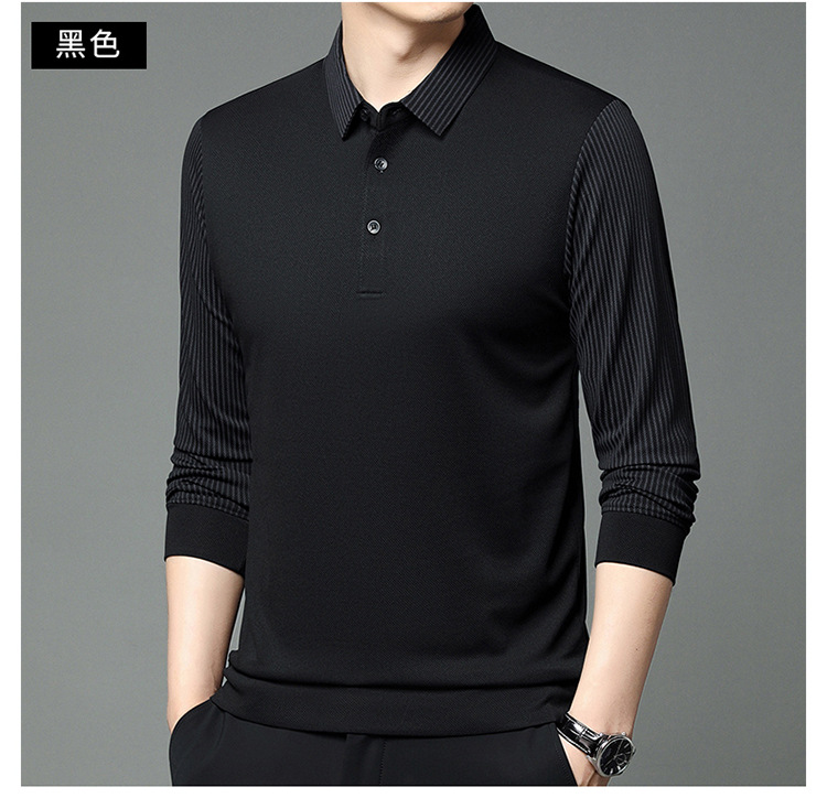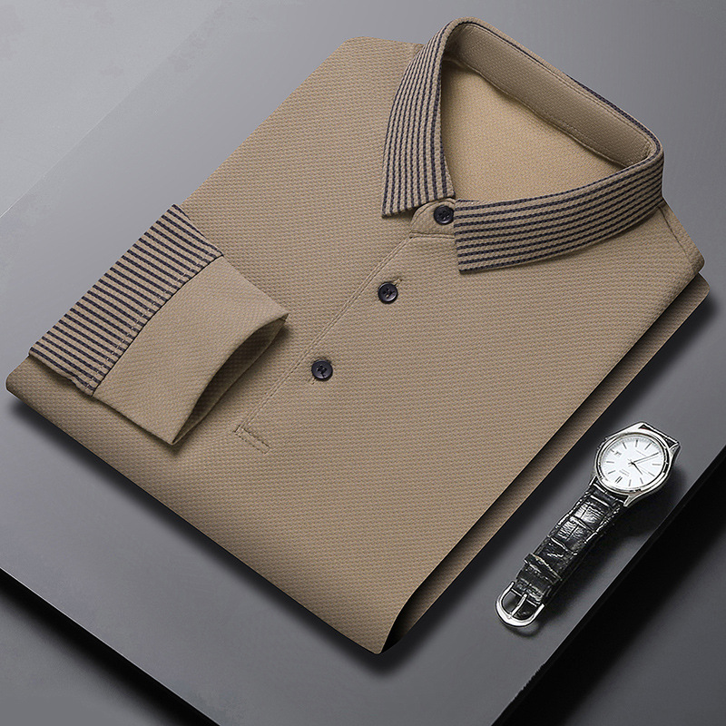 재고 Tommy Hikeli 남자 긴 소매 줄무늬 폴로 셔츠 가을 캐주얼 젊고 중년 아빠 롭 티셔츠 트렌디
