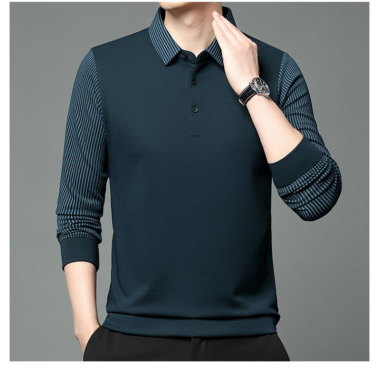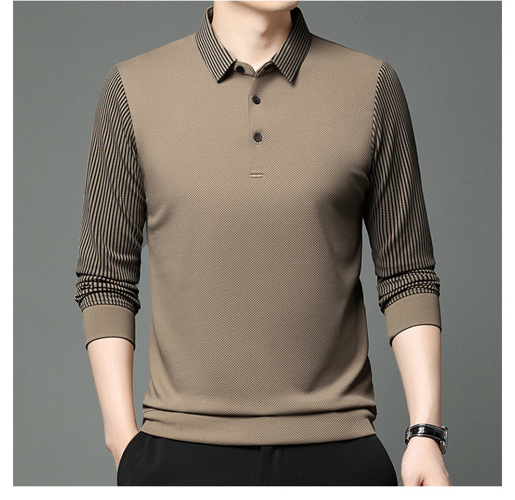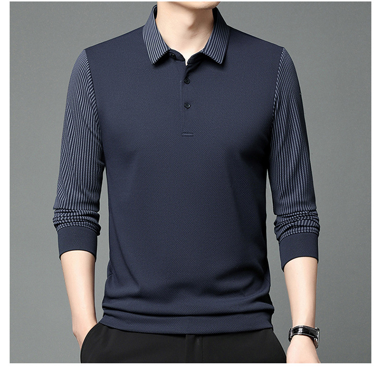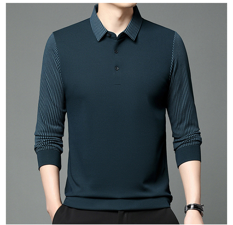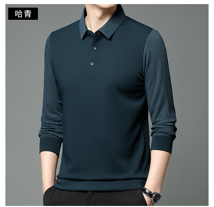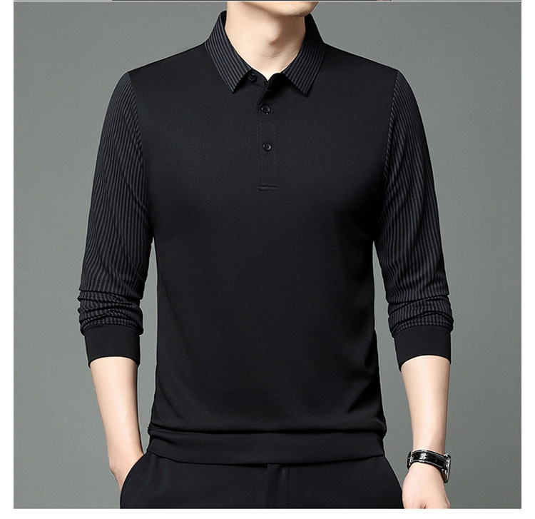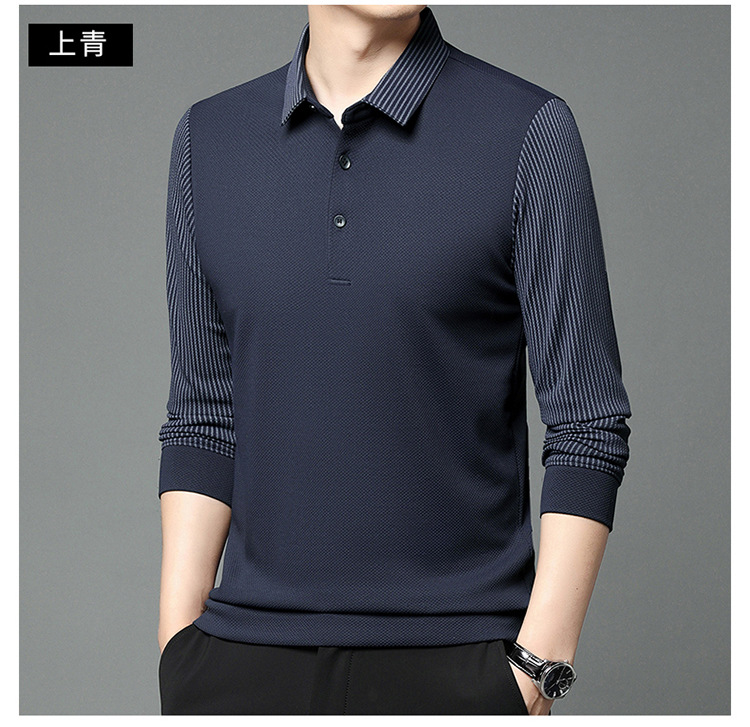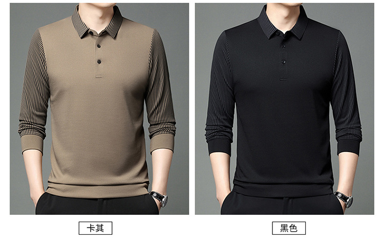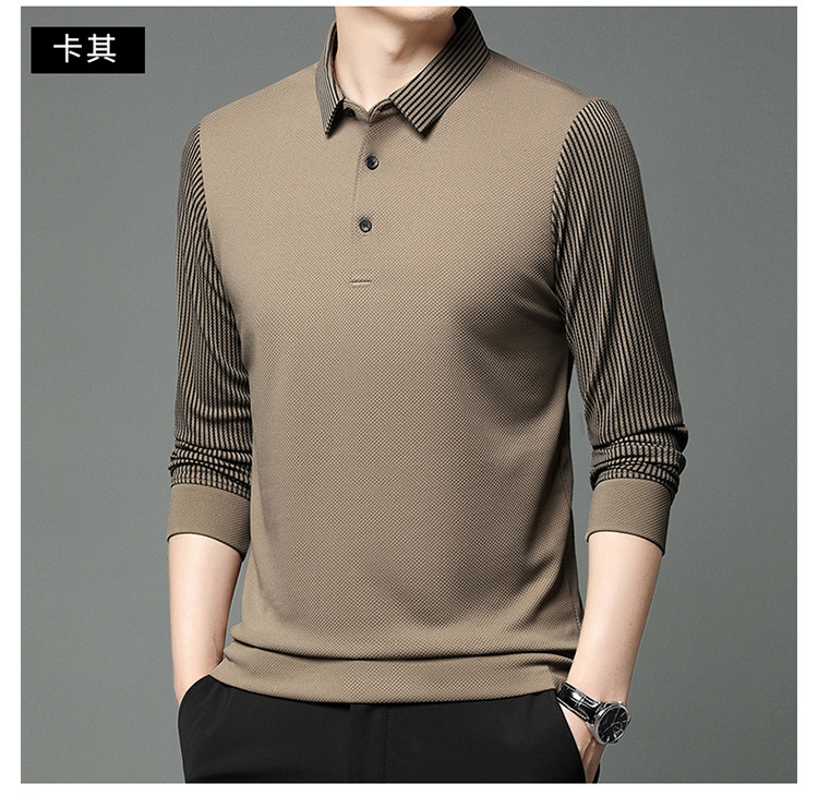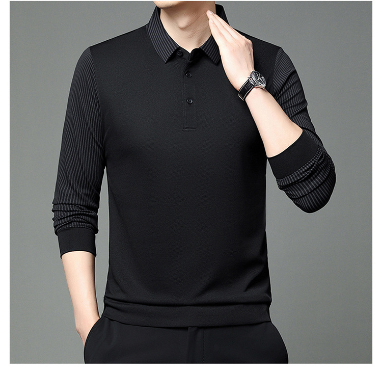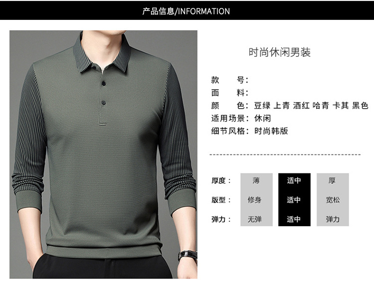 재고 Tommy Hikeli 남자 긴 소매 줄무늬 폴로 셔츠 가을 캐주얼 젊고 중년 아빠 롭 티셔츠 트렌디스토어 가기
