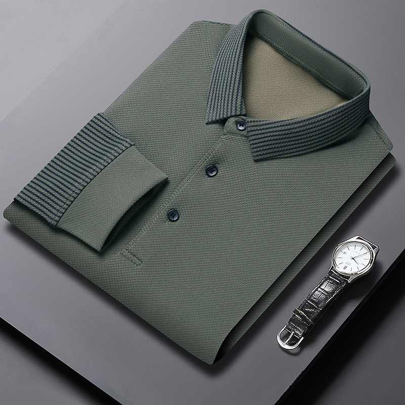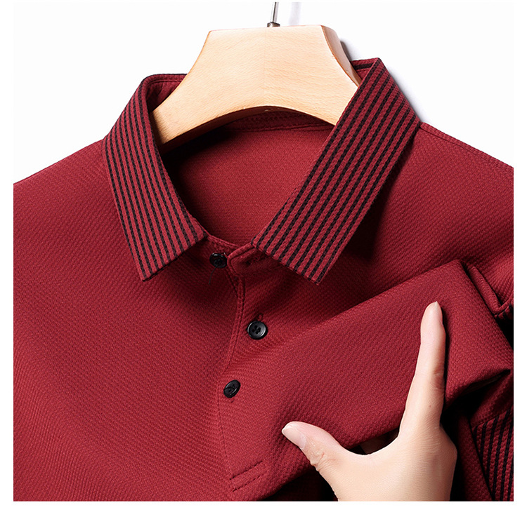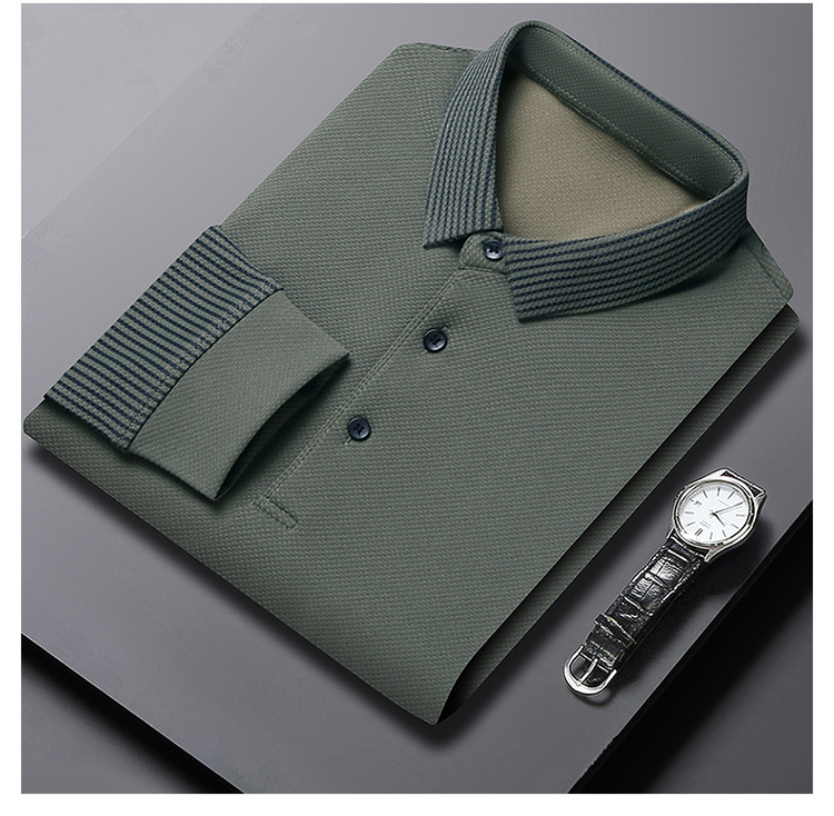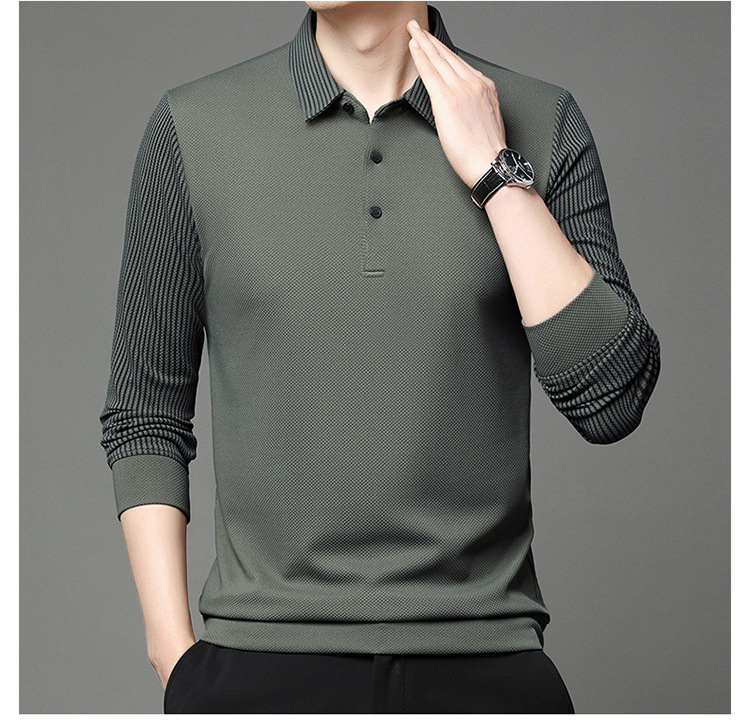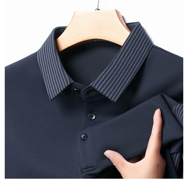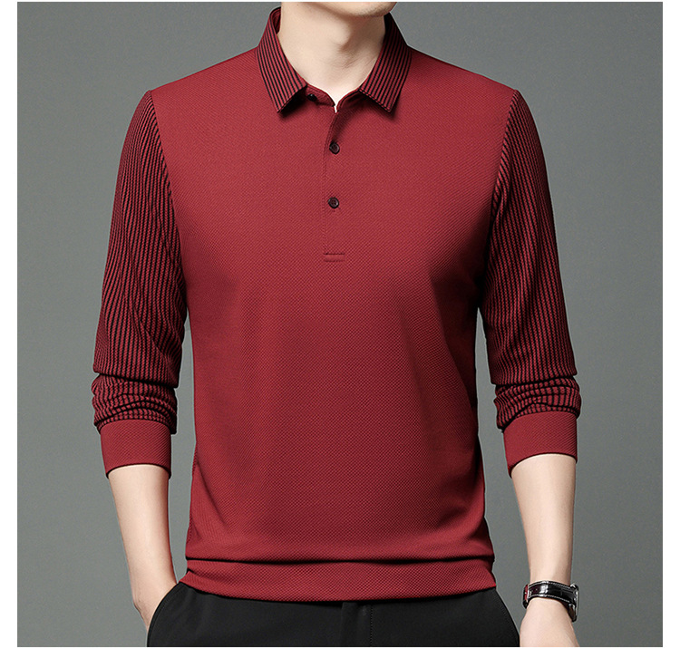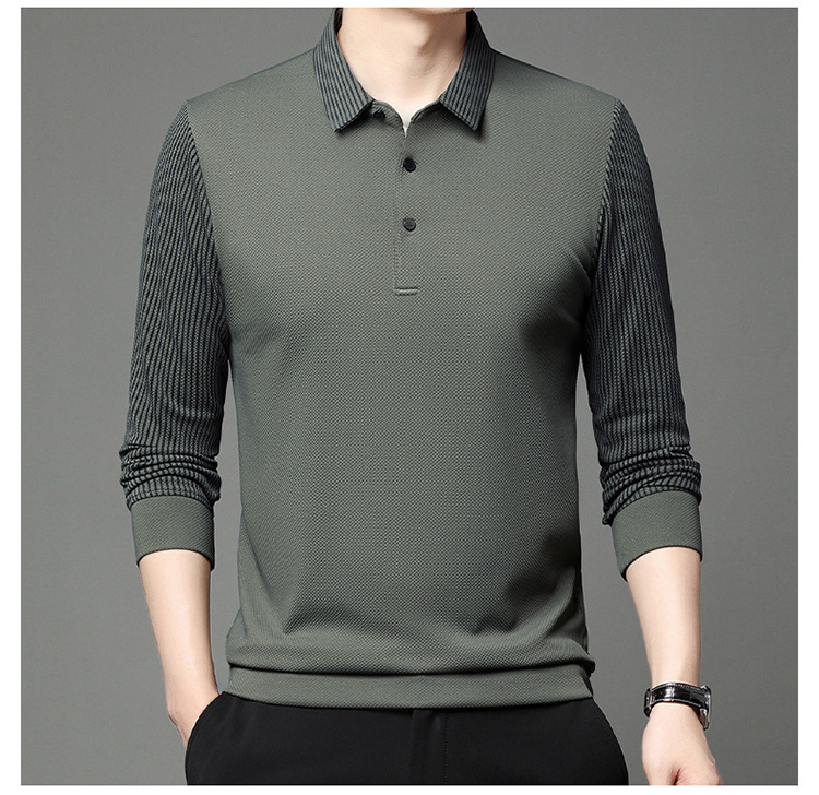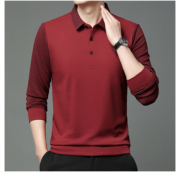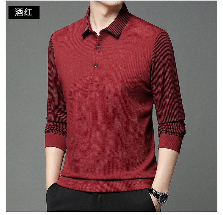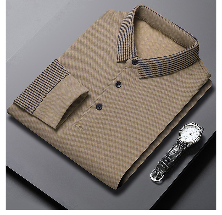 재고 Tommy Hikeli 남자 긴 소매 줄무늬 폴로 셔츠 가을 캐주얼 젊고 중년 아빠 롭 티셔츠 트렌디스토어 가기