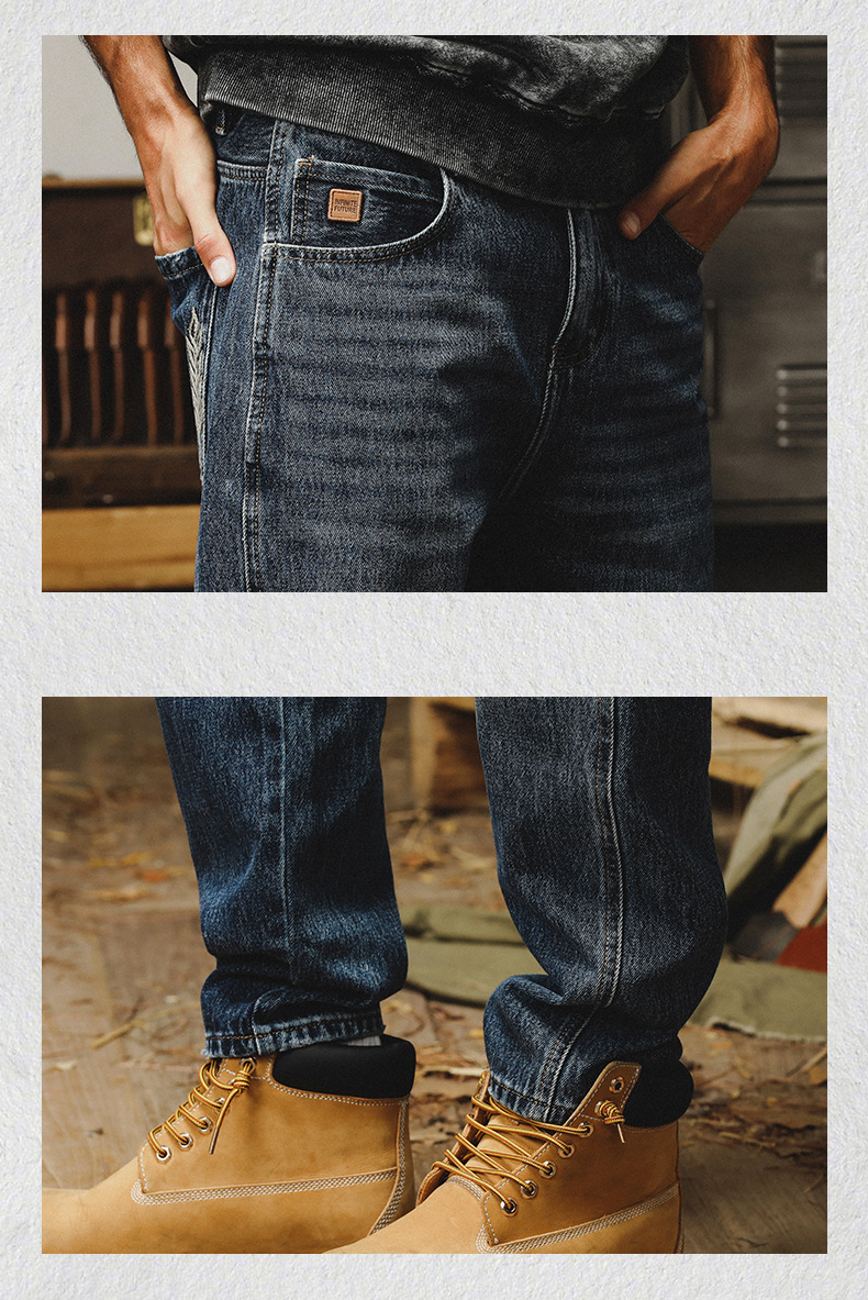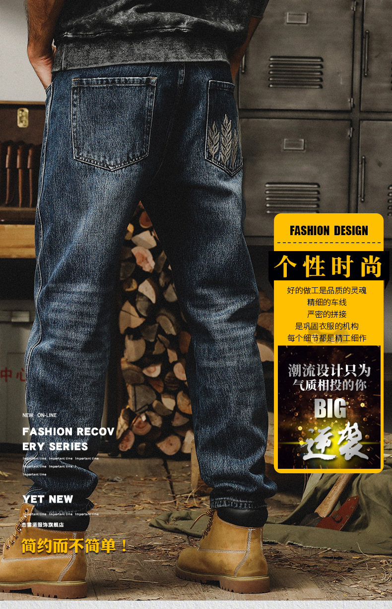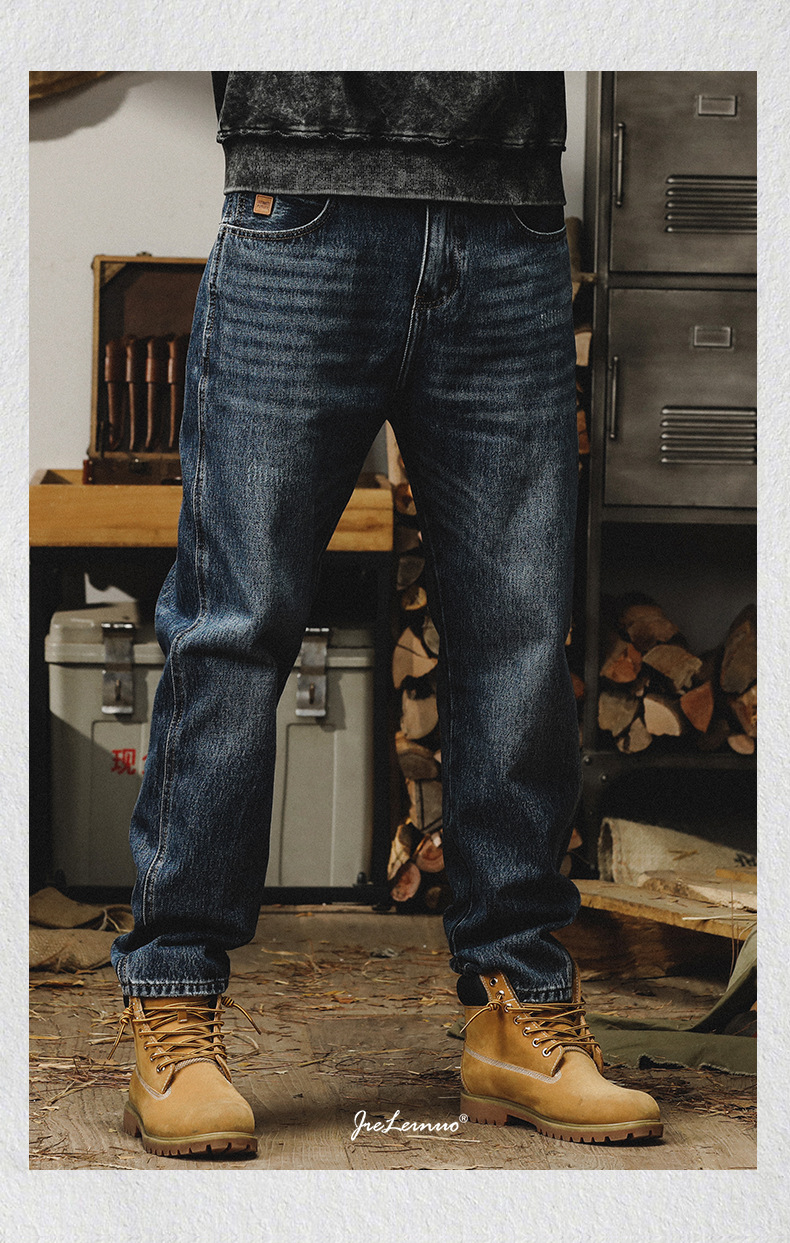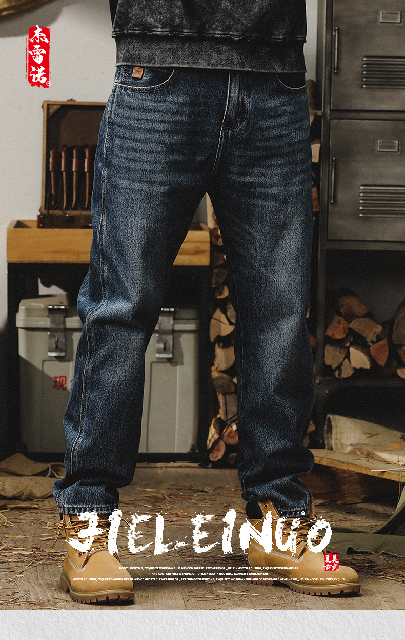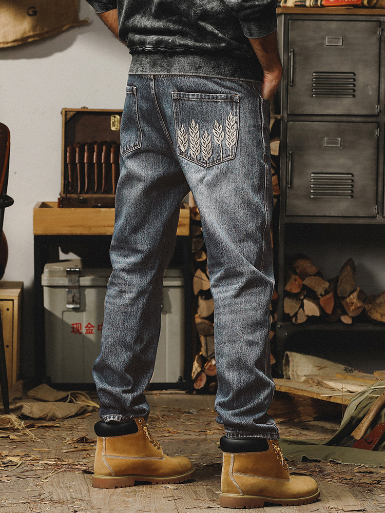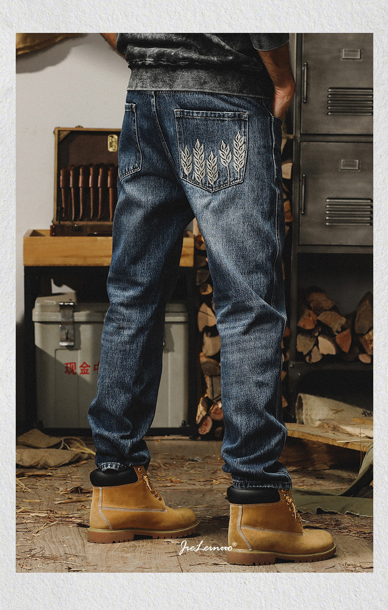 제이 레노 미국 헤비 스톤 세탁 청바지 남성용 스트레이트 느슨한 봄과 가을 자수 캐주얼 긴 바지스토어 가기