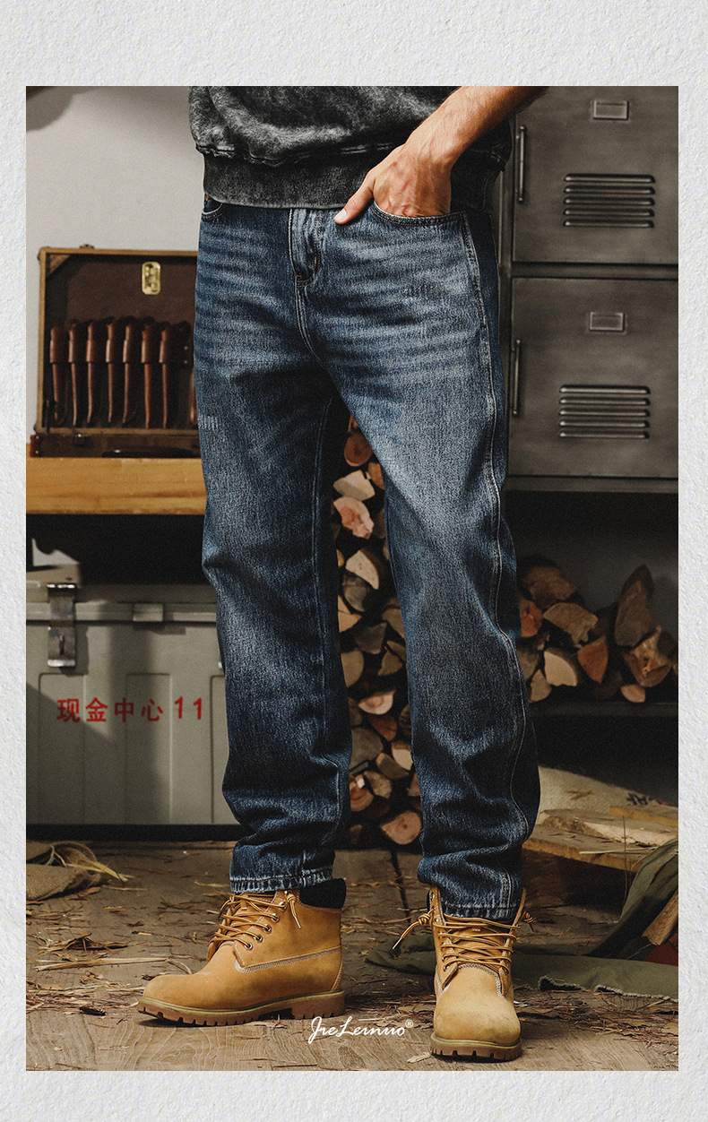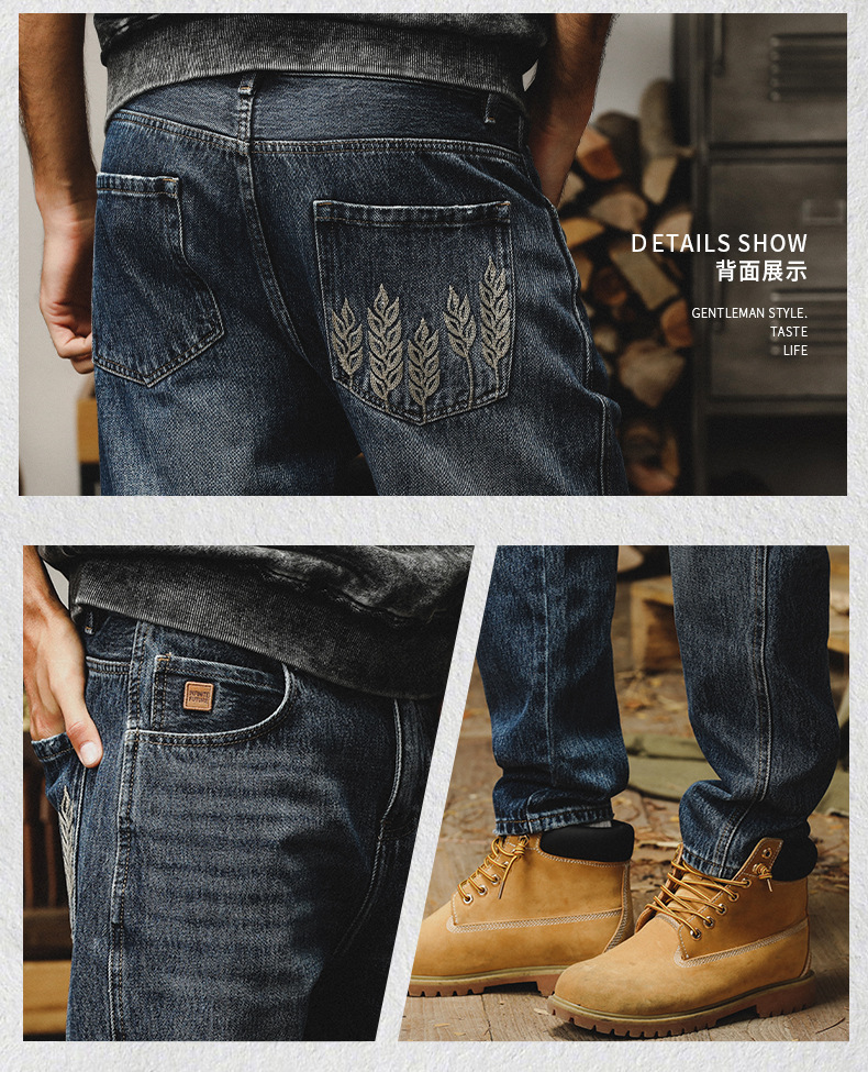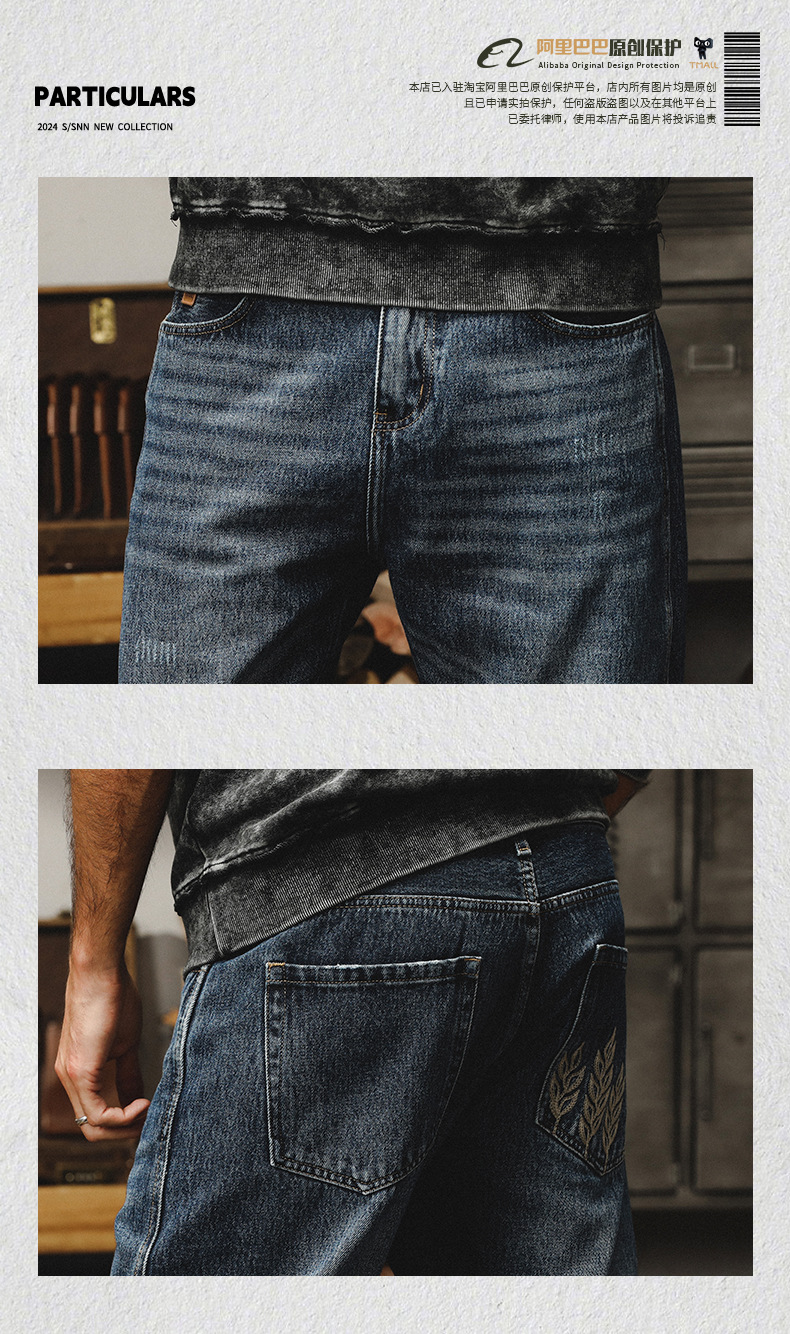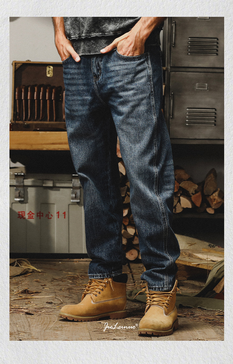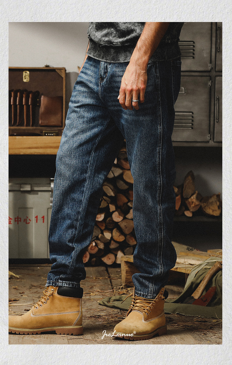 제이 레노 미국 헤비 스톤 세탁 청바지 남성용 스트레이트 느슨한 봄과 가을 자수 캐주얼 긴 바지스토어 가기
