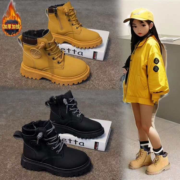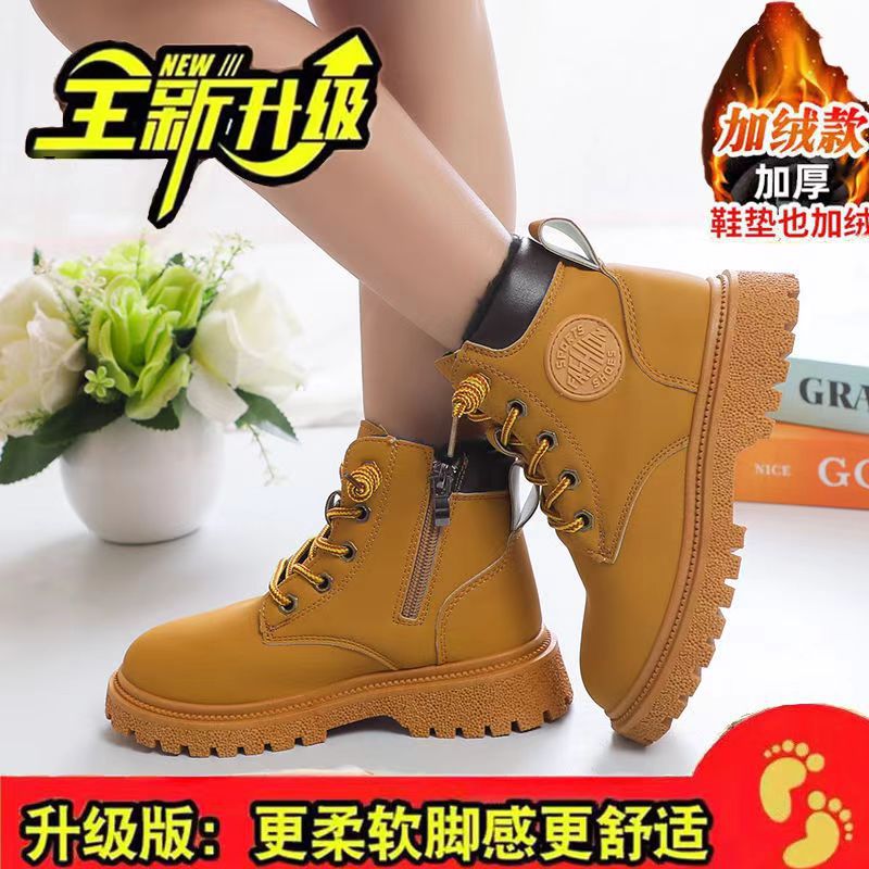 어린이 마틴 2024 가을, 겨울 벨벳 새 스타일 소녀 짧은 부츠 소년 가죽 부츠 싱글 부츠 노란색 부츠 부츠 영국 봄, 가을스토어 가기