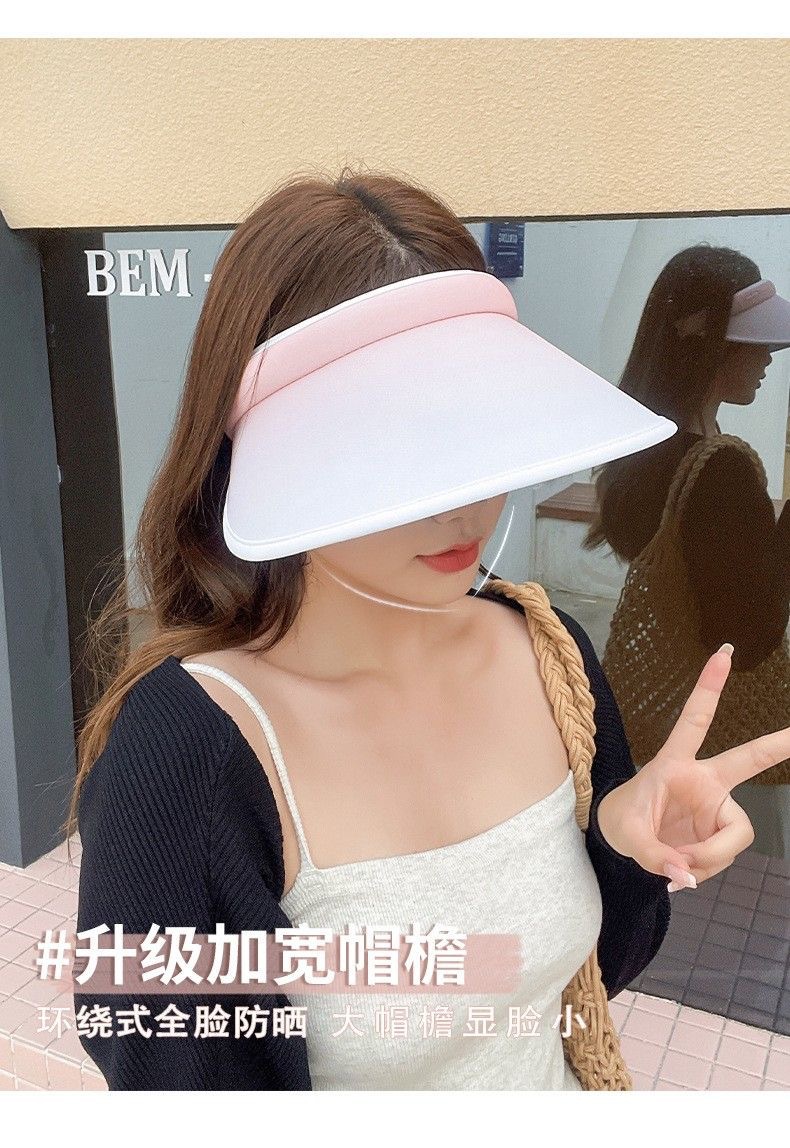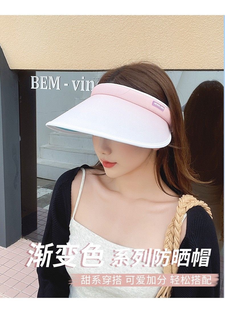 새로운 자외선 차단제 여름 안티 자외선 테두리 태양 모자 그라데이션 태양 모자 여성의 빈 모자 여행 승마스토어 가기