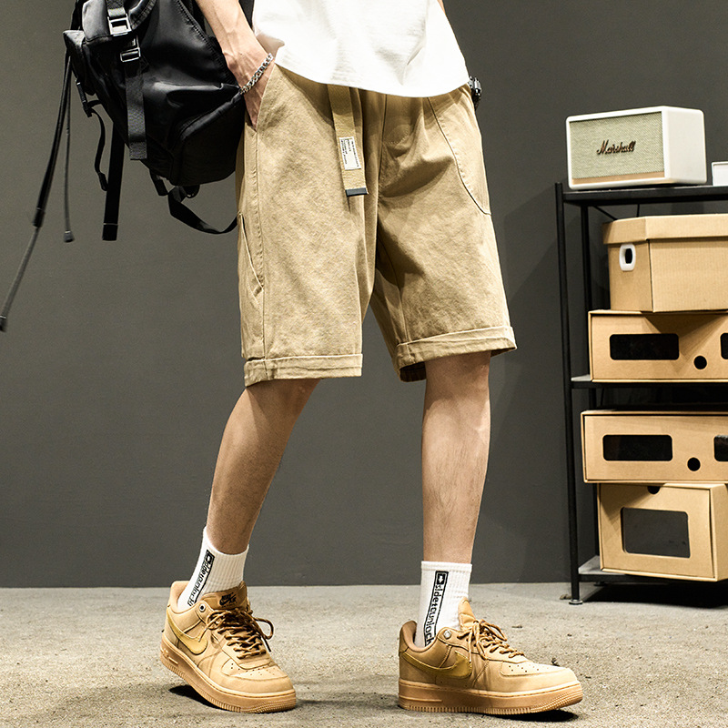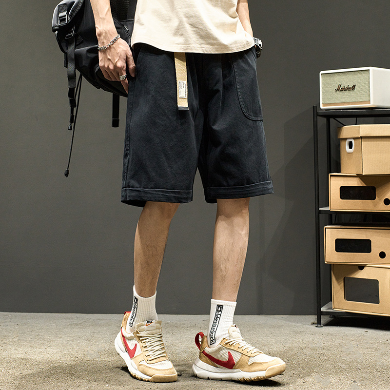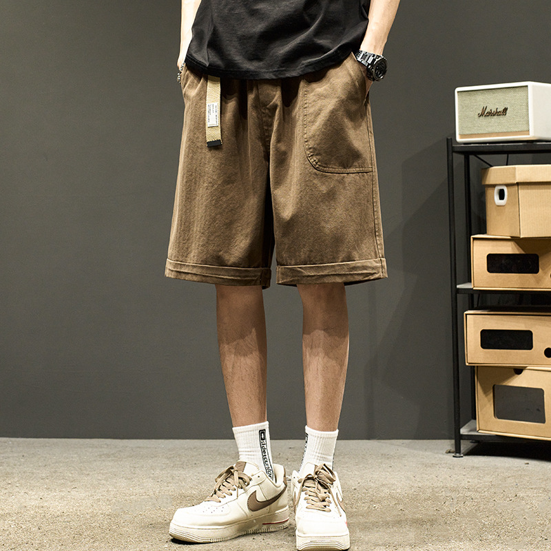 미국 솔리드 컬러 레트로 툴링 반바지 남성용 여름 루즈 스트레이트 트렌디 브랜드 하프 바지 남성용 캐주얼 하프 바지스토어 가기