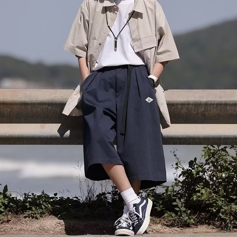여름 카프리 바지 소년 느슨한 오버 사이즈 오버 더 무릎 반바지 미국식 인스 타 그램 인기 캐주얼 와이드 레그 바지