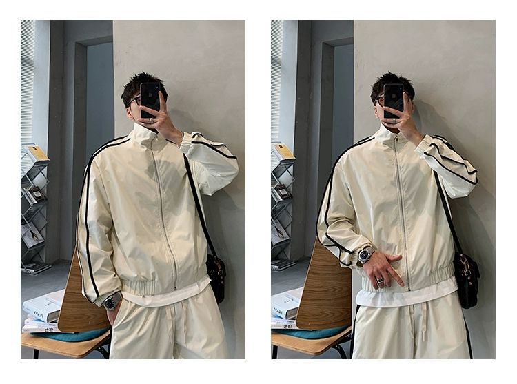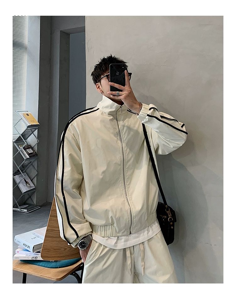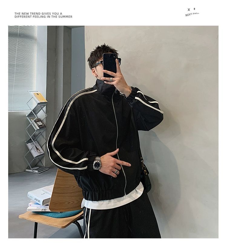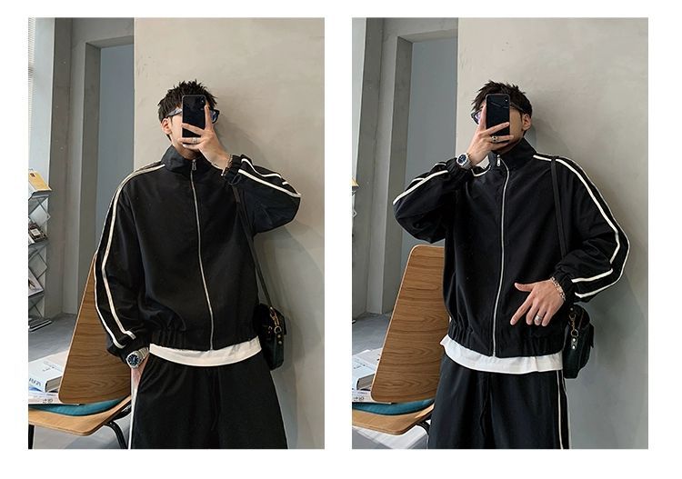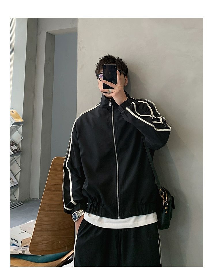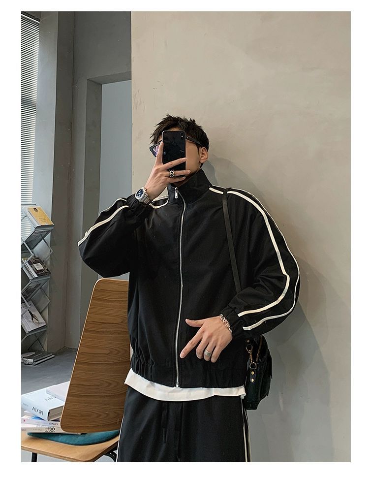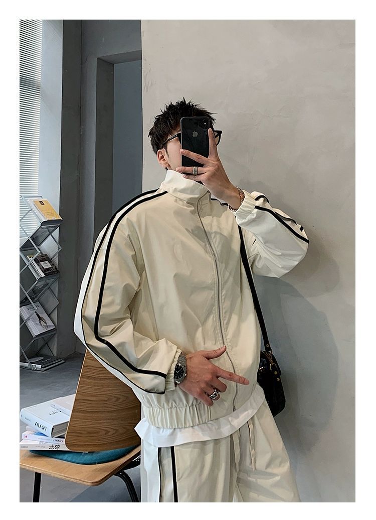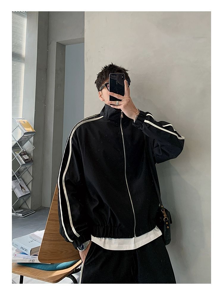 공장 직접 공급 2023 가을 새로운 디자인 색상 대비 칼라 느슨한 충전 재킷 재킷 유행 남성 yuppie