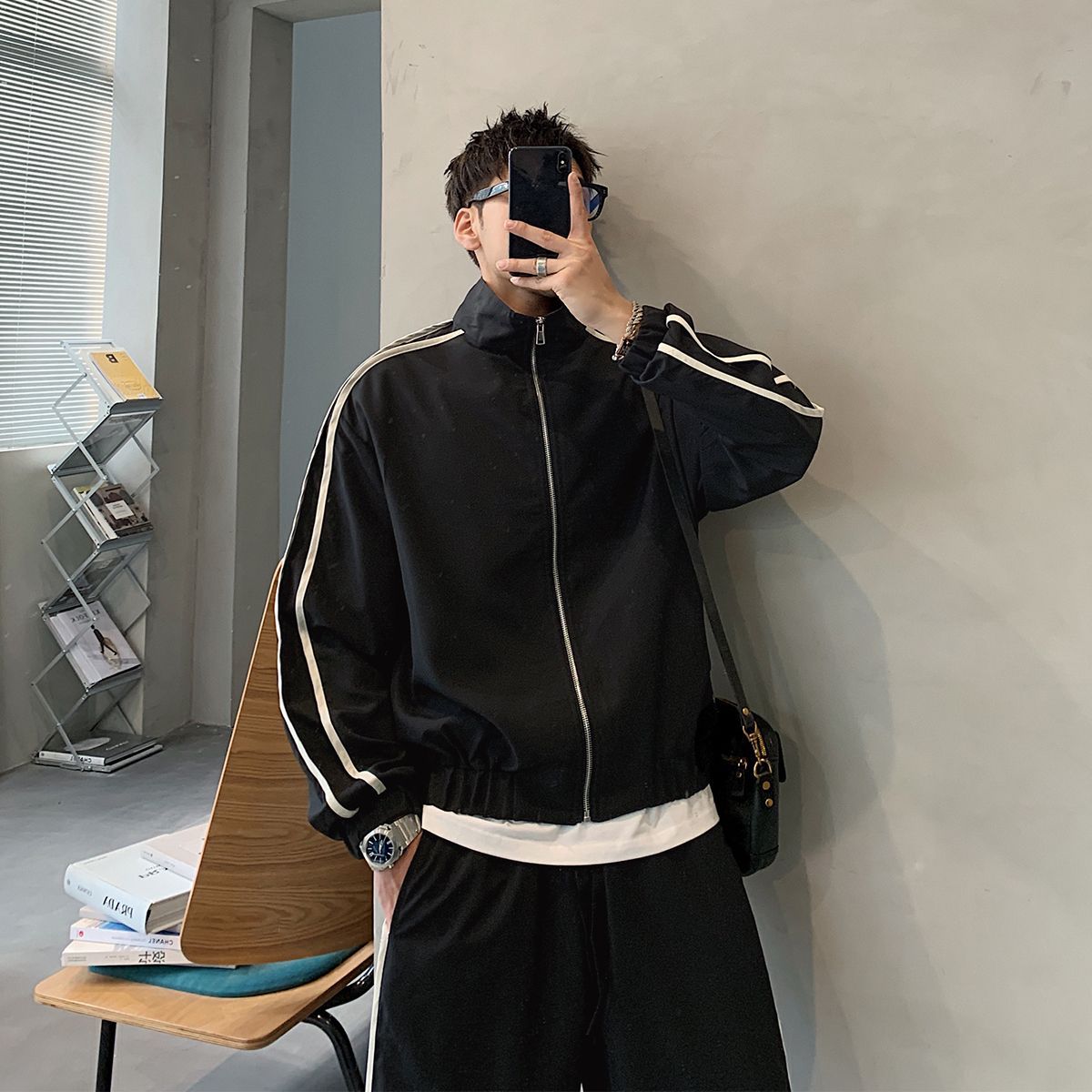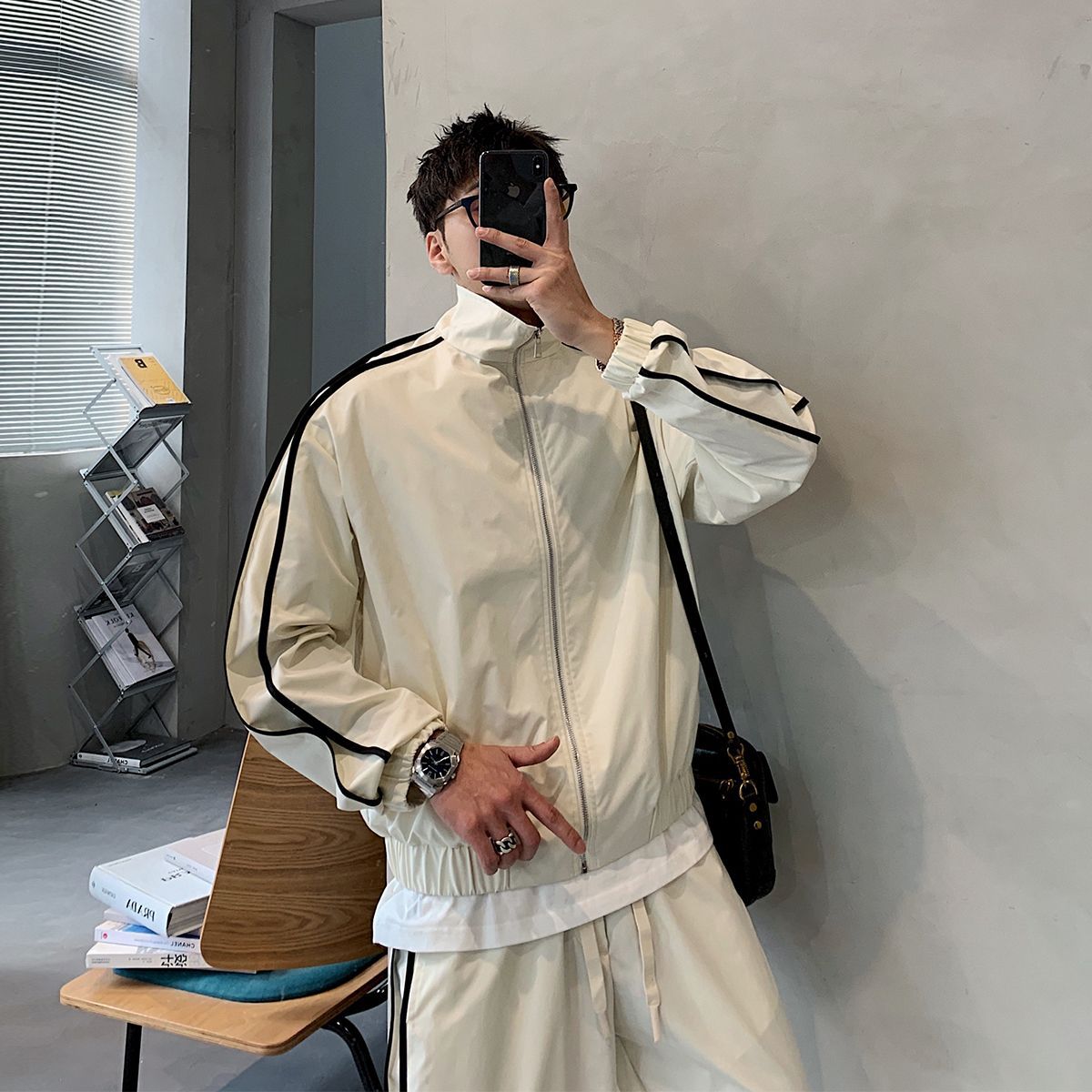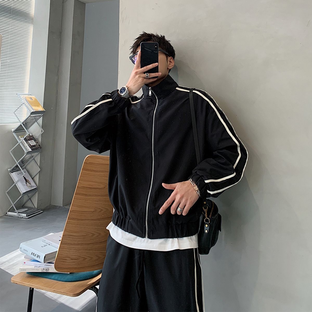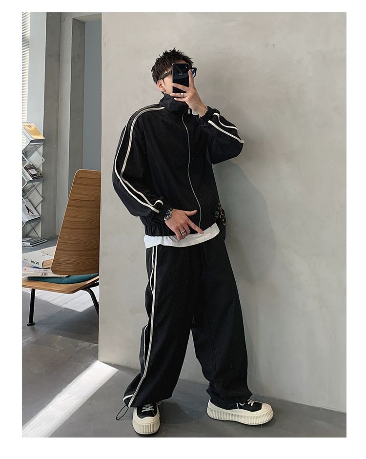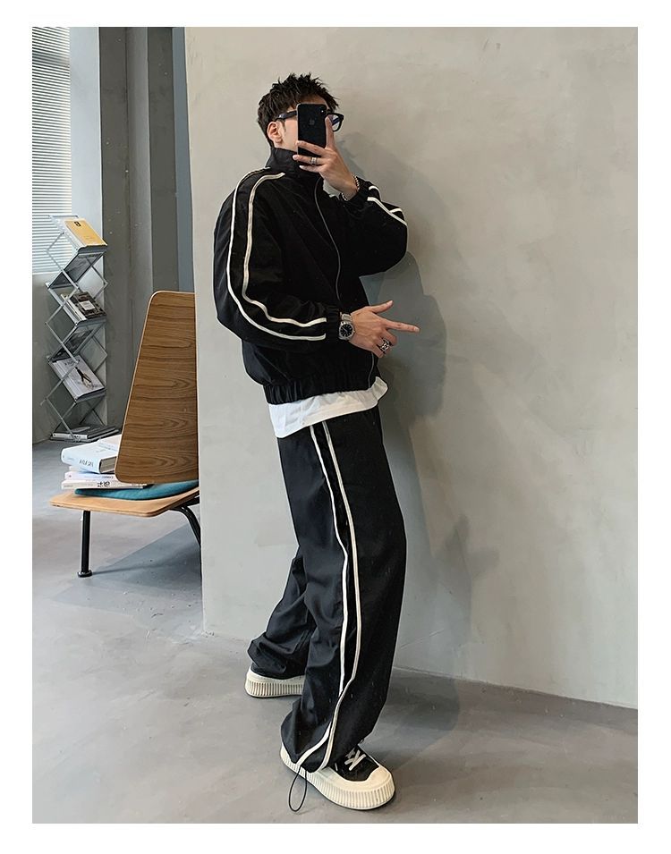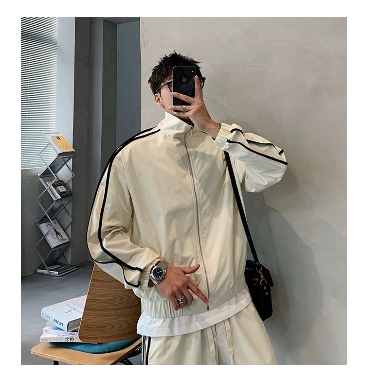 공장 직접 공급 2023 가을 새로운 디자인 색상 대비 칼라 느슨한 충전 재킷 재킷 유행 남성 yuppie