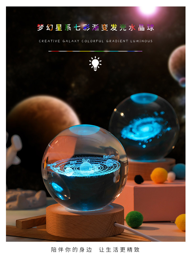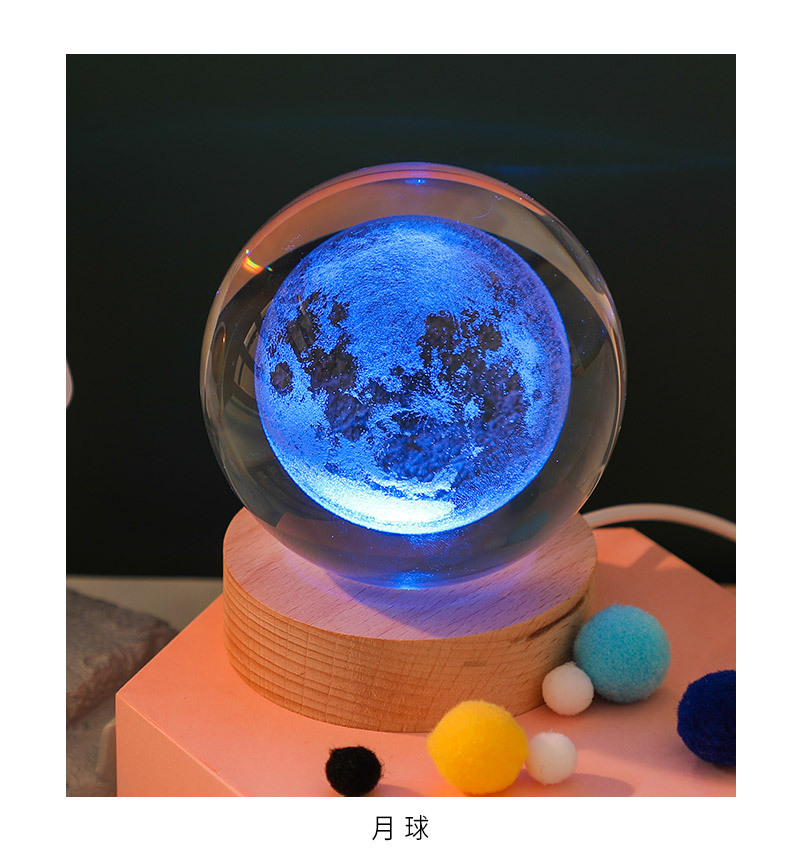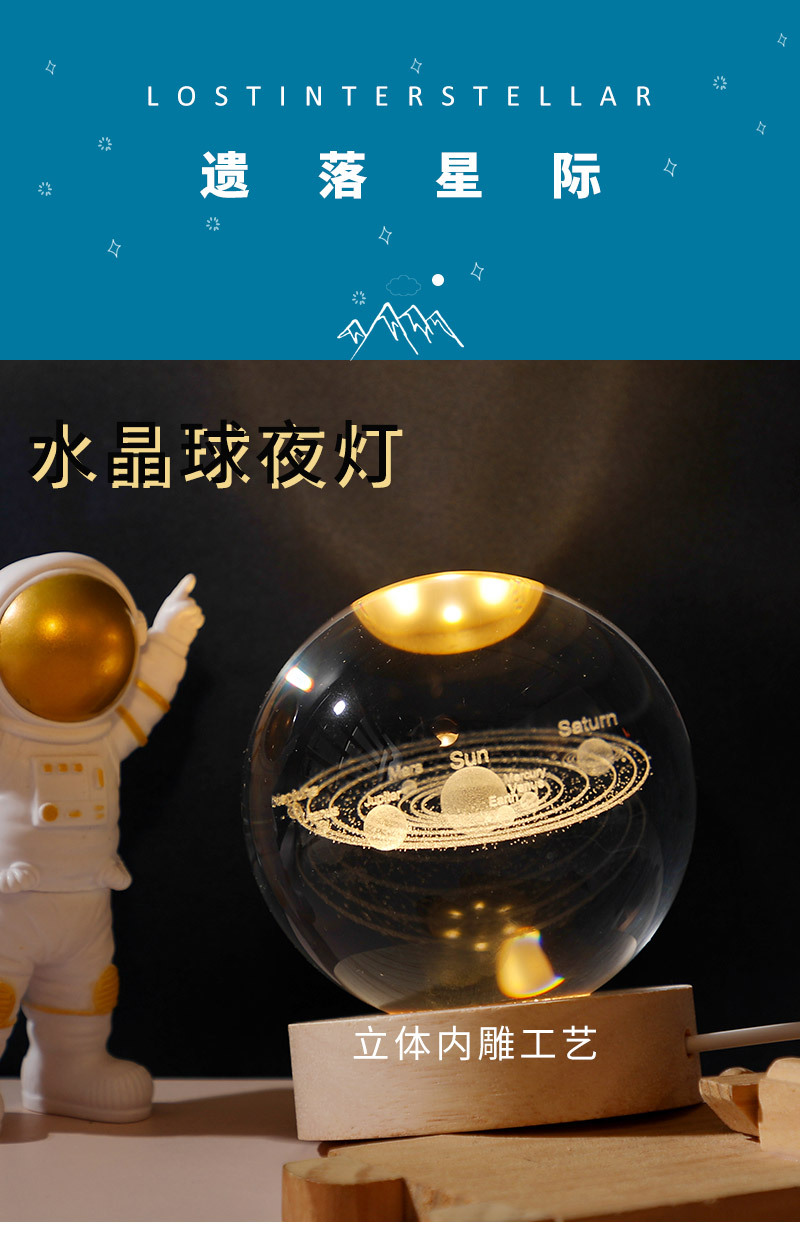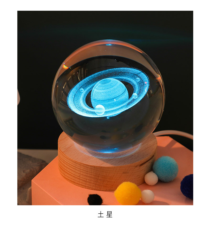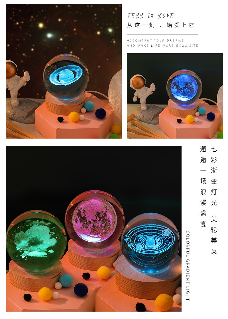빛나는 태양계 3D 내부 조각 크리스탈 볼 음성 제어 야간 조명 데스크탑 장식품 학생 선물스토어 가기