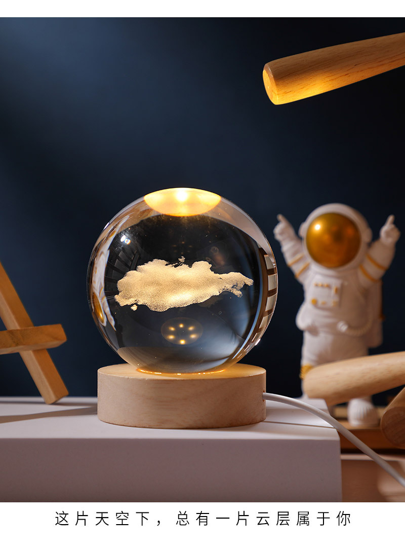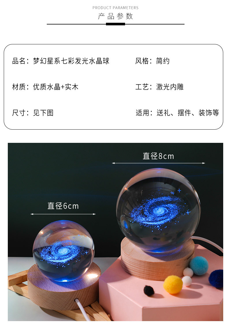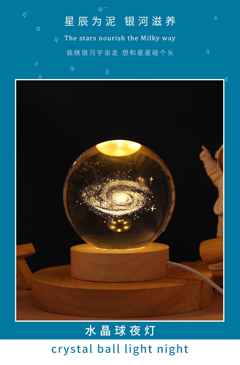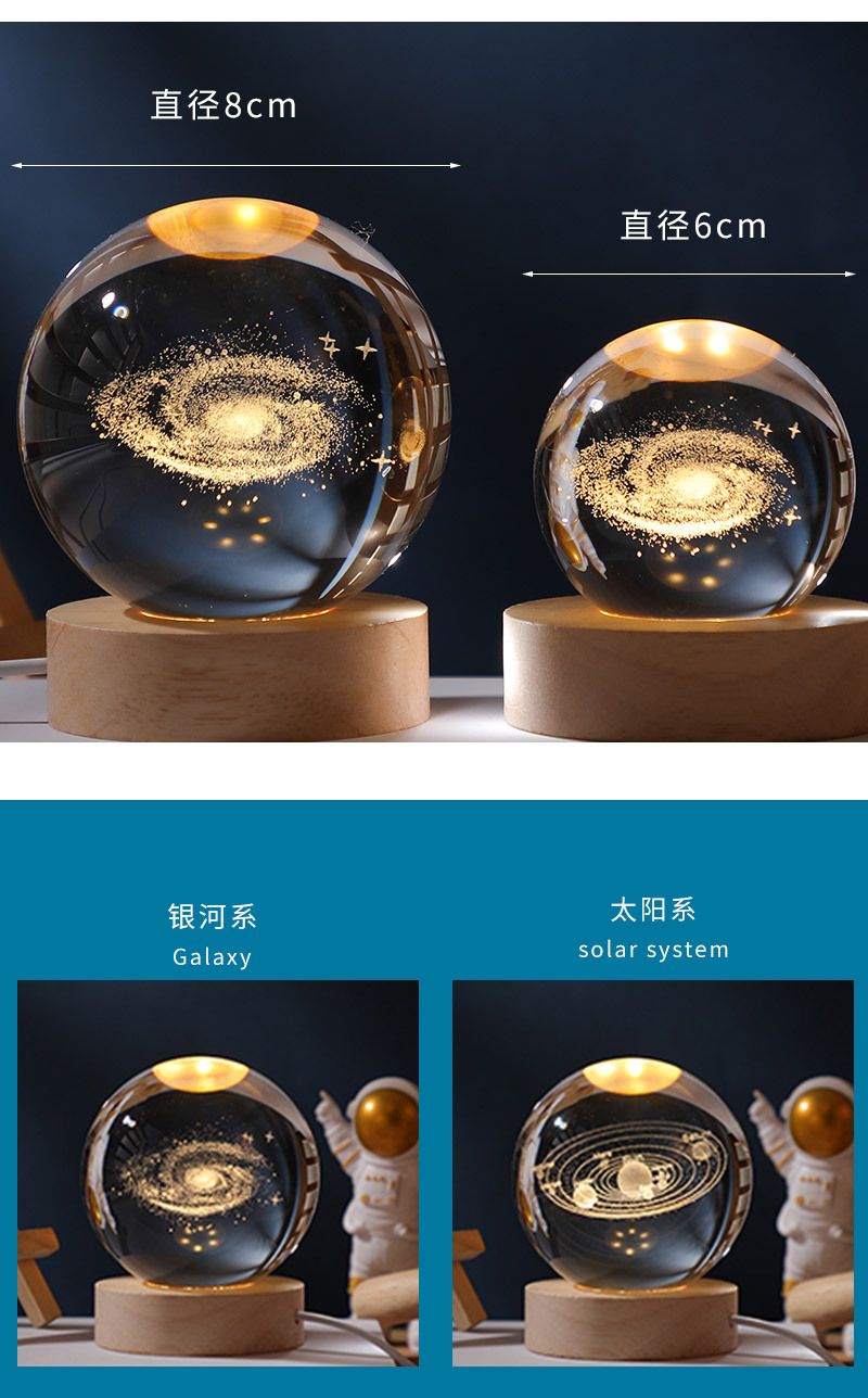 빛나는 태양계 3D 내부 조각 크리스탈 볼 음성 제어 야간 조명 데스크탑 장식품 학생 선물스토어 가기