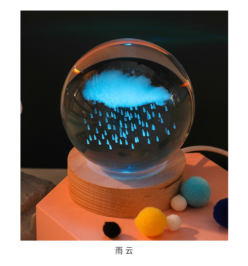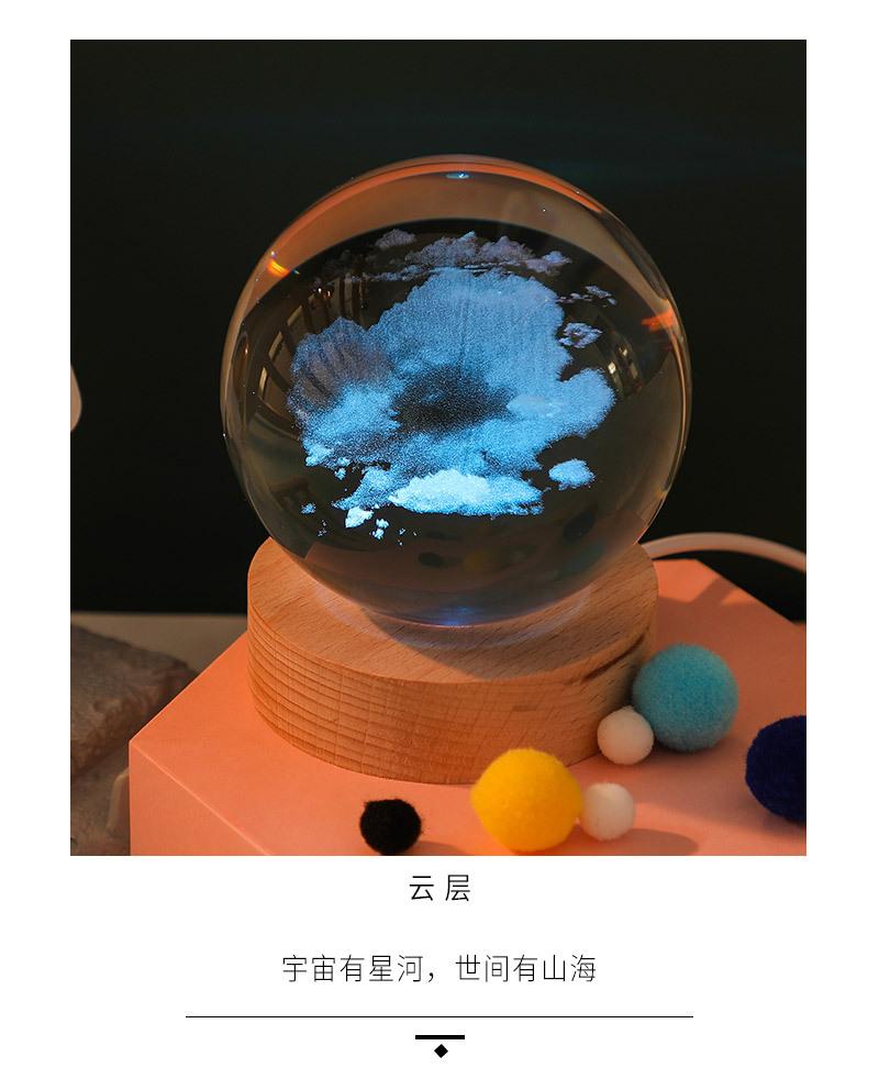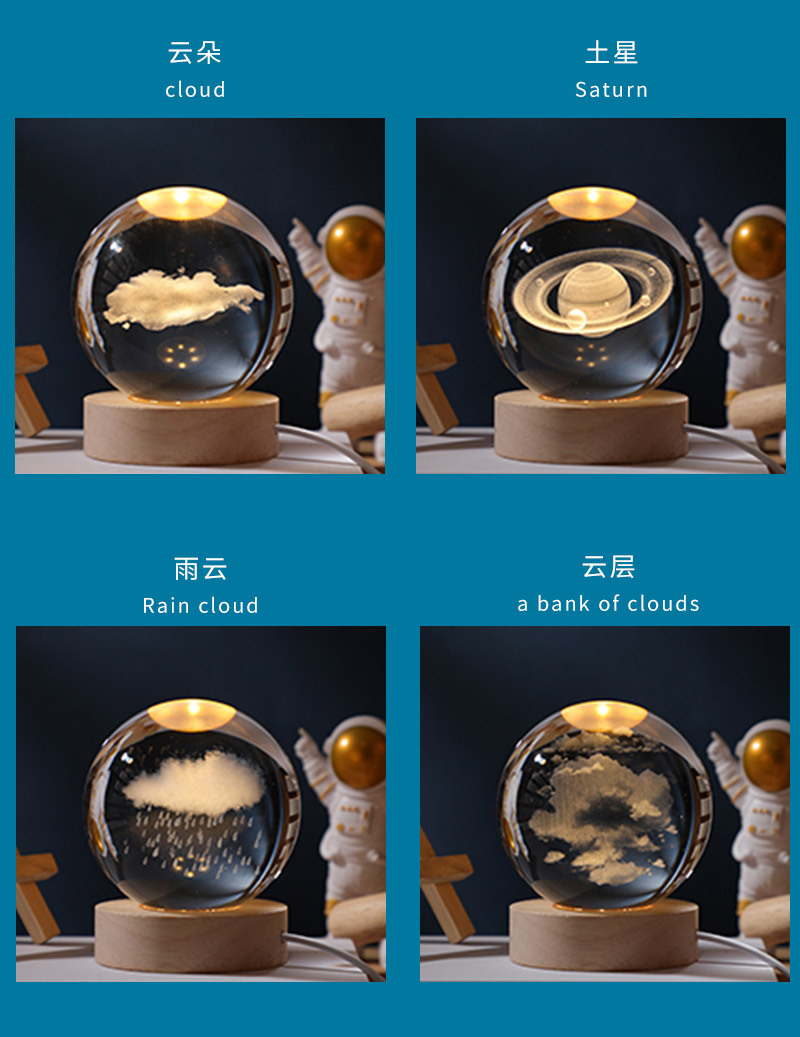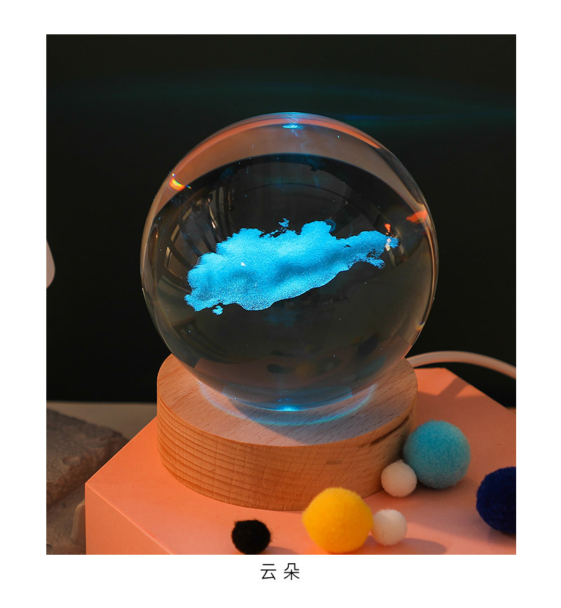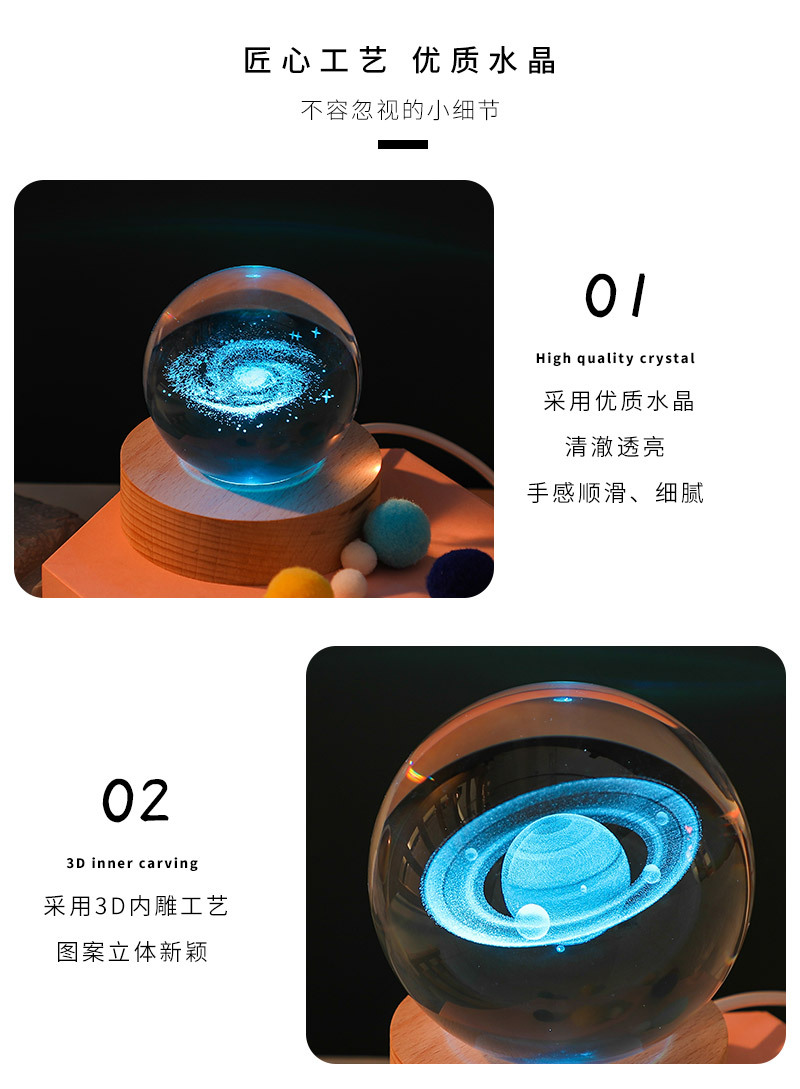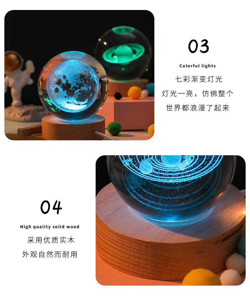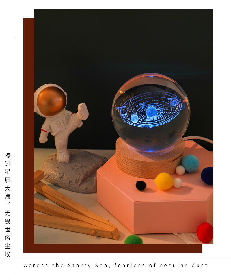 빛나는 태양계 3D 내부 조각 크리스탈 볼 음성 제어 야간 조명 데스크탑 장식품 학생 선물