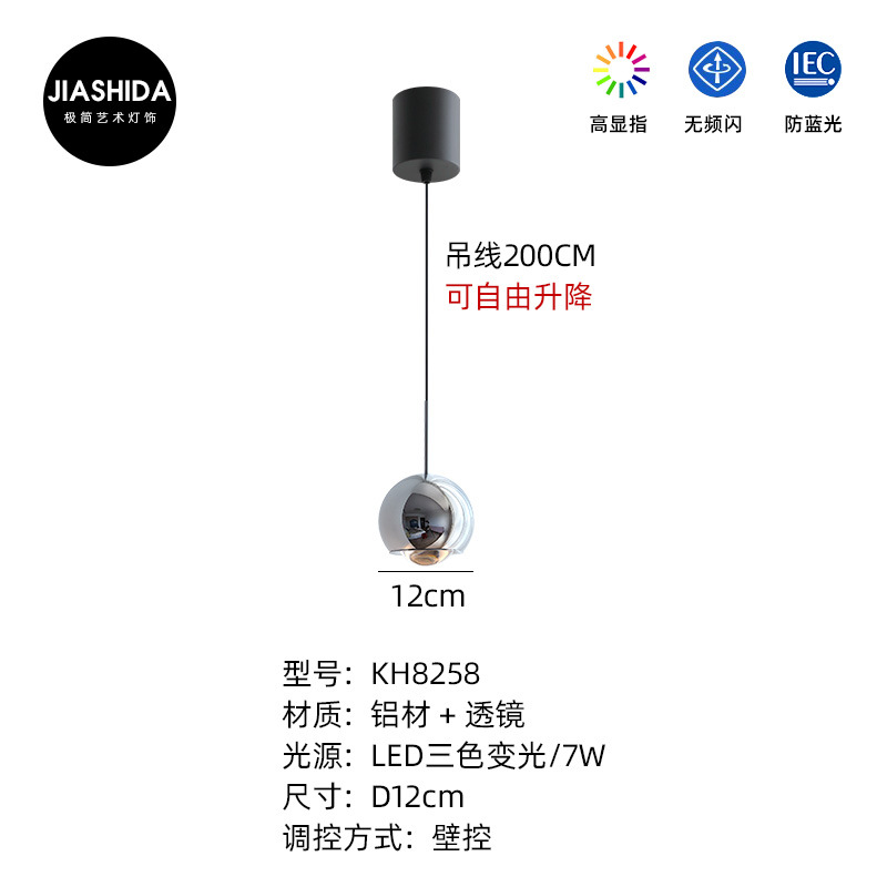이탈리아 미니멀리스트 침실 램프 고급 감각 2024 새로운 침대 옆 작은 샹들리에 무료 리프팅 호버 눈 보호 긴 라인 램프
