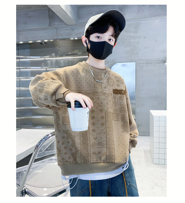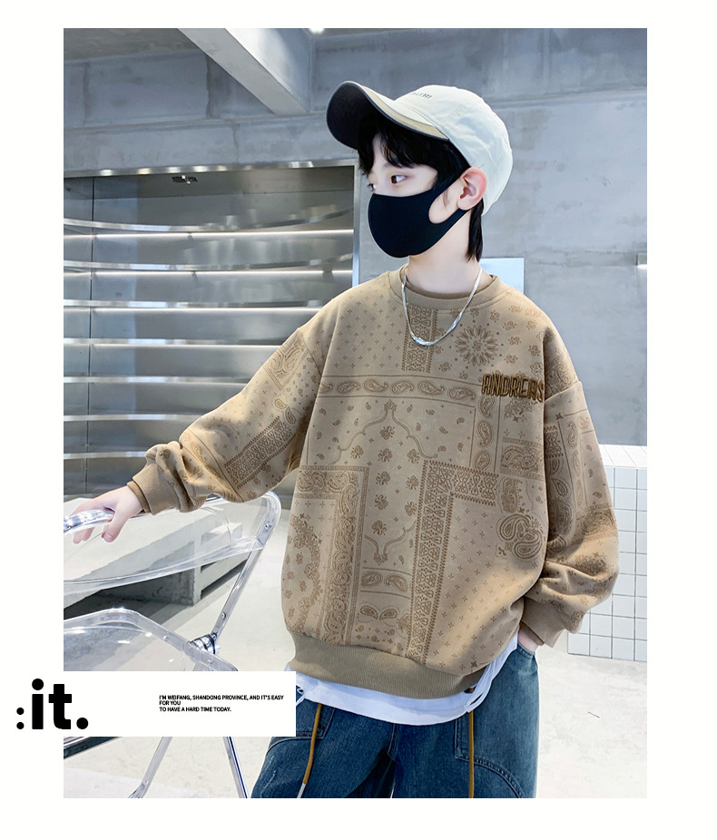 어린이 의류 소년 가을 스웨터 2024 새로운 긴 소매 셔츠 유행