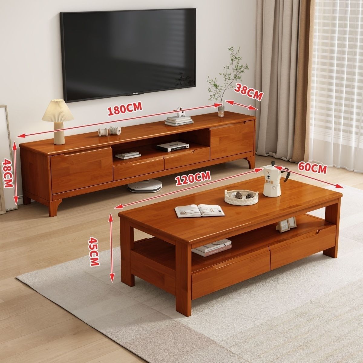• 1.2m TV 캐비닛 + 단단한 나무 커피 테이블