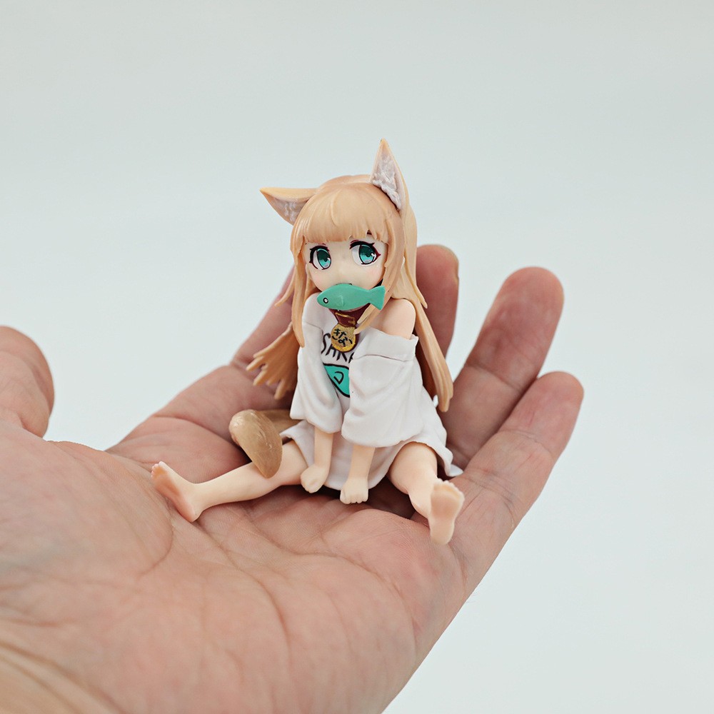 아름다운 소녀 콩 가루 앉아 자세 고양이 니앙 앉아 물고기 상자 손으로 만든 모델 데스크탑 인형 장식품스토어 가기