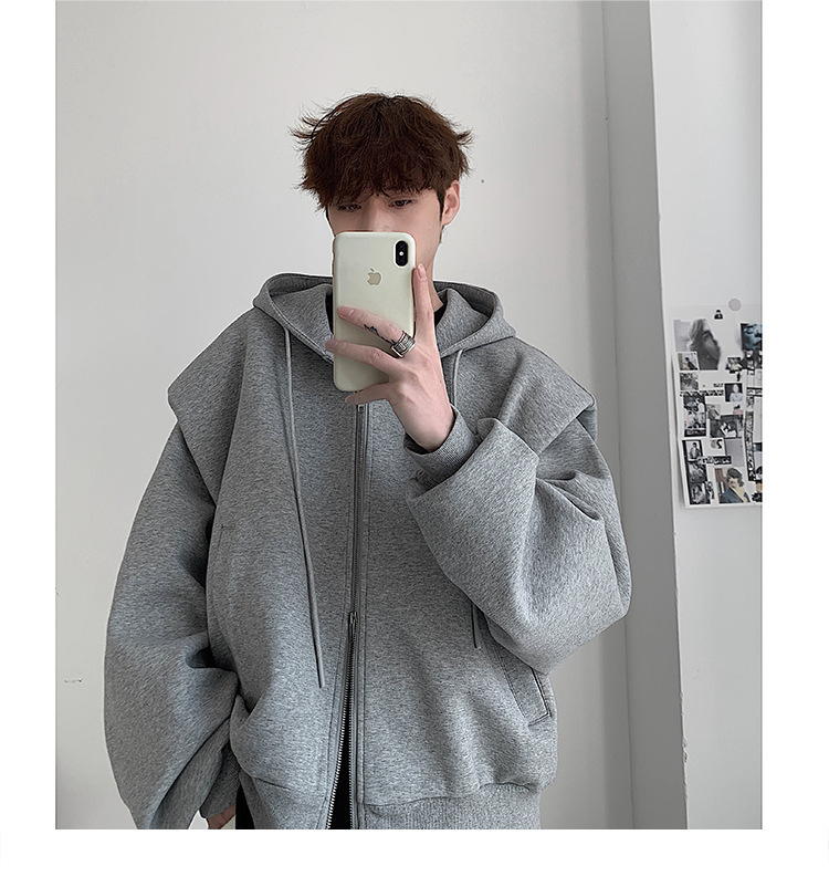 국경 간 하라주쿠 스타일 트렌디 느슨한 긴 소매 어깨 후드 스웨트 셔츠 남성 패션 코트 남성 Ins 하이 스트리트 트렌디 브랜드스토어 가기