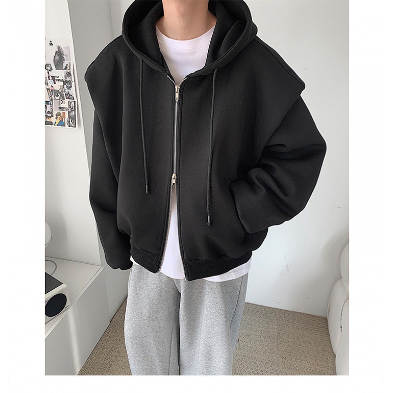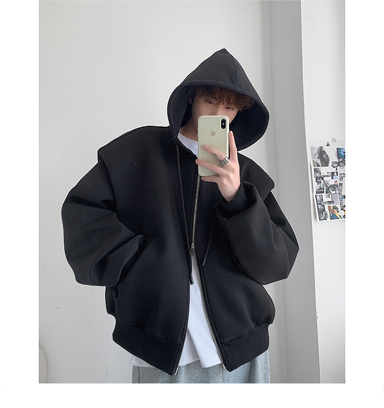 春秋时尚外套男ins高街潮牌原宿风潮流宽松长袖垫肩连帽卫衣男装