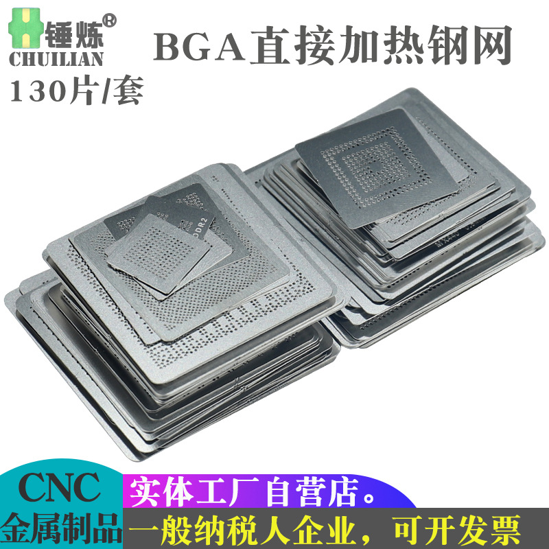 采用进口不锈钢板特制。钢网厚度佳。可直接风枪加热,钢网受热不易变形。配合普通风枪即可进行手工植球。无需另外购置植球台孔径均匀。 (0.76、0.6)