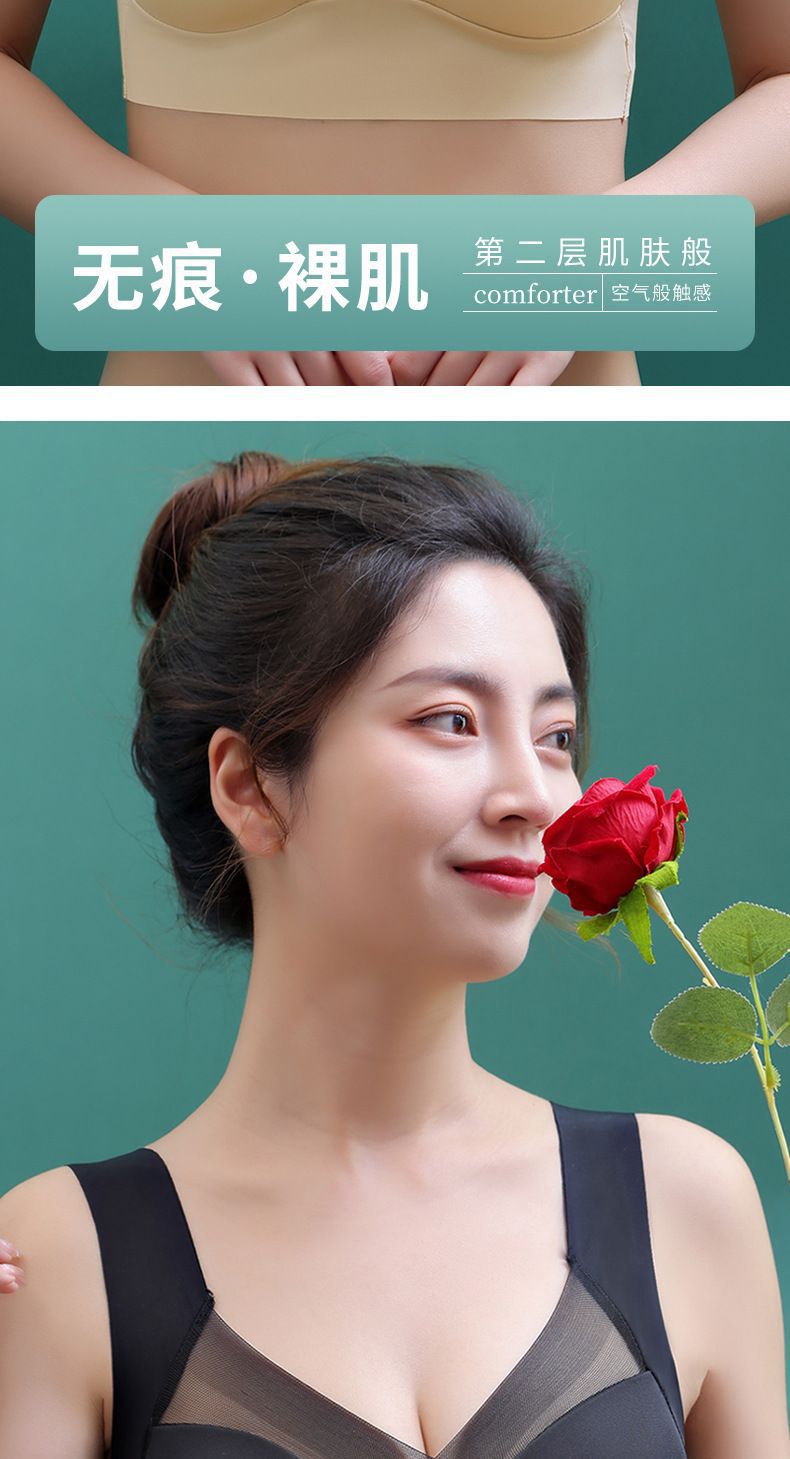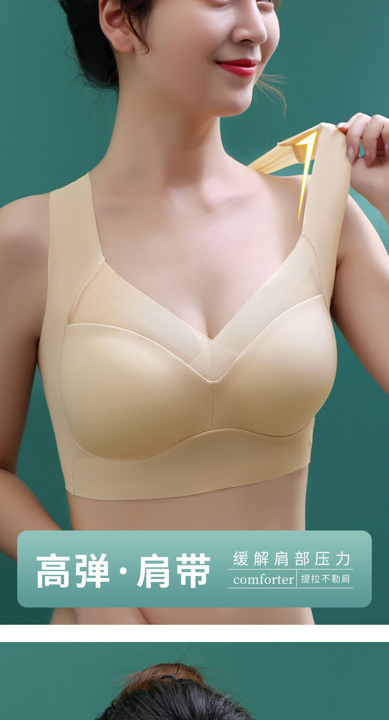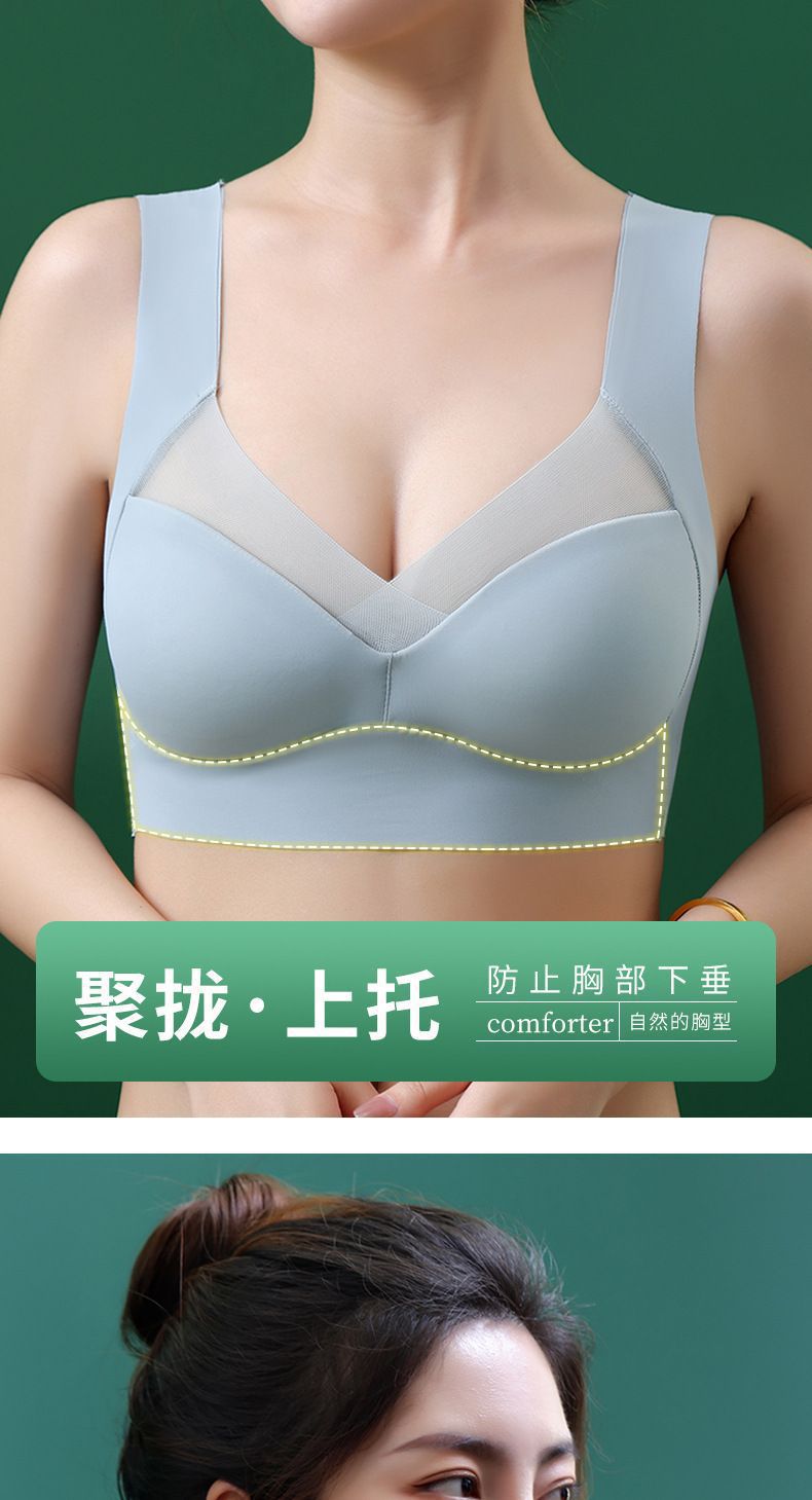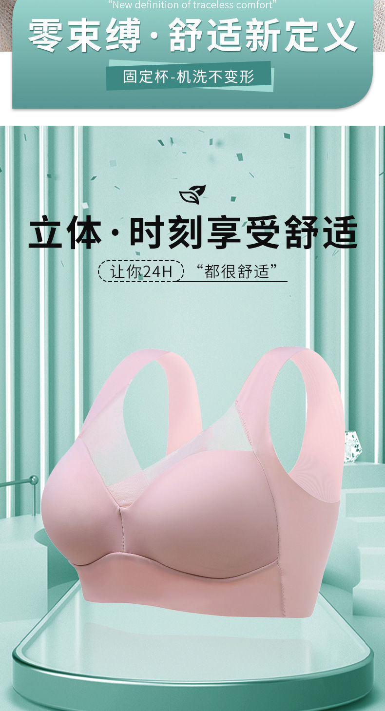 얇은 아이스 실크 추적없는 속옷 여성의 아름다운 등 푸시업 안티 처짐 통합 고정 컵 Rimless 스포츠 브라스토어 가기