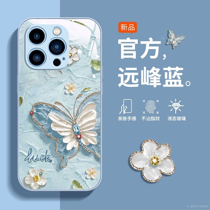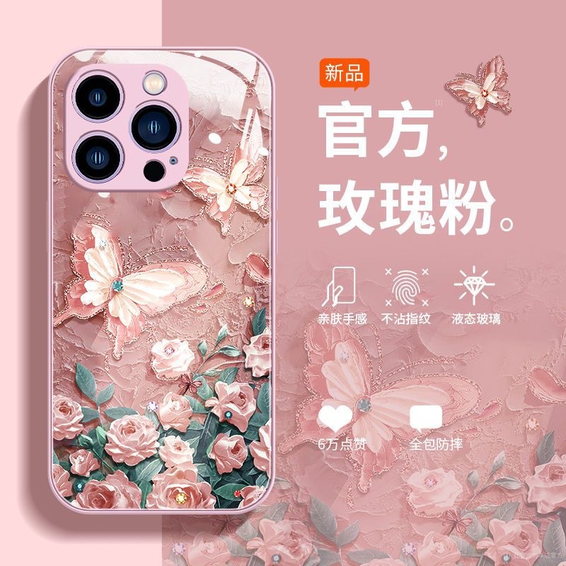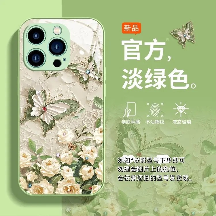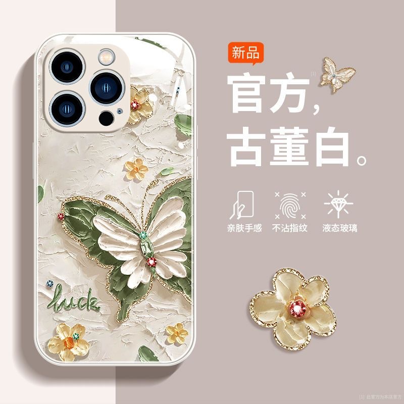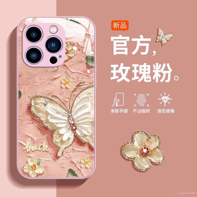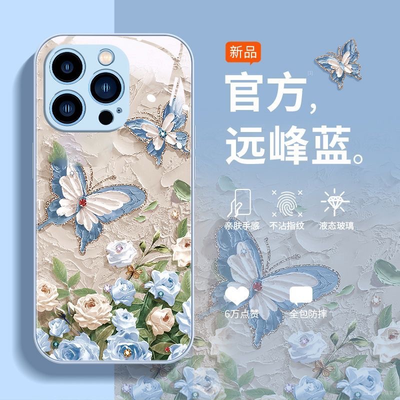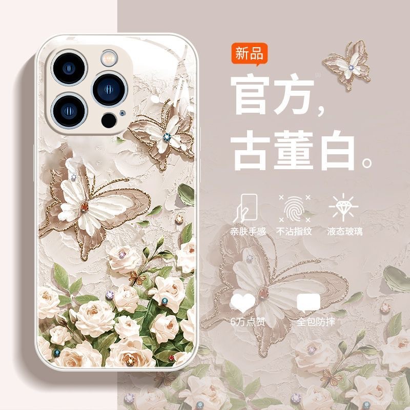 사과 15promax 전화 케이스 iphone14/13 액체 xs 모두 포함 8 유화 나비 유리스토어 가기