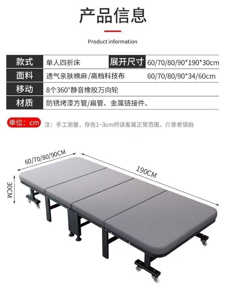 사무실 점심 휴식 접는 침대 안정되어 있는 슈퍼 하중 베어링 두꺼운 4 배 침대 점심 휴식 접는 침대 공용 방 낮잠 아티팩트스토어 가기