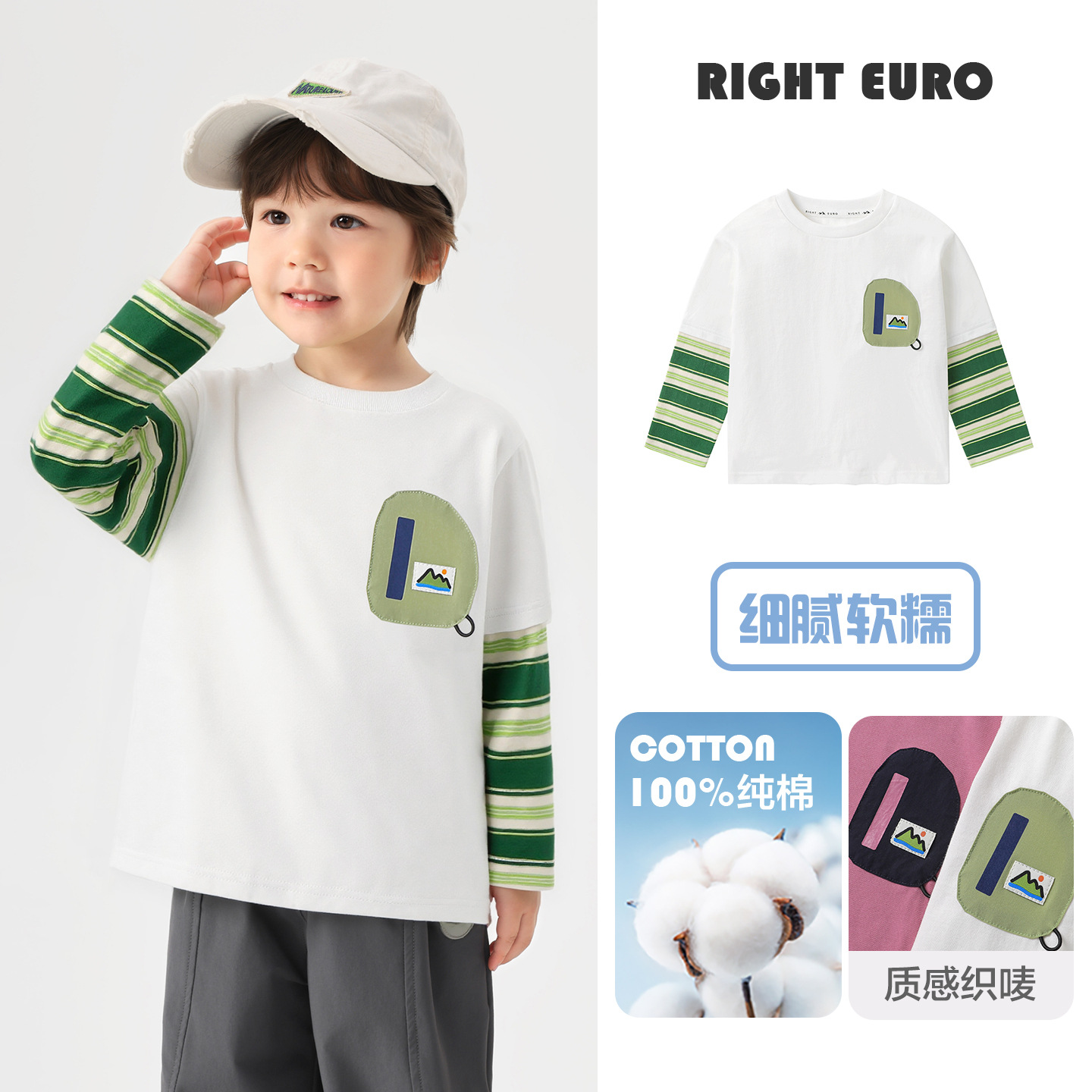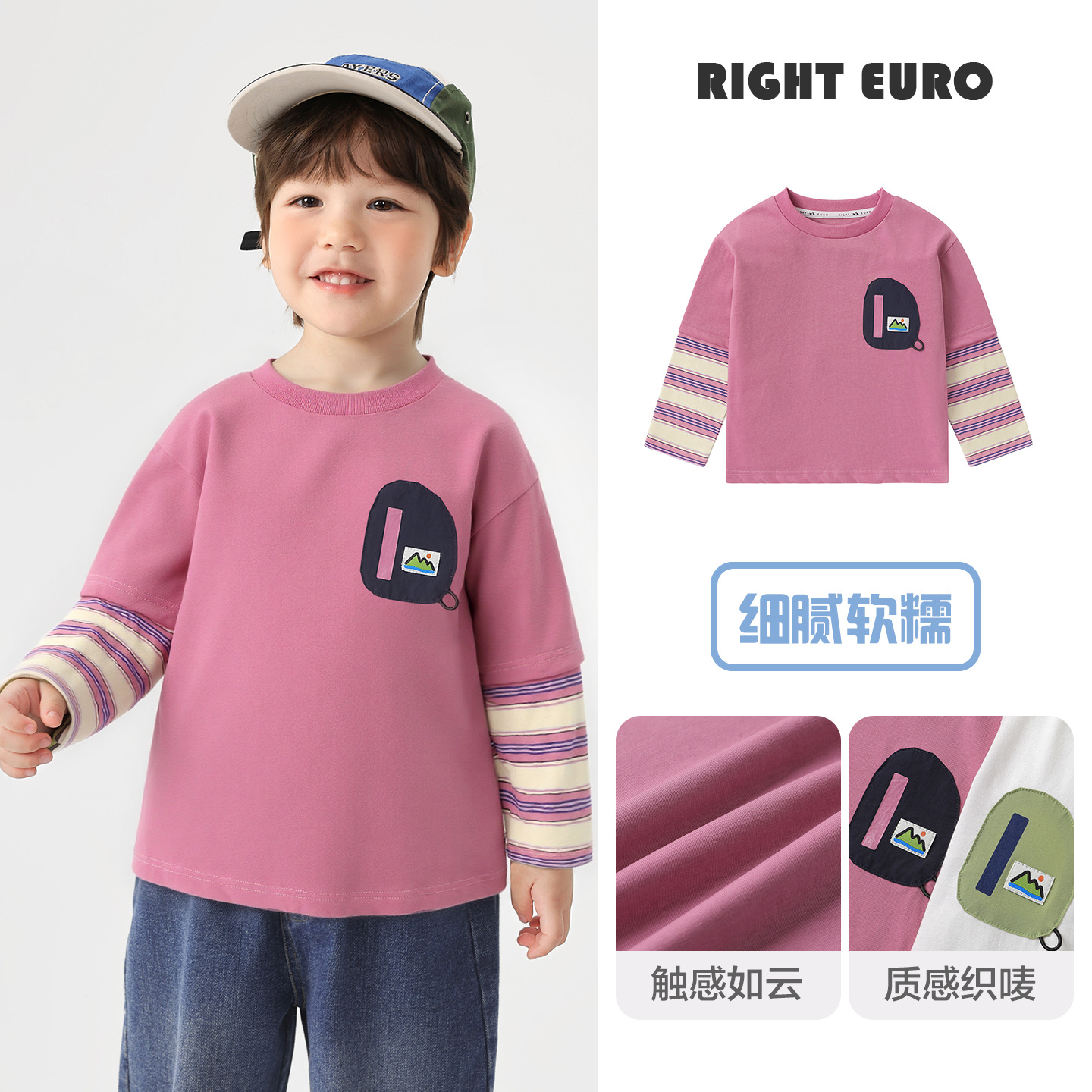 유럽풍 남아용 투피스 스타일 긴팔 티셔츠 봄옷, 봄가을 신상 아동복, 유아용 베이스 레이어 상의 봄옷스토어 가기