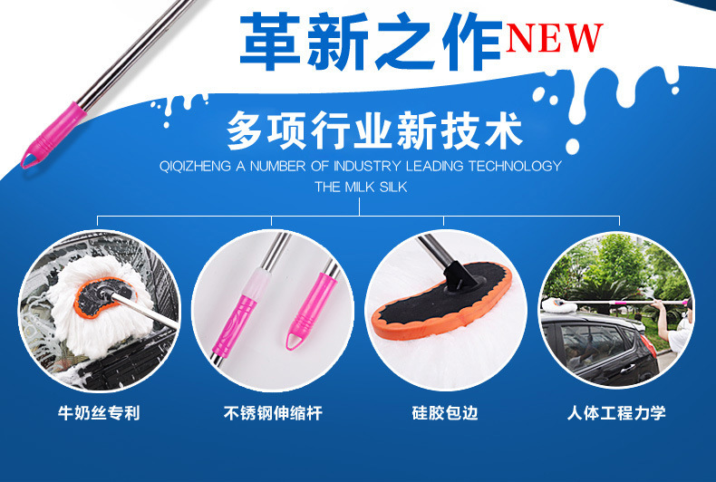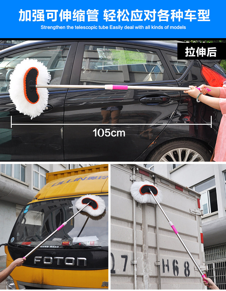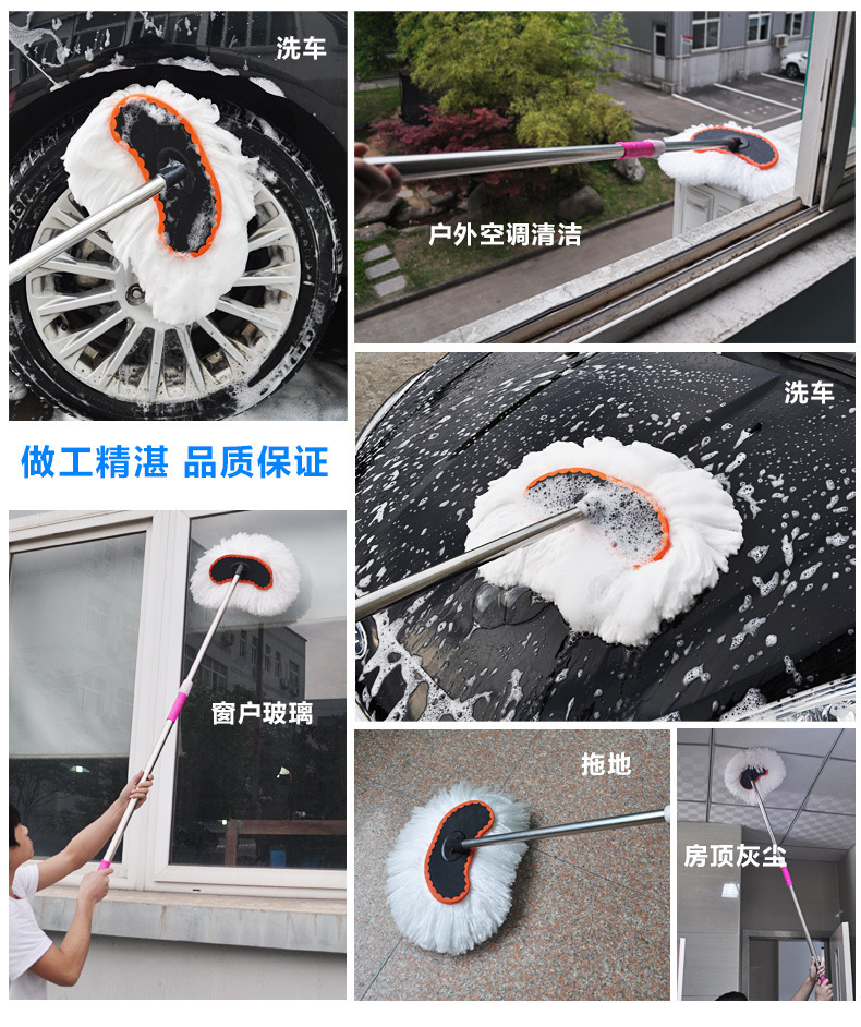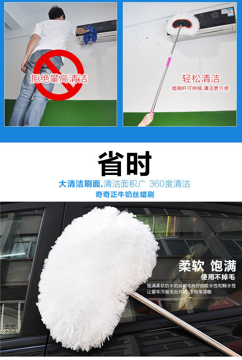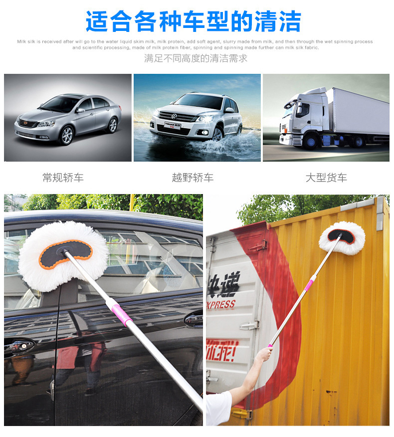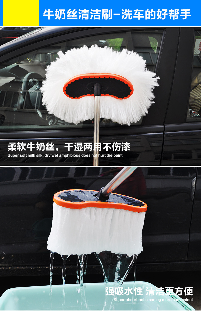 자동차 밀크 실크 걸레 자동차 텔레스코픽 브러시 러빙 텔레스코픽 소프트 울 왁스 드래그 긴 손잡이 자동차 세척 먼지 먼지 제거