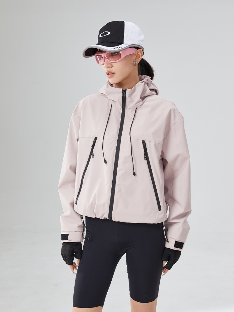 듀폰 3 가지 방지 충전 의류 여성용 짧은 버전 느슨한 방수 통기성 라이딩 방수 재킷 윈드브레이커 얇은 등산 세트스토어 가기