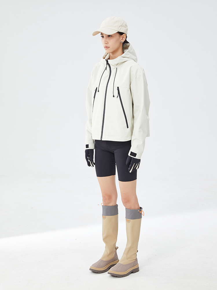 듀폰 3 가지 방지 충전 의류 여성용 짧은 버전 느슨한 방수 통기성 라이딩 방수 재킷 윈드브레이커 얇은 등산 세트
