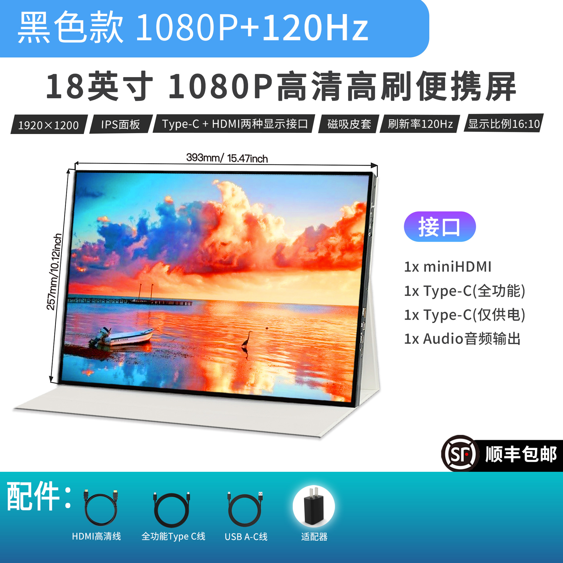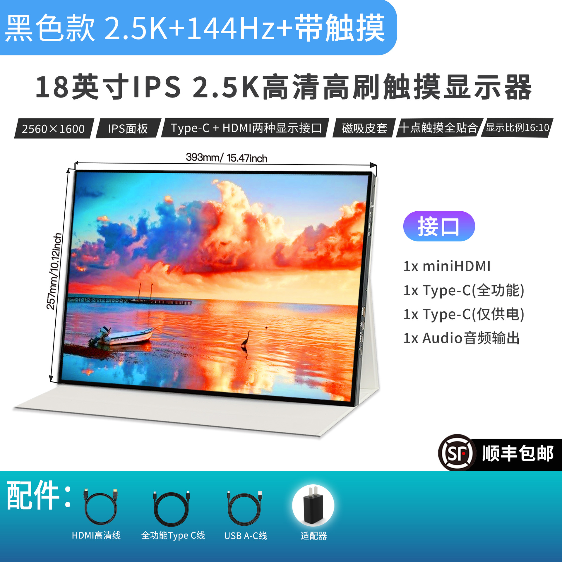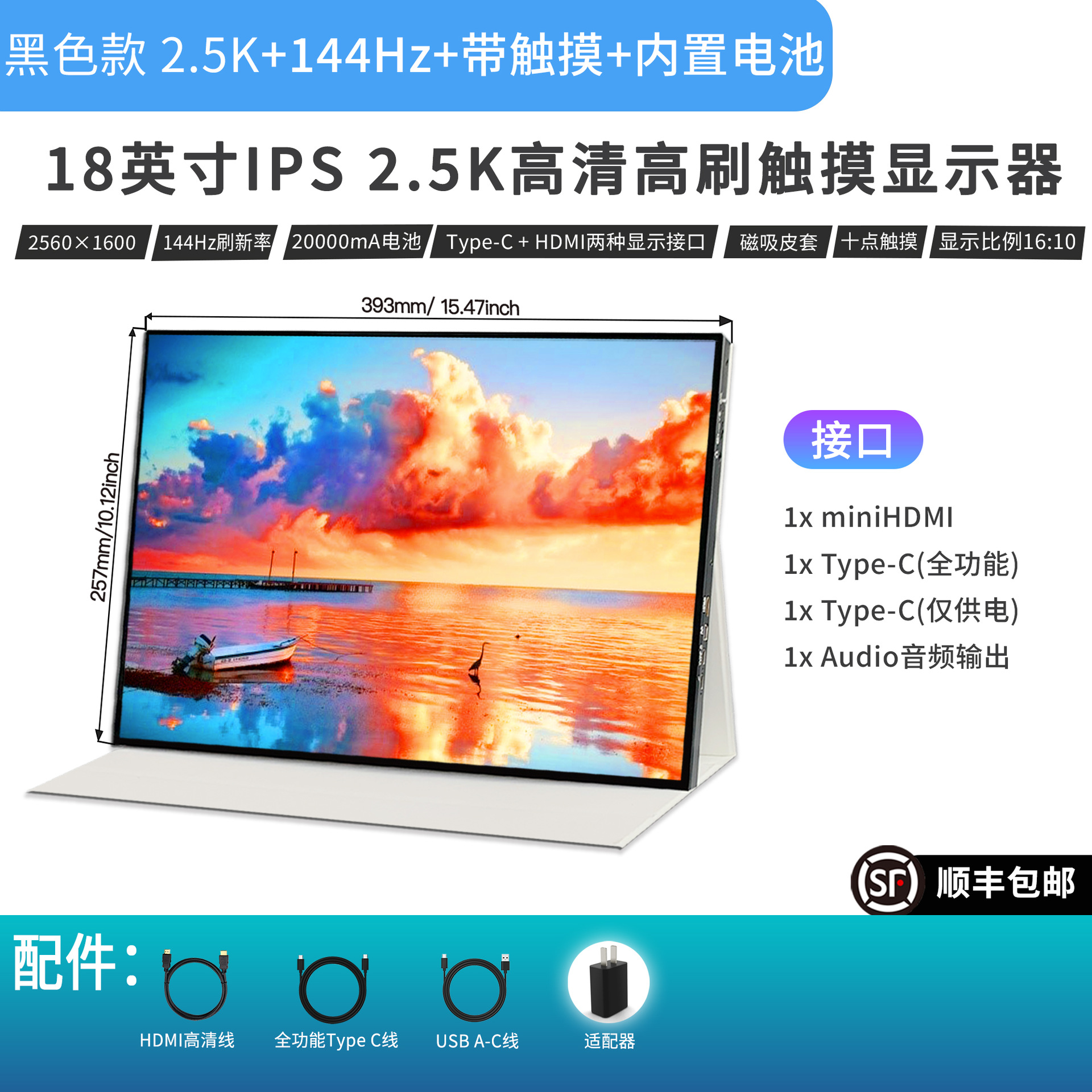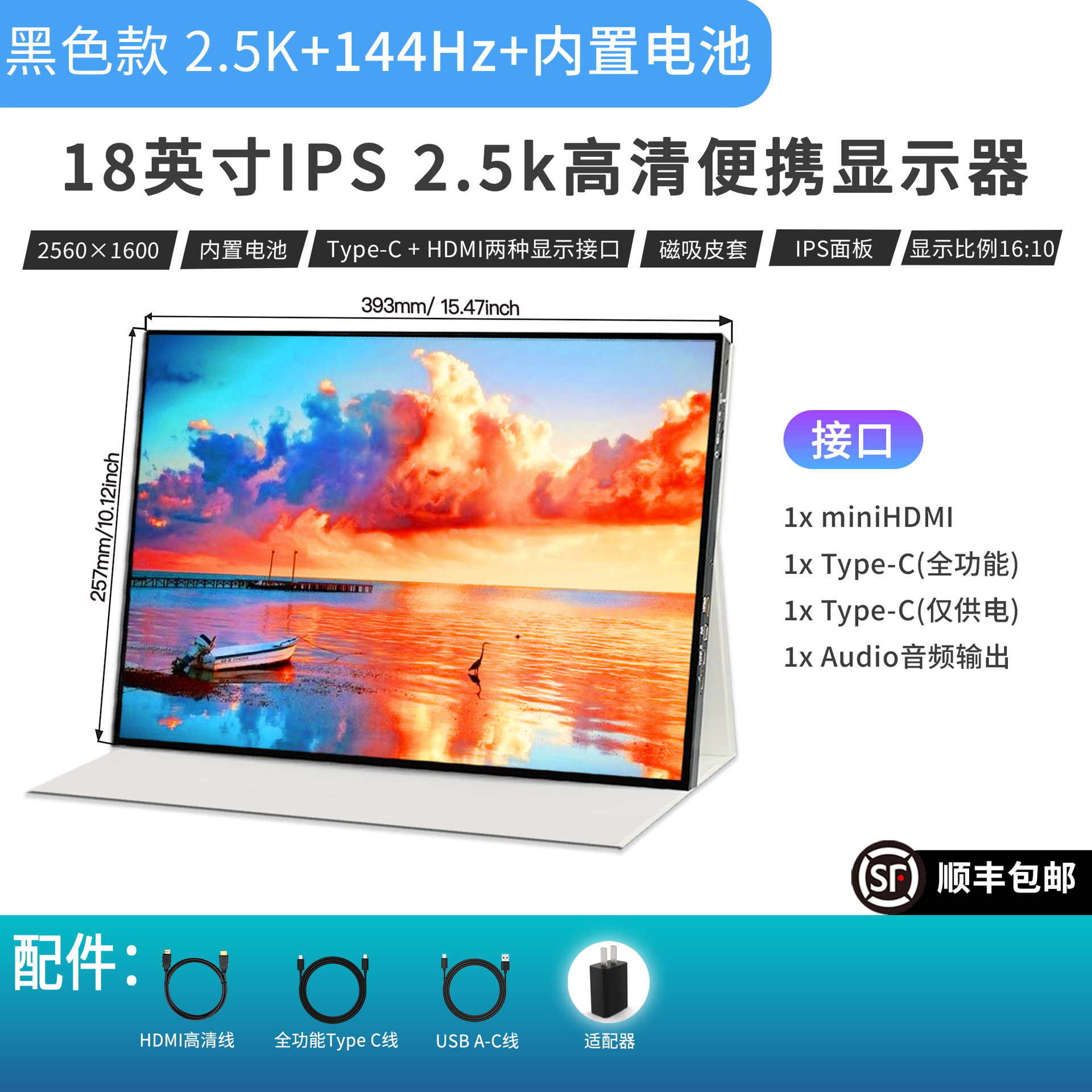 18 "HD 높은 브러시 휴대용 스크린 2.5K HD 144Hz 재생 속도 전자 스포츠 게임 확장 디스플레이 화면