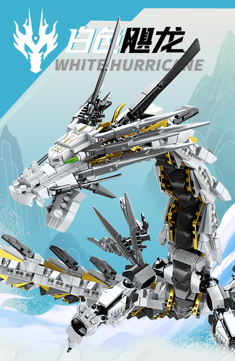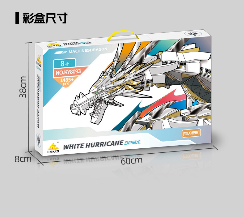 Kaizhi KY8093 Sky Giant Beast Mechanical White Hurricane Dragon Mecha 호환 레고 조립 건물 블록 어린이 장난감스토어 가기