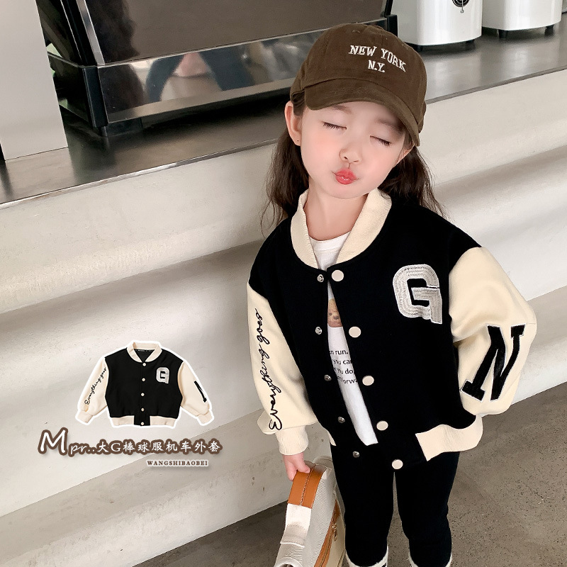 소녀의 편지 코트 봄과 가을 서양 스타일 2024 새로운 아기 유행 야구 세트 어린이 최고 어린이 가을스토어 가기
