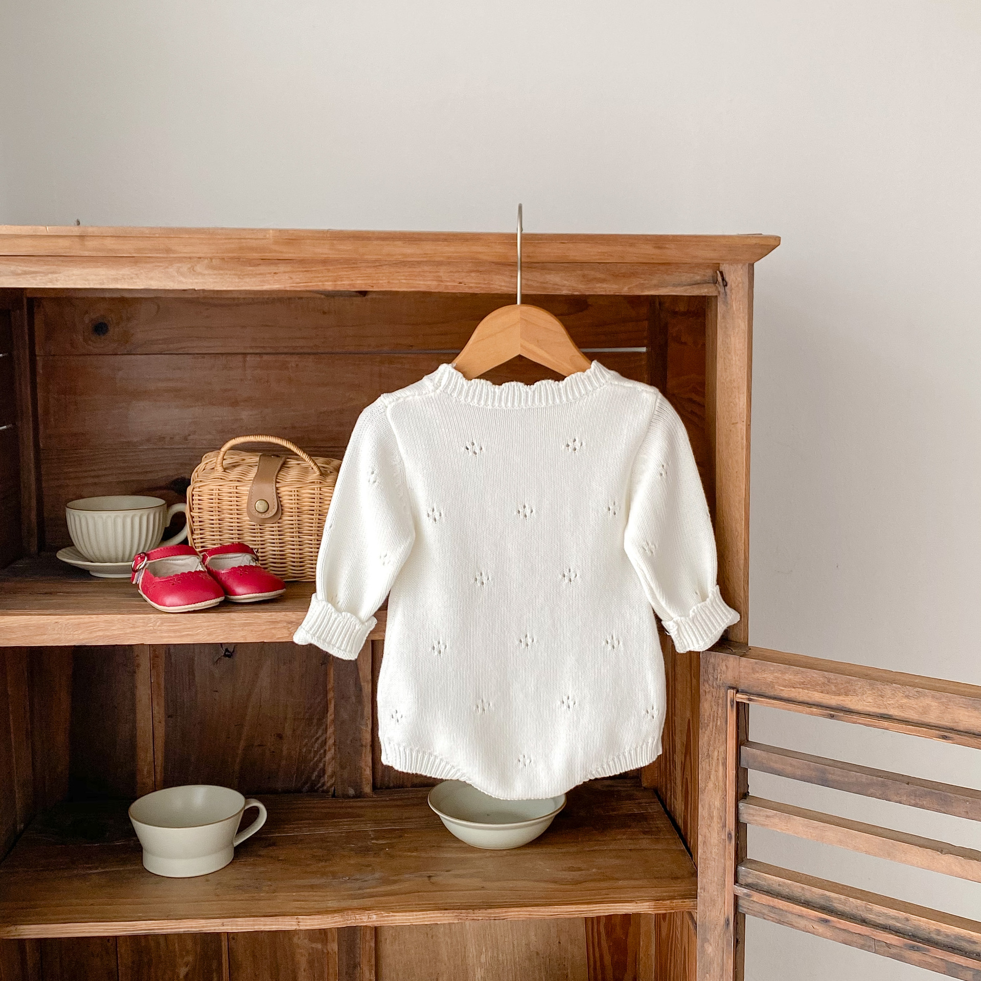 아기와 어린 아이들의 등반복 2024 가을 스웨터 아기 소녀 딸기 자수 긴 소매 니트 하하 옷 삼각형 가방 방귀 옷
